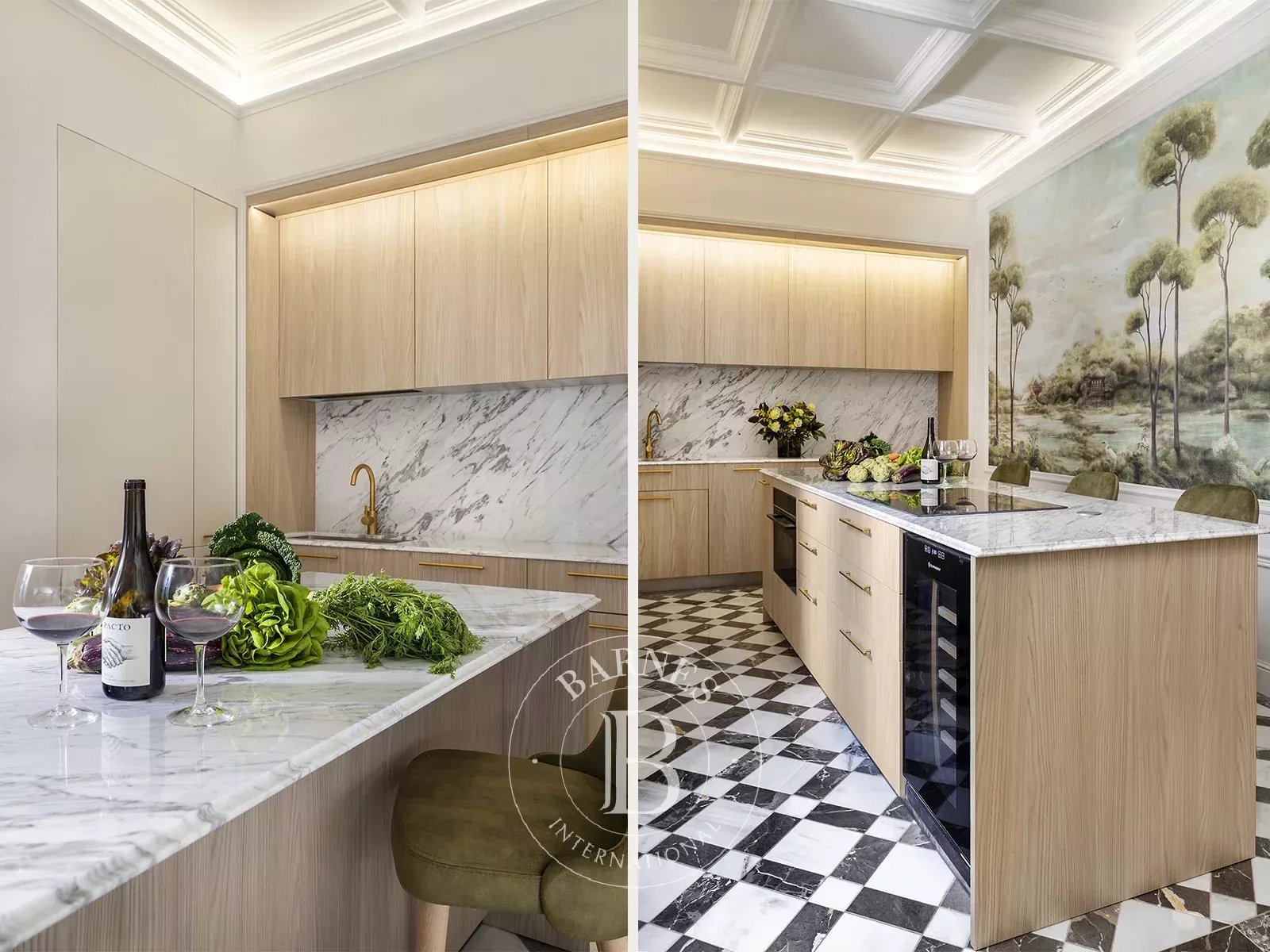 La cuina compta amb armaris de disseny italià a mida, electrodomèstics Siemens i una cava de vins.