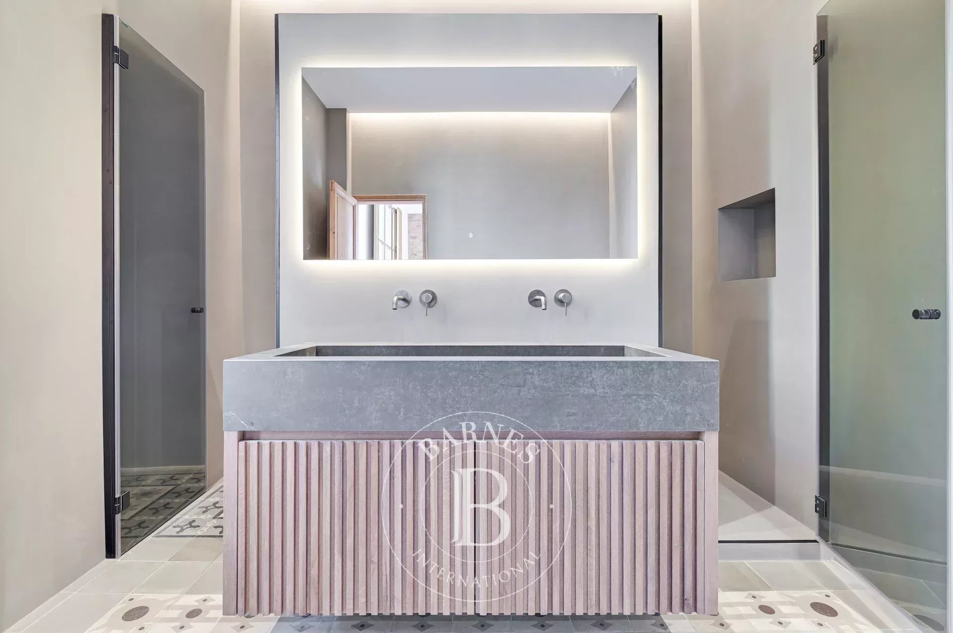 La zona de nit comprèn tres dormitoris en suite, pensats per oferir el màxim confort i privacitat. El dormitori principal destaca per la seva galeria acristalada de ús versàtil, perfecta com a despatx o zona vestidor. El bany principal, de dimensions generoses i amb balcó, afegeix un toc de luxe i caràcter a aquesta master suite. A tota la zona, s'han conservat i restaurat els sòls i sostres originals, preservant la seva essència històrica.