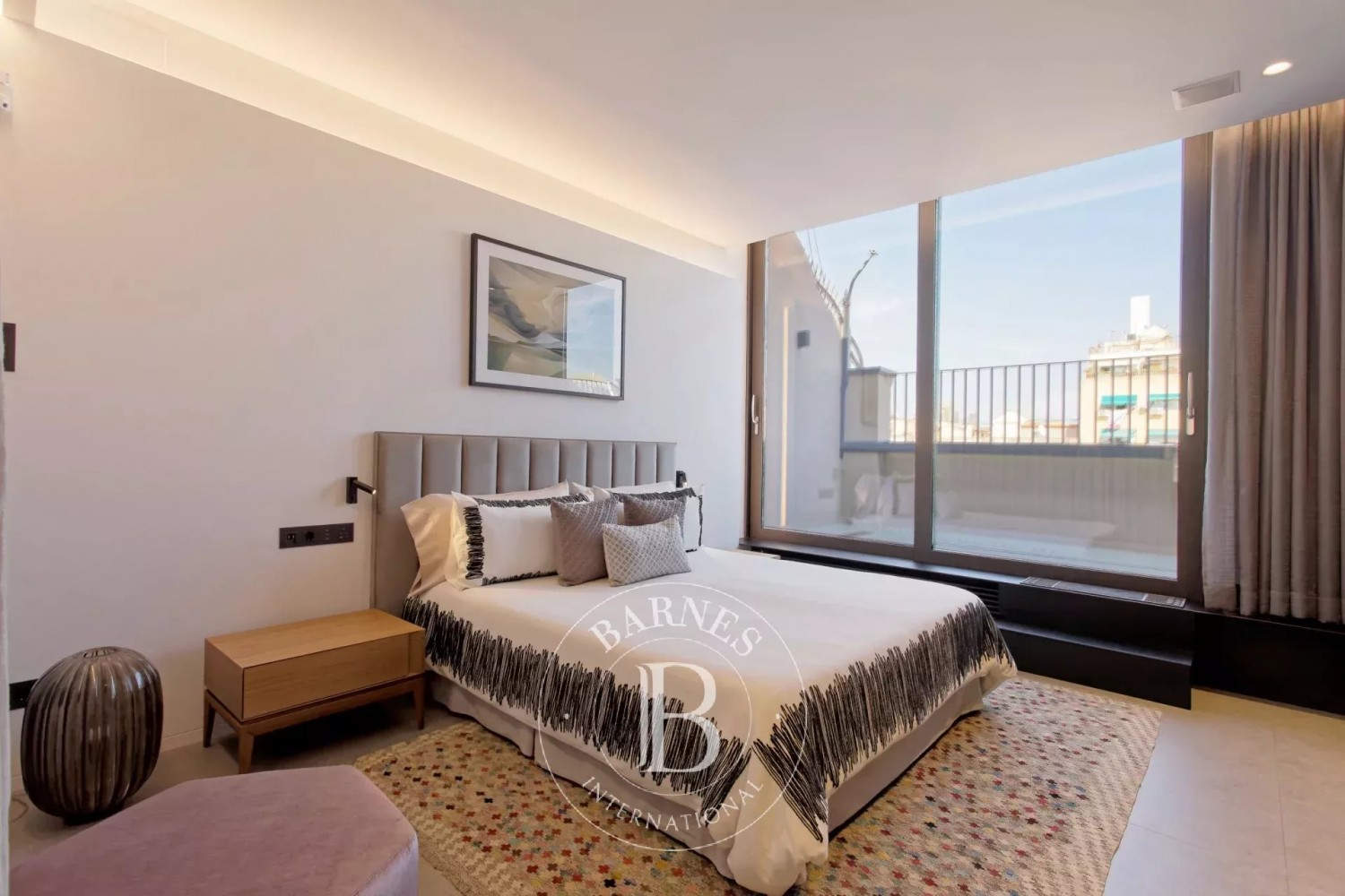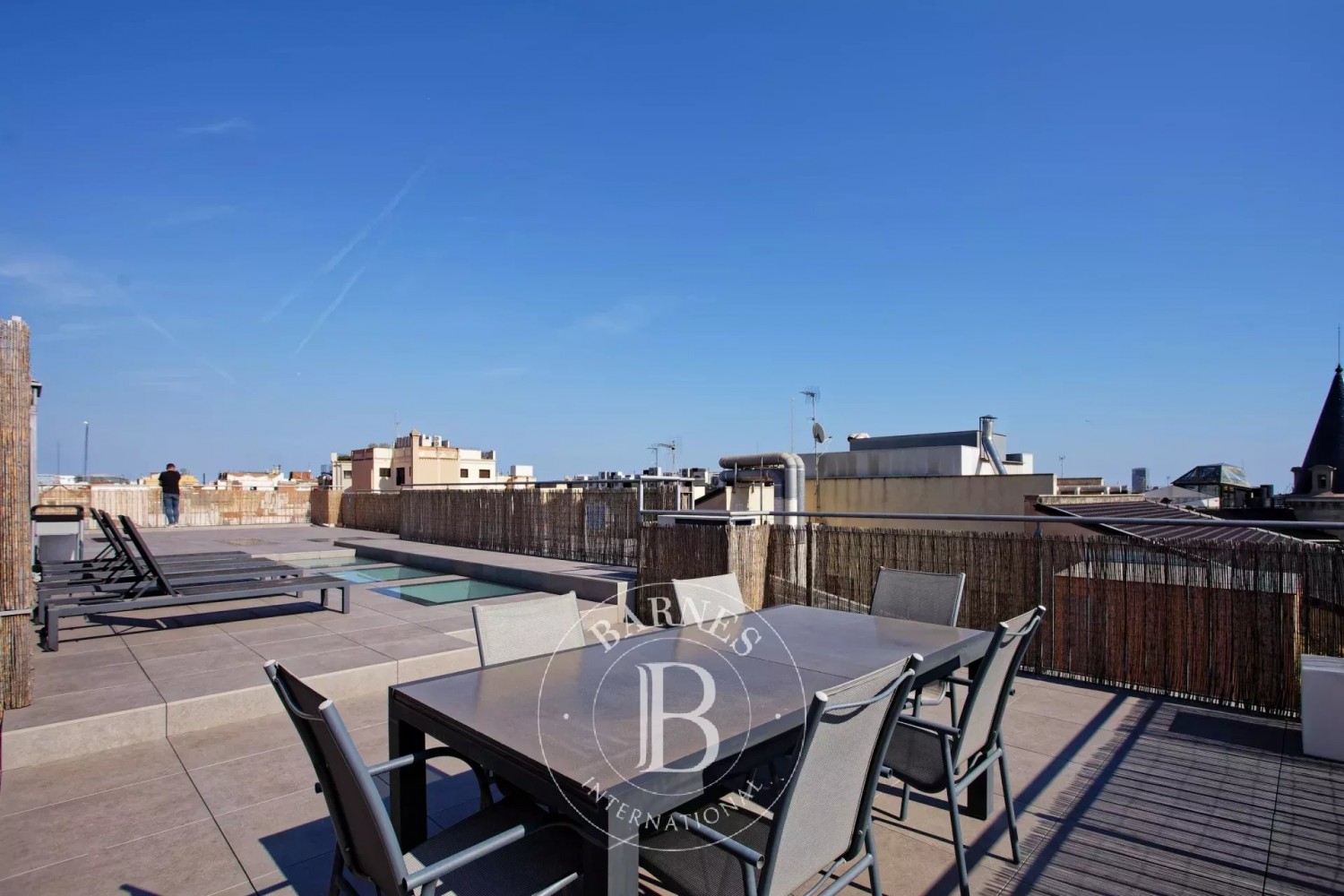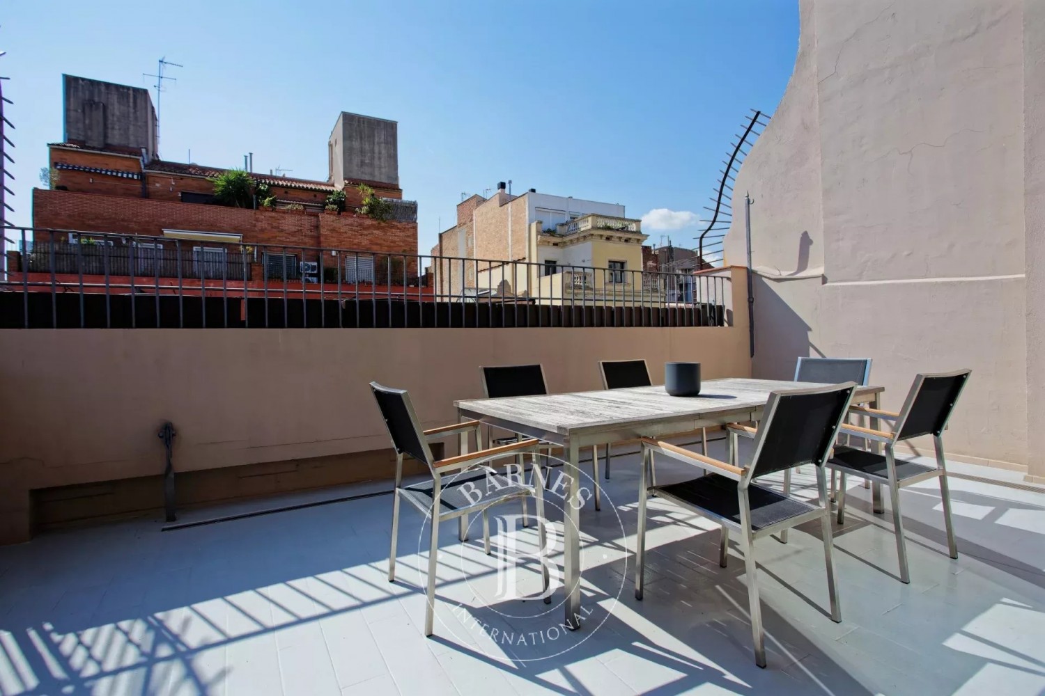 L’àtic disposa de dos amplis dormitoris en suite, cadascun amb armaris encastats i accés directe a una terrassa privada. Les àmplies zones exteriors, inclòs el terrat privat amb vistes panoràmiques a la ciutat, ofereixen un espai ideal per relaxar-se o gaudir del sol de Barcelona amb amics i família.