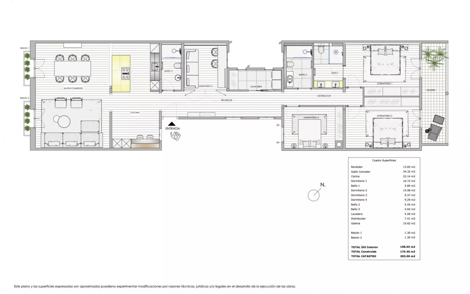 Amb una superfície aproximada de 203 m², la vivenda presenta una distribució equilibrada que separa amb naturalitat les zones de dia i de nit.