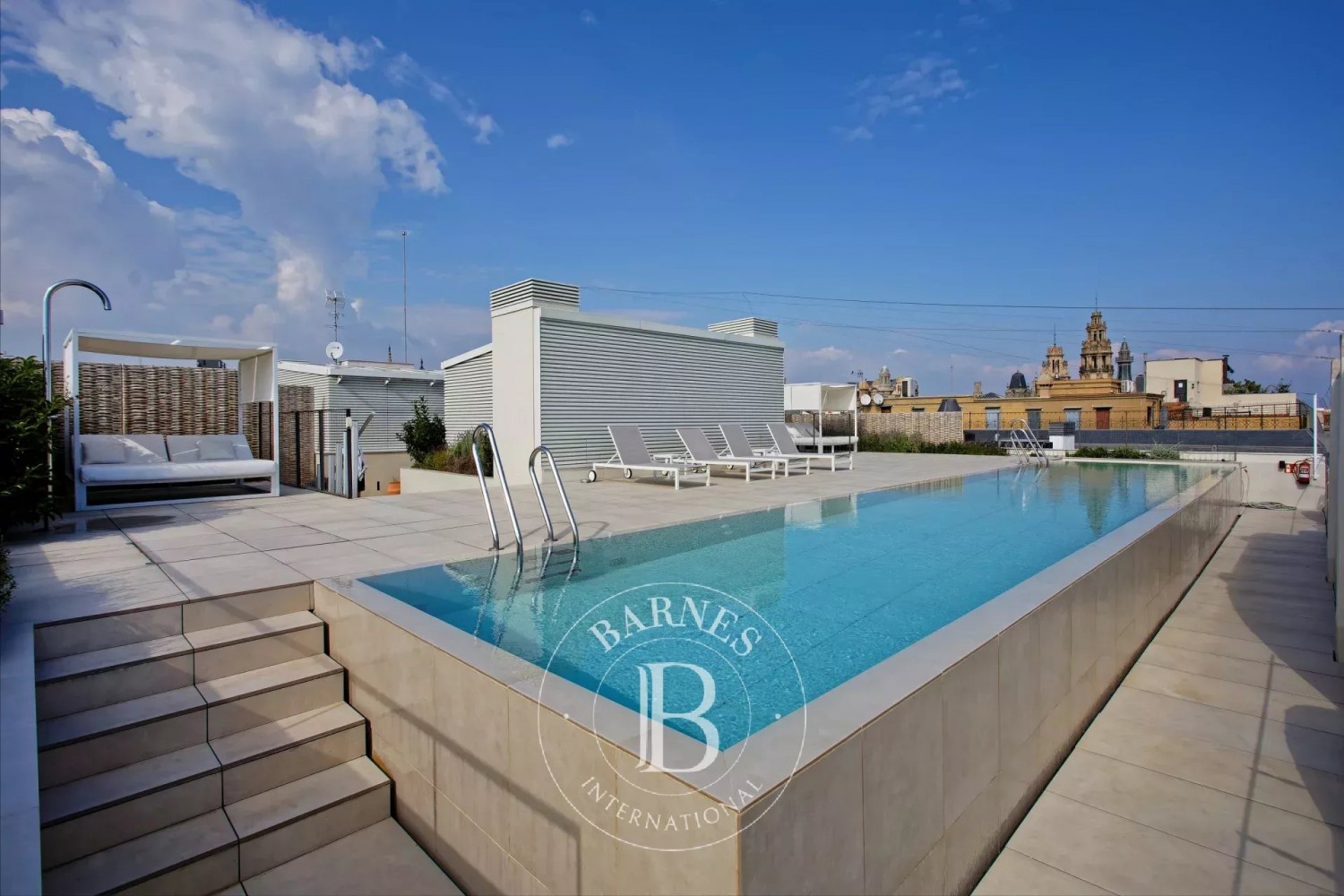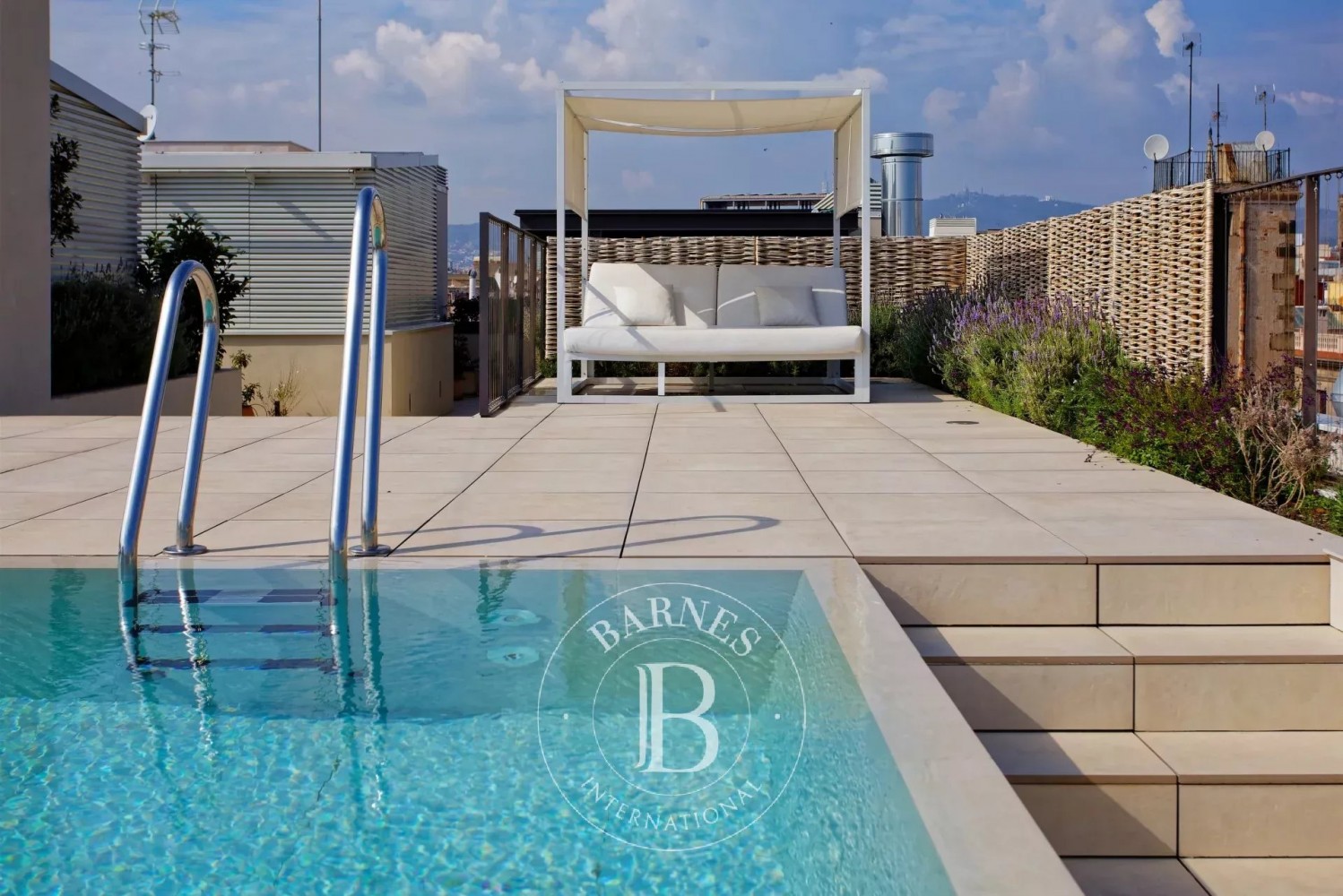 Els residents gaudeixen de zones comunes exclusives, com ara un vestíbul amb elements originals restaurats i una espectacular terrassa comunitària al terrat. Aquesta rooftop compta amb piscina, zona de solàrium, espai social amb barbacoa i vistes panoràmiques al mar, Montjuïc i el Tibidabo.