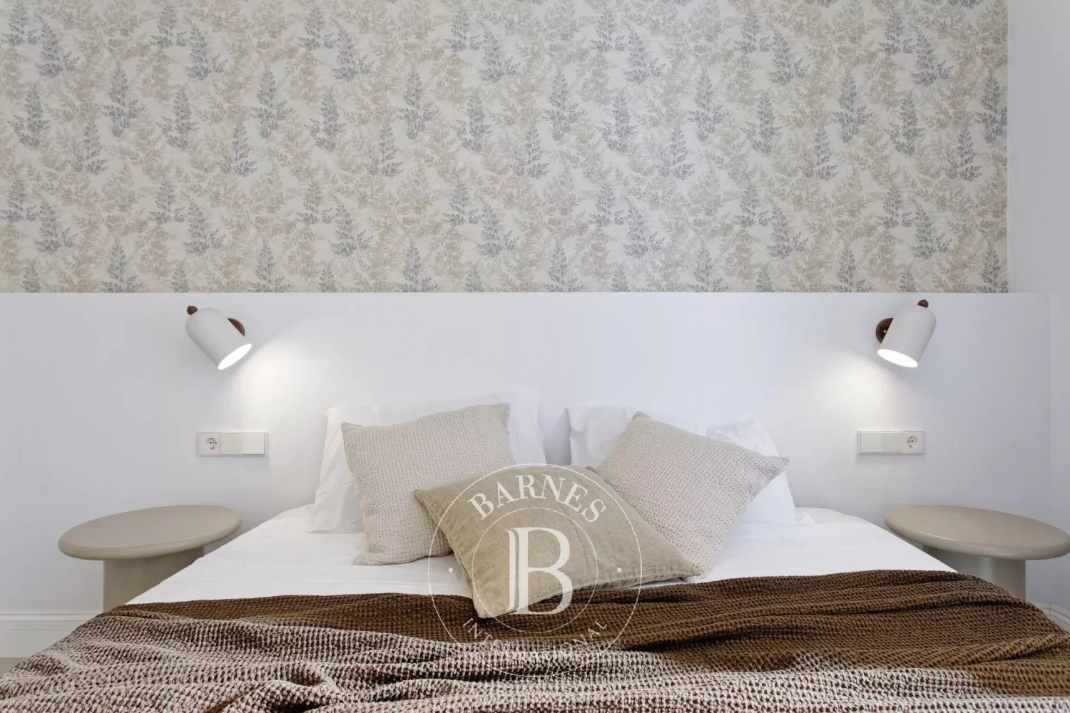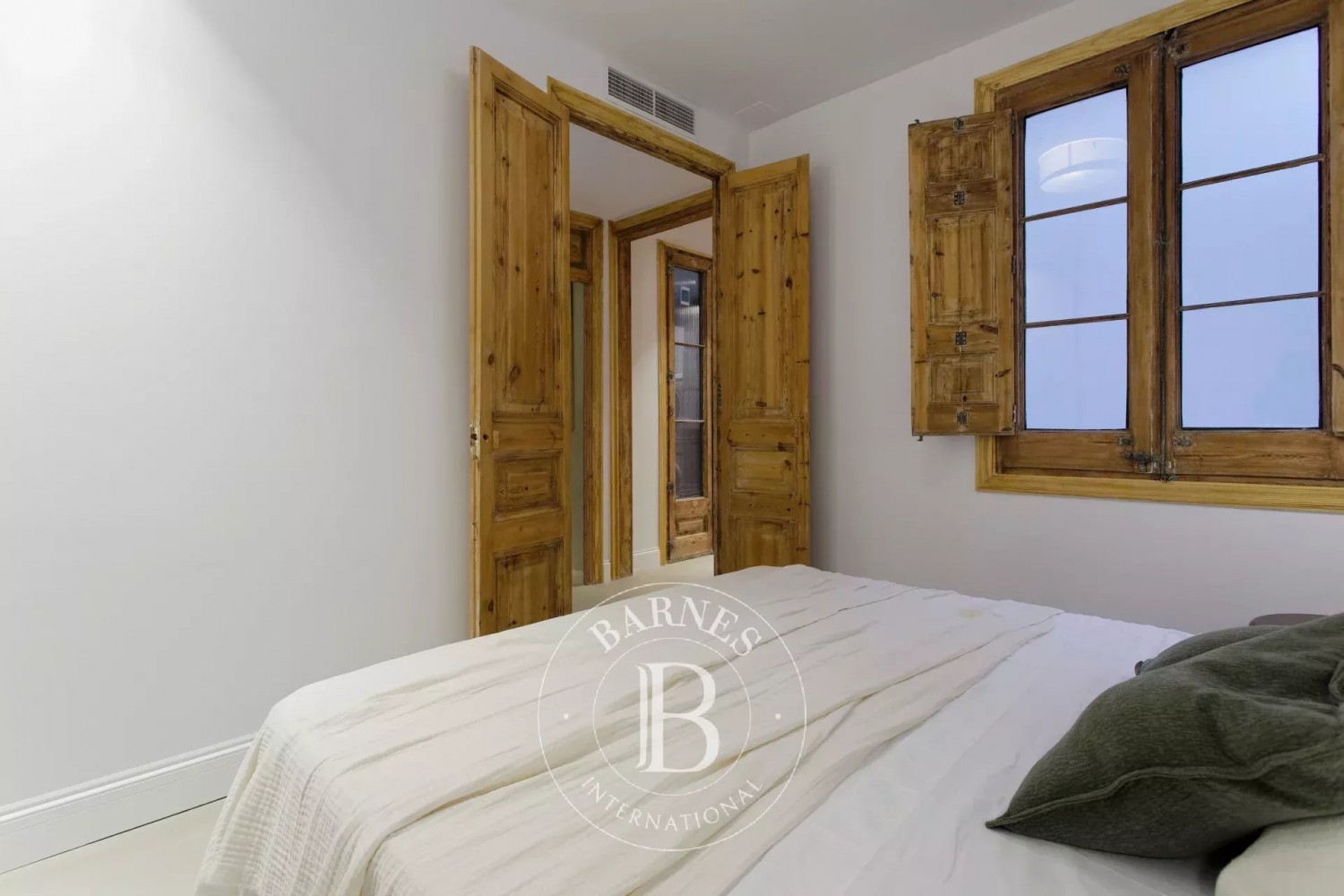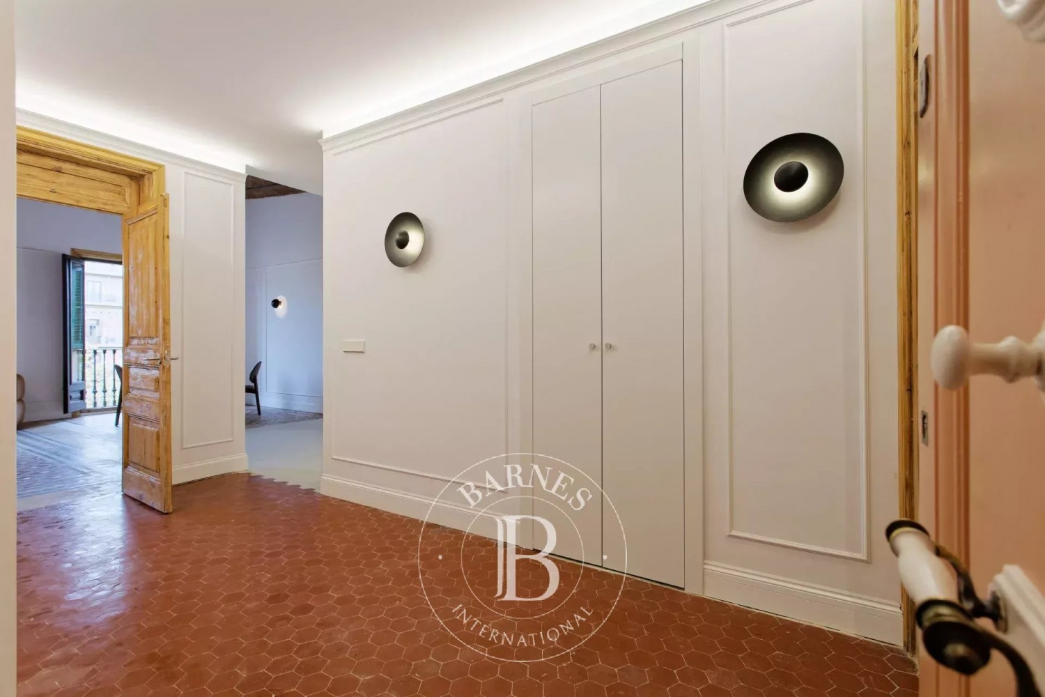 L’accés a l’habitatge es fa a través d’un ampli rebedor amb armari de cortesia que condueix a un elegant i lluminós saló–menjador. Aquest espai espectacular conserva elements originals com el paviment hidràulic, la volta catalana i les motllures restaurades, que aporten caràcter i autenticitat. La cuina oberta, completament equipada amb electrodomèstics integrats i un disseny de línies depurades, s’integra a la perfecció en la zona social, creant un ambient càlid i funcional. L’habitatge disposa de sistema d’aire condicionat i calefacció per conductes per garantir el màxim confort.