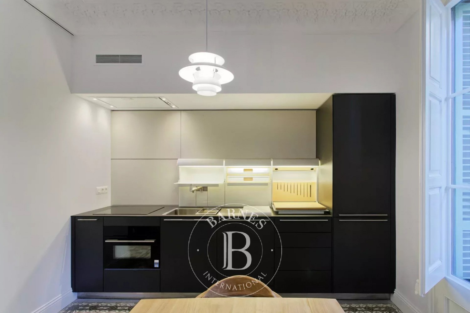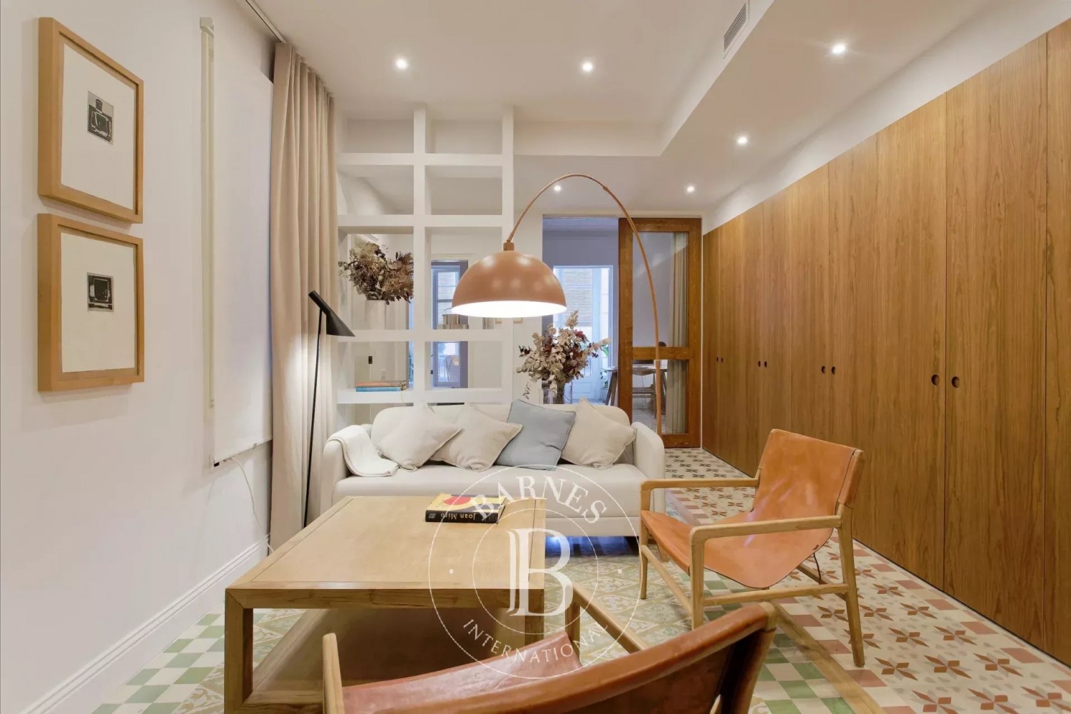 El pis conserva l’essència modernista gràcies als terres hidràulics originals, els sostres alts artesonats amb motllures i la fusteria restaurada, combinats amb equipament contemporani com un sistema de climatització fred-calor per conductes i electrodomèstics d’alta gamma que garanteixen un confort absolut.