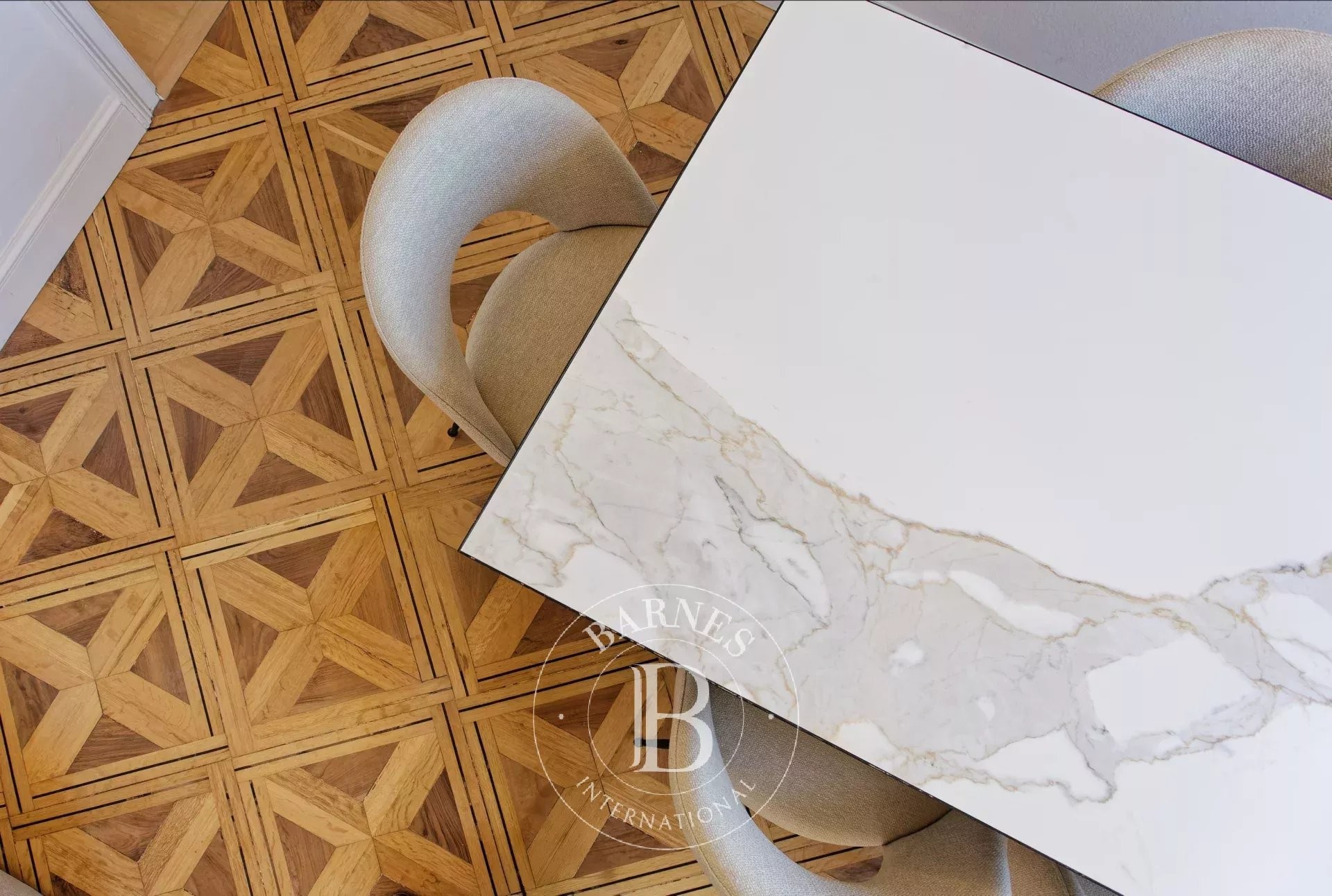 El pis compta amb elegants terres de parquet a les estances principals i dormitoris, combinats amb gres i ceràmica als banys. La fusteria exterior d’alumini amb doble vidre garanteix un bon aïllament, mentre que el sistema de climatització individual mitjançant aerotèrmia assegura confort durant tot l’any.