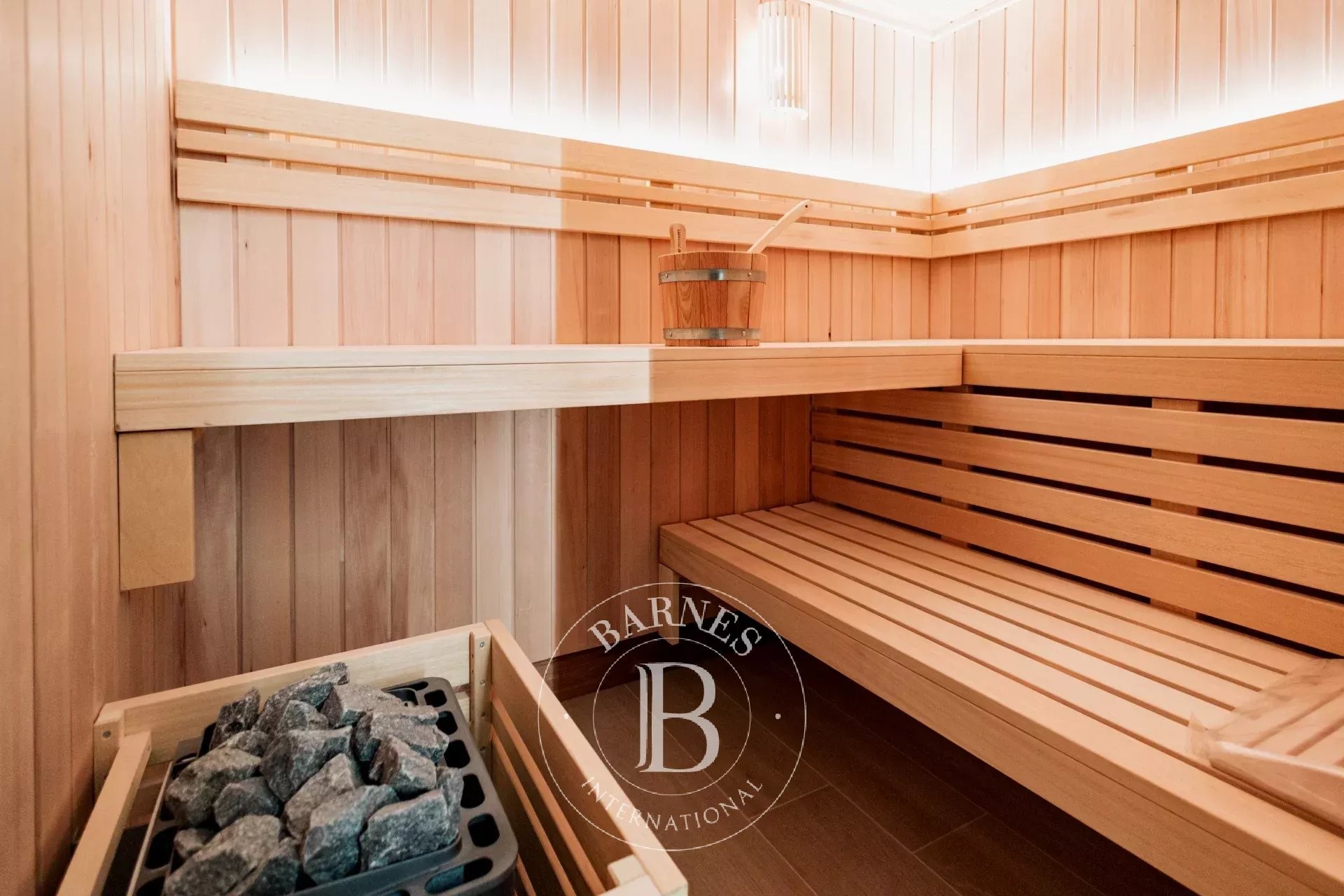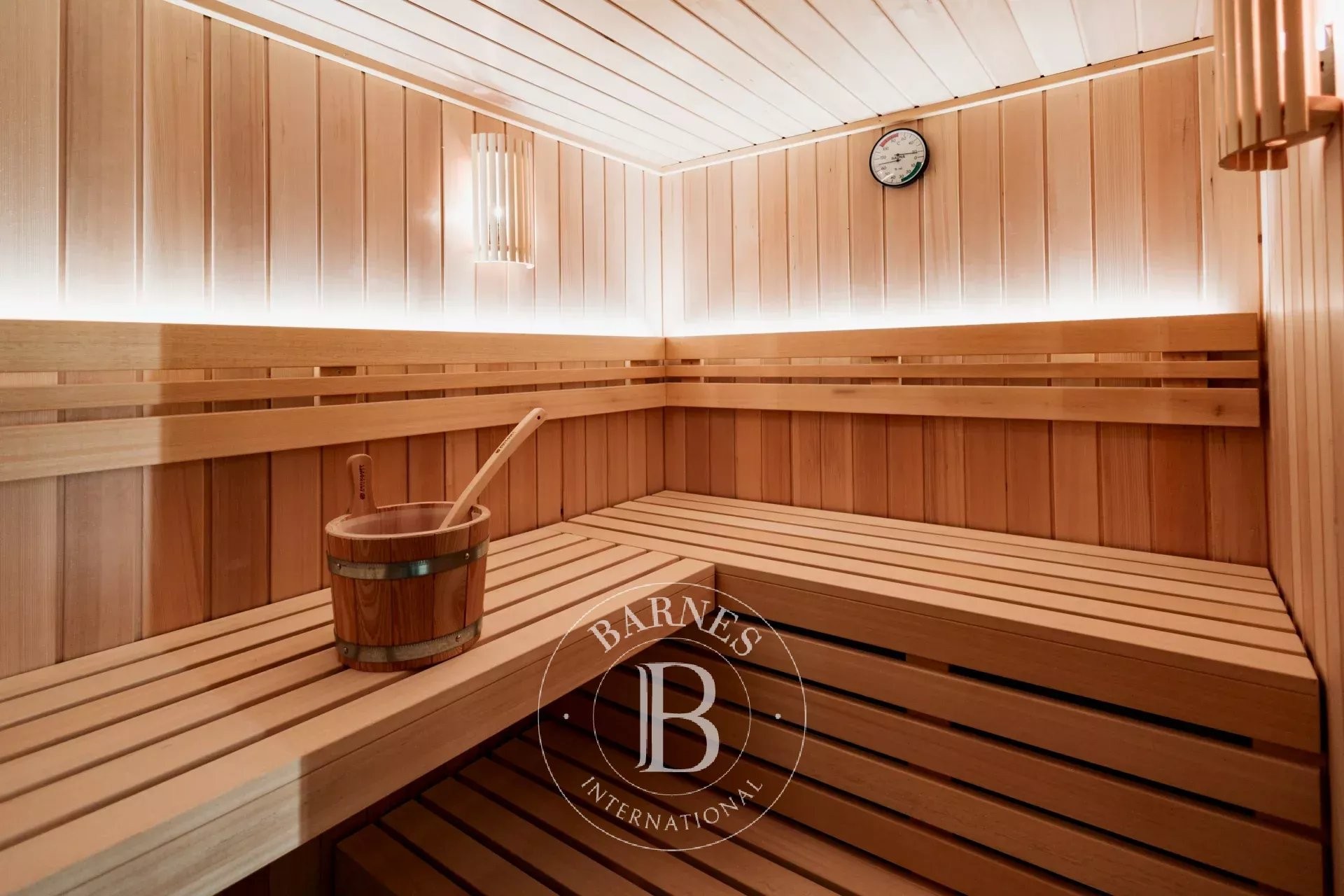 A la planta semisoterrani es troba una espectacular zona de benestar i oci que inclou un gran gimnàs o sala de cinema amb bar, una habitació infantil, un traster, una bugaderia independent i una sauna amb bany complet.