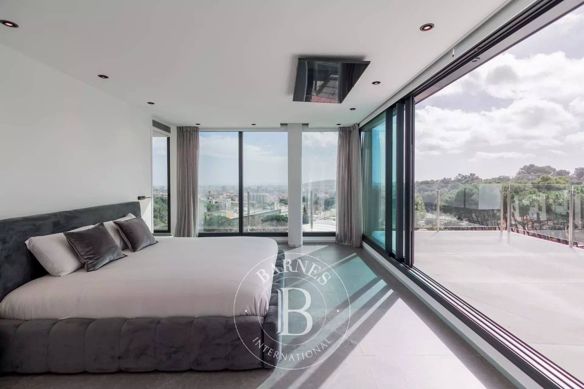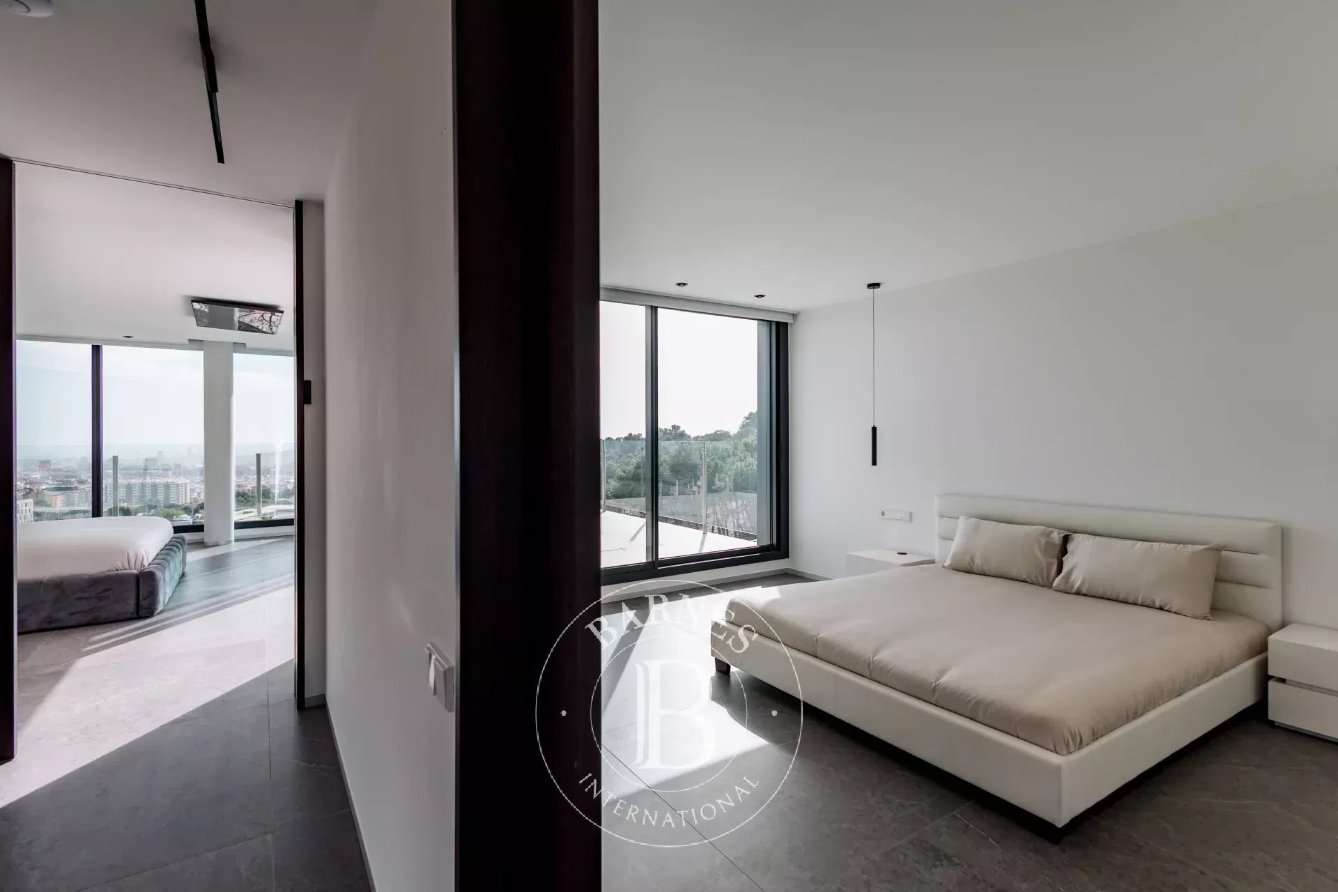 La segona planta completa la propietat amb dos dormitoris addicionals i una magnífica suite principal amb terrassa privada i vistes privilegiades sobre Barcelona.
