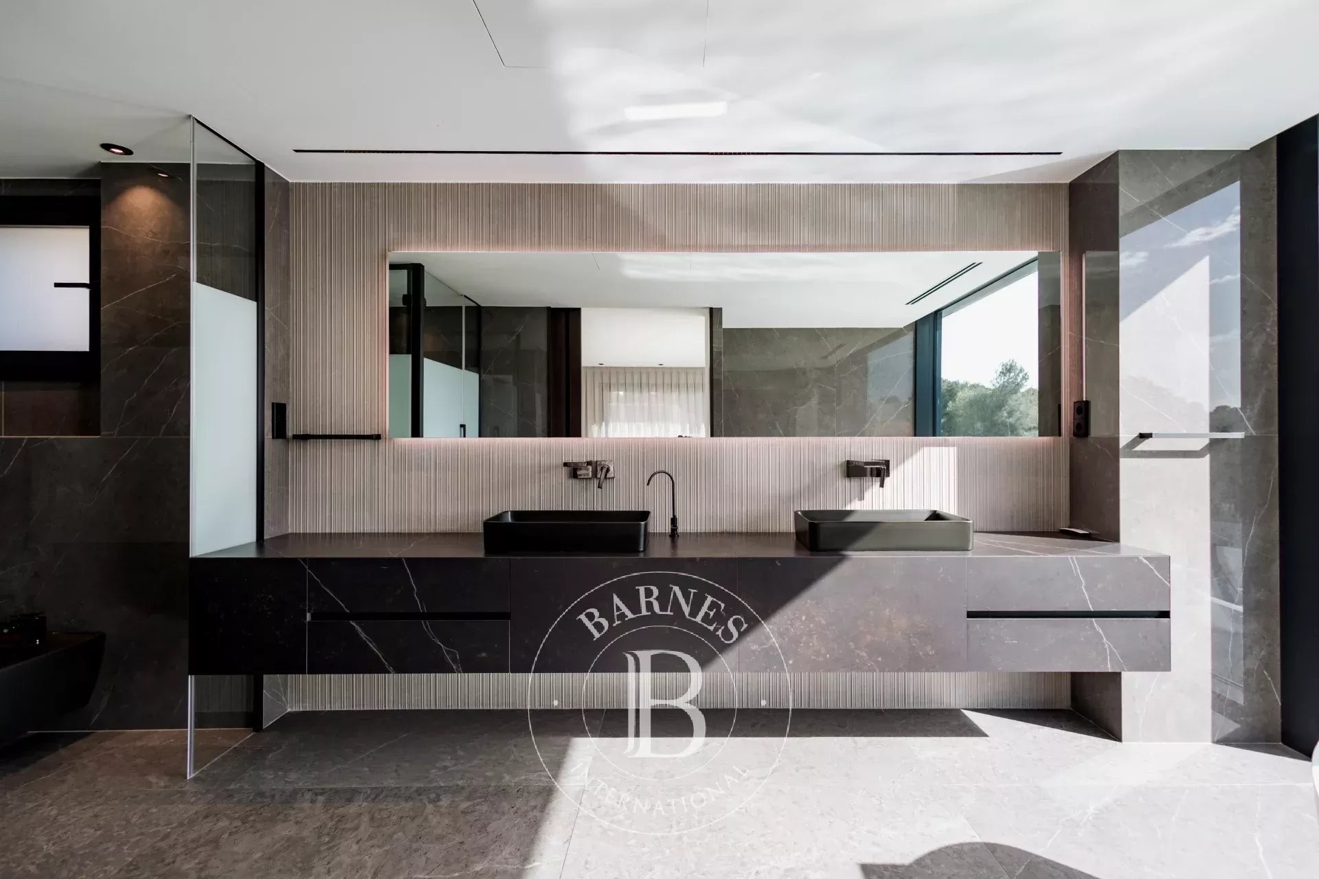 La casa disposa d’un total de set banys i ha estat equipada amb materials i acabats d’alta qualitat, incloent aixeteria de Axor i ceràmica de Porcelanosa.