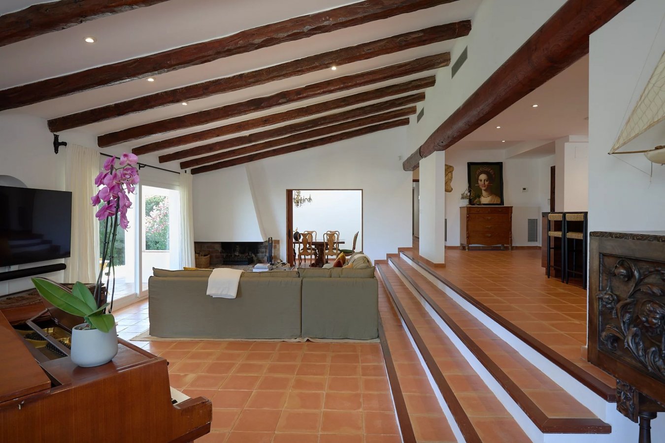 Des de la cuina, unes escales curtes condueixen al saló, on s'accedeix directament al jardí, gaudint de vistes panoràmiques de la zona residencial, les muntanyes i el mar.