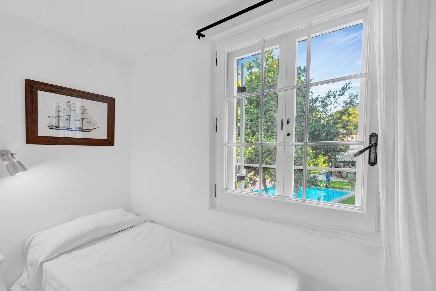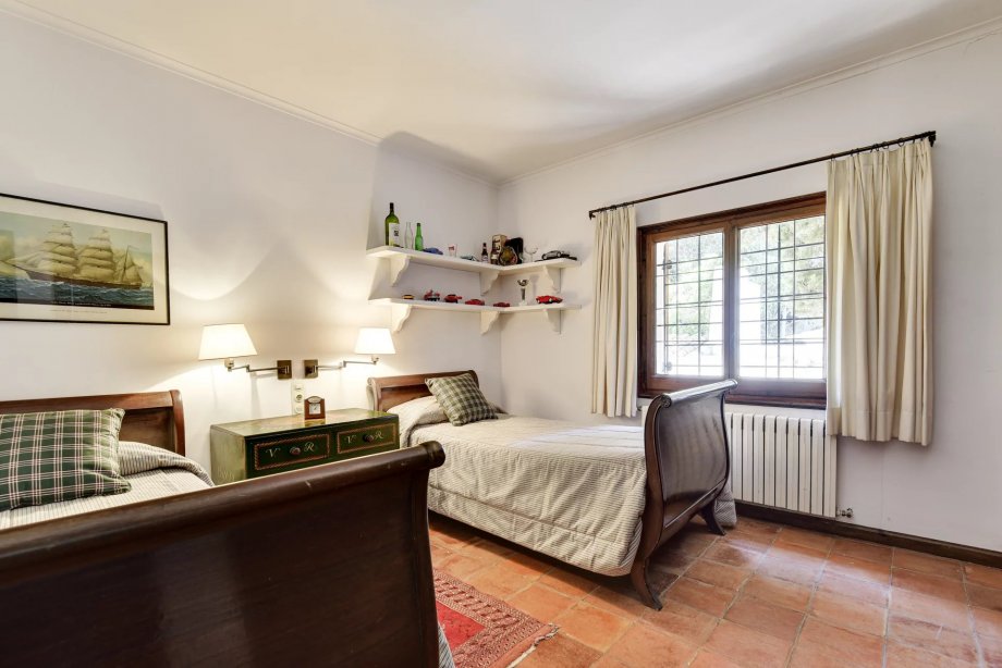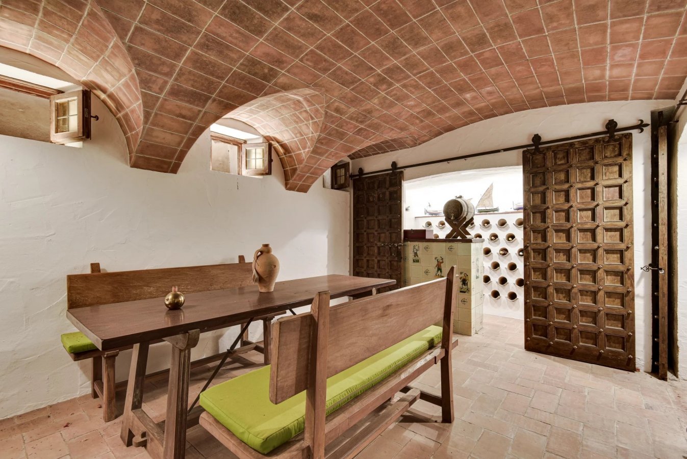 La casa principal, dissenyada pel reconegut arquitecte Pericot, té una superfície de 450 m². La zona de dia inclou una sala d’estar amb accés al jardí, un majestuós menjador amb sostre de volta catalana, una acollidora sala de TV amb llar de foc i una cuina totalment equipada amb illa central. A més, compta amb un celler, un encantador pati d’estil andalús i un porxo amb accés a la piscina. La zona de nit disposa d’una suite principal amb llar de foc, vestidor i bany privat, així com quatre dormitoris addicionals. Un semi-soterrani alberga una sala de jocs, un lavabo de cortesia, un garatge subterrani i un traster.