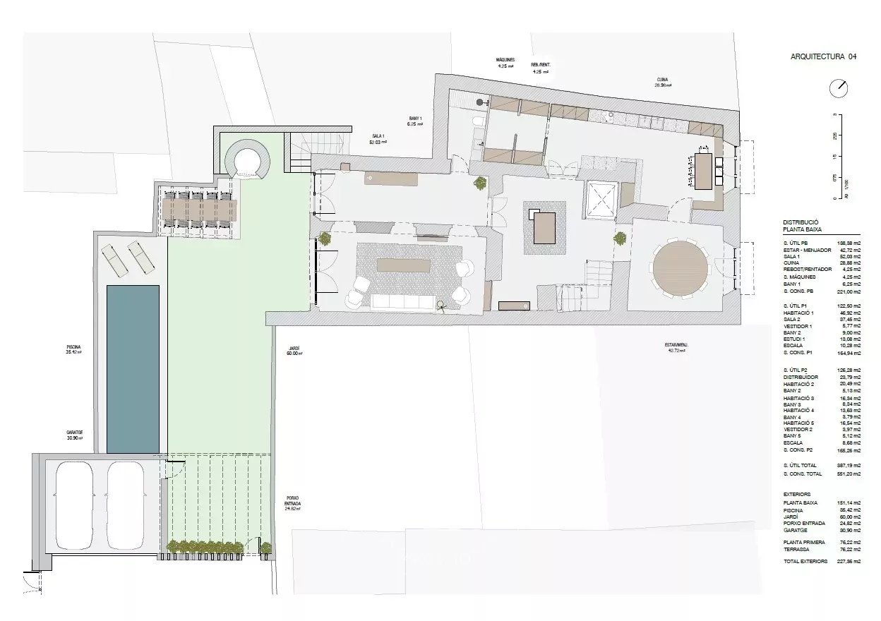 - Planta baixa: ampli saló-menjador amb accés al porxo i jardí, cuina-office i zones de distribució.