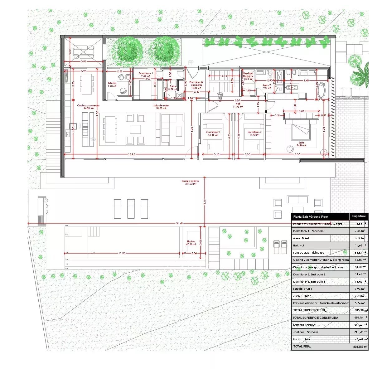 Amb una superfície construïda de 519 m², disposa de 5 dormitoris i 4 banys, oferint amplis espais plens de llum i confort. Els acabats són d’alta gamma i totalment personalitzables, permetent adaptar cada detall a l’estil i preferències del comprador.