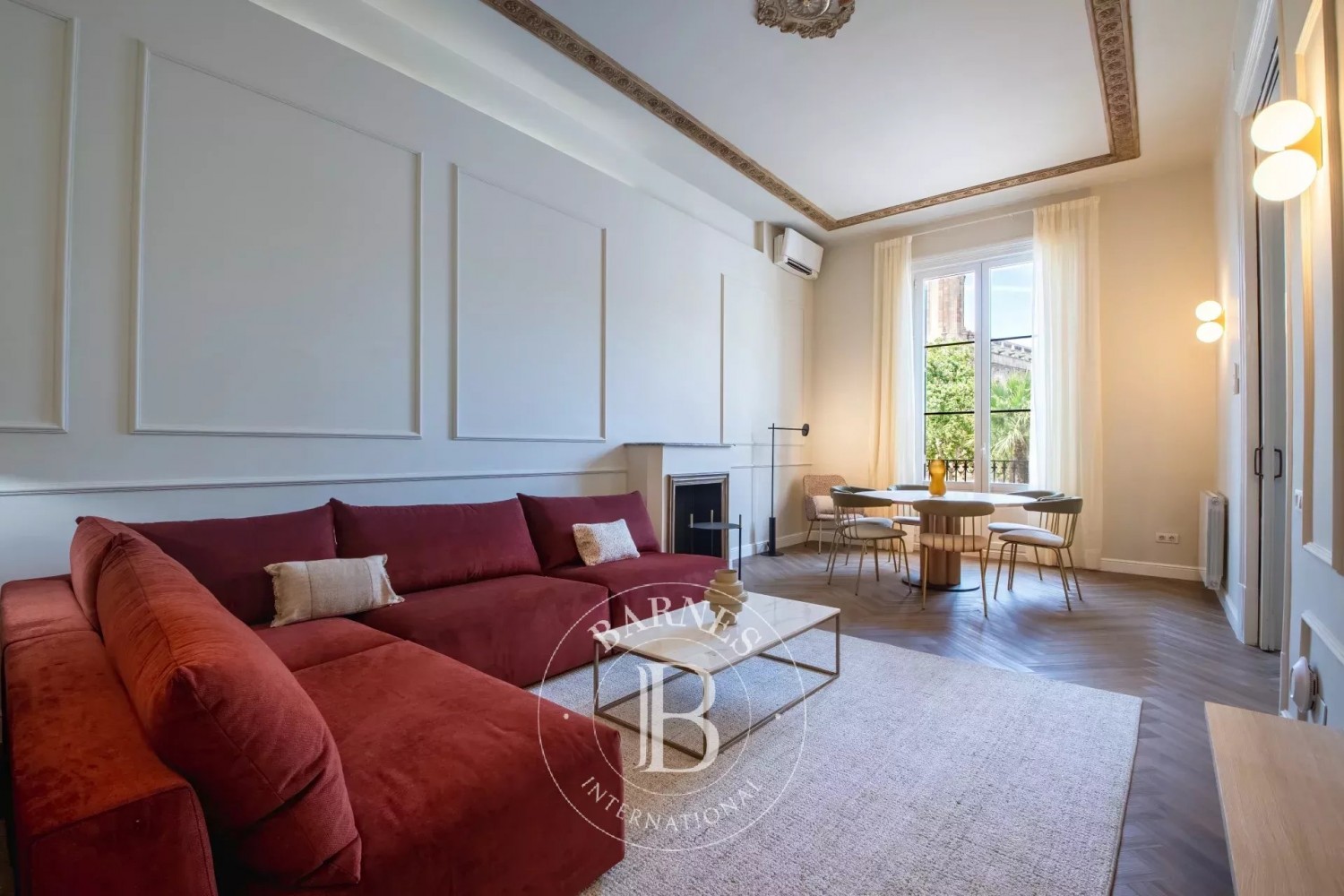 With 119 m² of built space and 3.7-meter-high ceilings, the home offers spacious, luminous, and perfectly balanced interiors. It features three bedrooms, two bathrooms, and a living-dining room opening onto a 5.6 m² balcony, where the sea light takes center stage. Parquet floors and soft-toned finishes provide warmth, harmony, and timeless elegance.