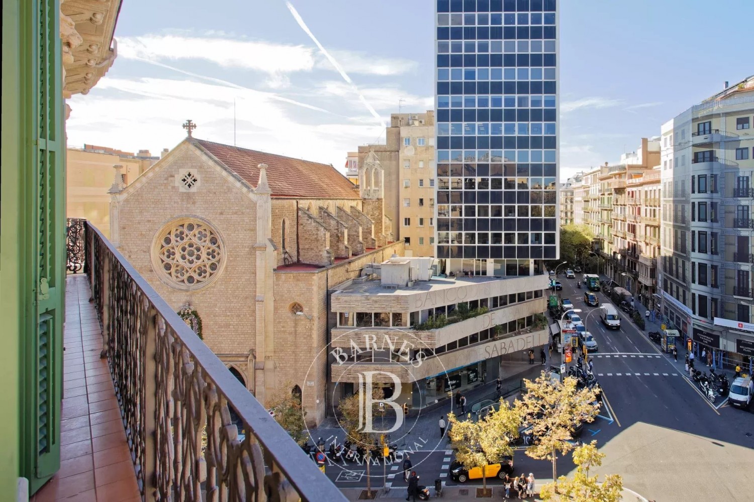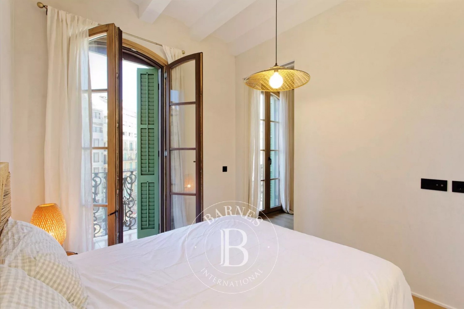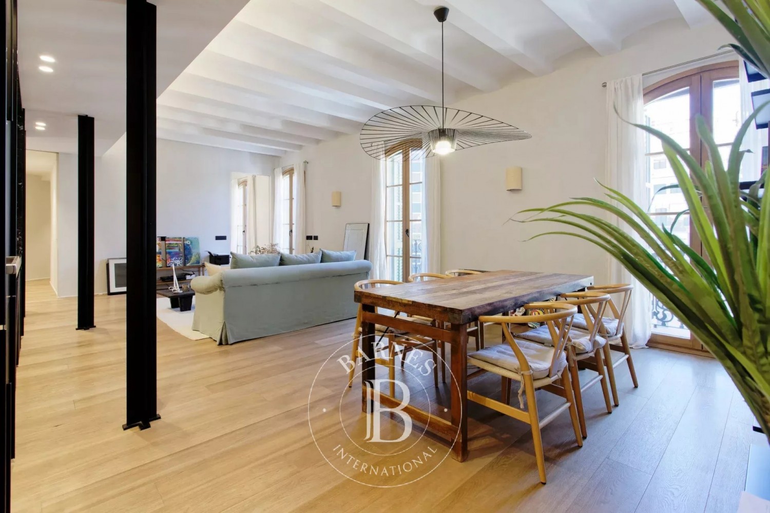 Located on the sixth floor of a typical corner regia building in the Eixample, its layout allows for exceptional natural light, enhancing every space with a sense of openness and warmth. The residence has been renovated with high-quality materials and features an open-plan space integrating the living room, dining area, and a designer kitchen equipped with Bosch appliances, offering both style and functionality.