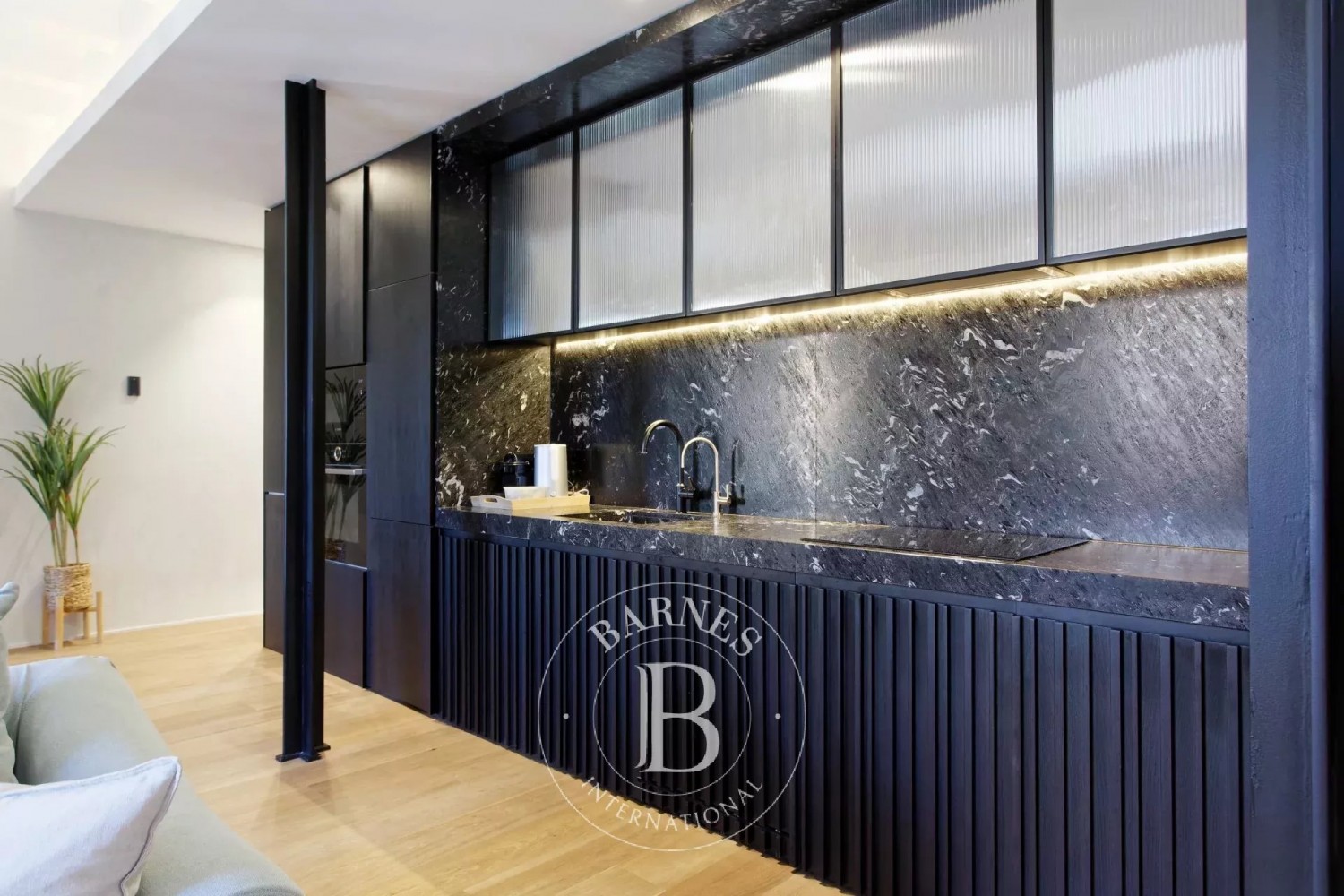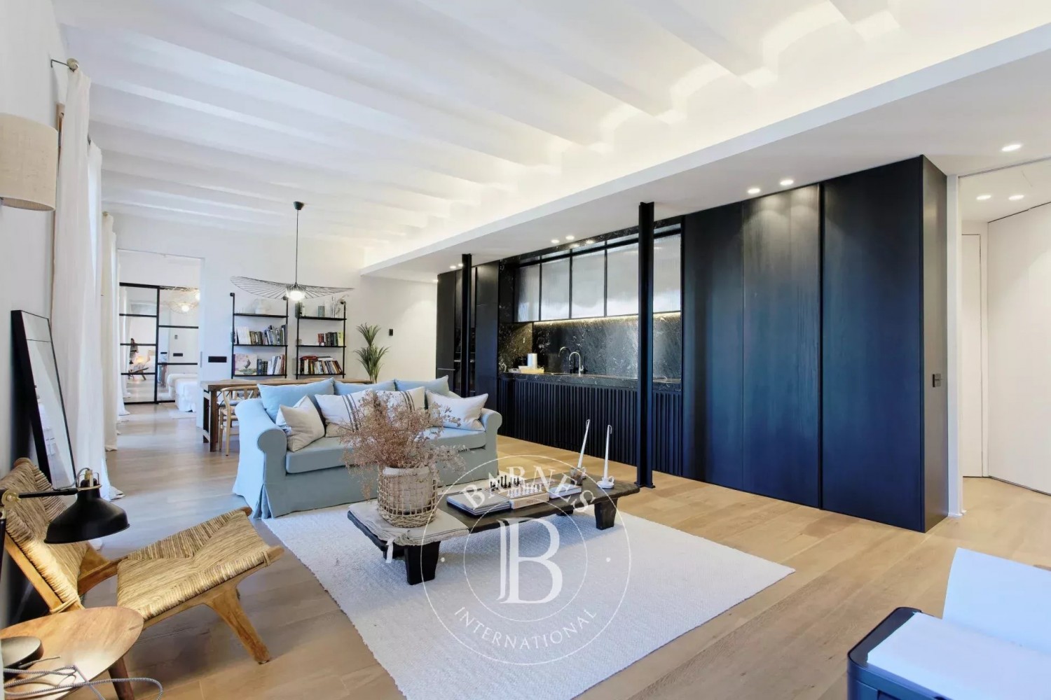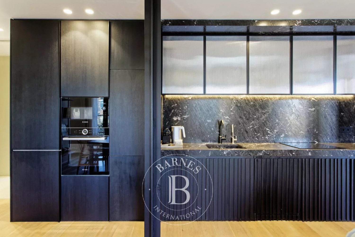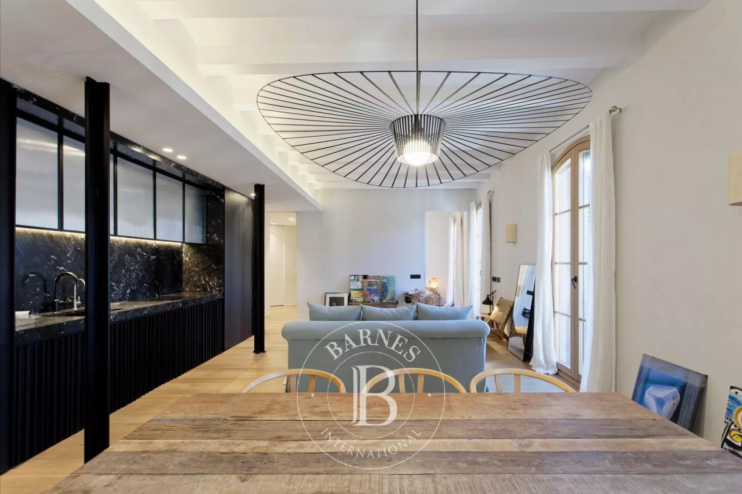 Located on the sixth floor of a typical corner regia building in the Eixample, its layout allows for exceptional natural light, enhancing every space with a sense of openness and warmth. The residence has been renovated with high-quality materials and features an open-plan space integrating the living room, dining area, and a designer kitchen equipped with Bosch appliances, offering both style and functionality.