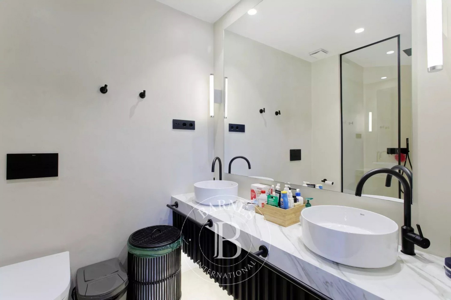 The property offers three double bedrooms, including a master suite with dressing room and private bathroom. All rooms are exterior, ensuring natural light and ventilation throughout the home. The building includes an elevator and concierge service, providing comfort and security.