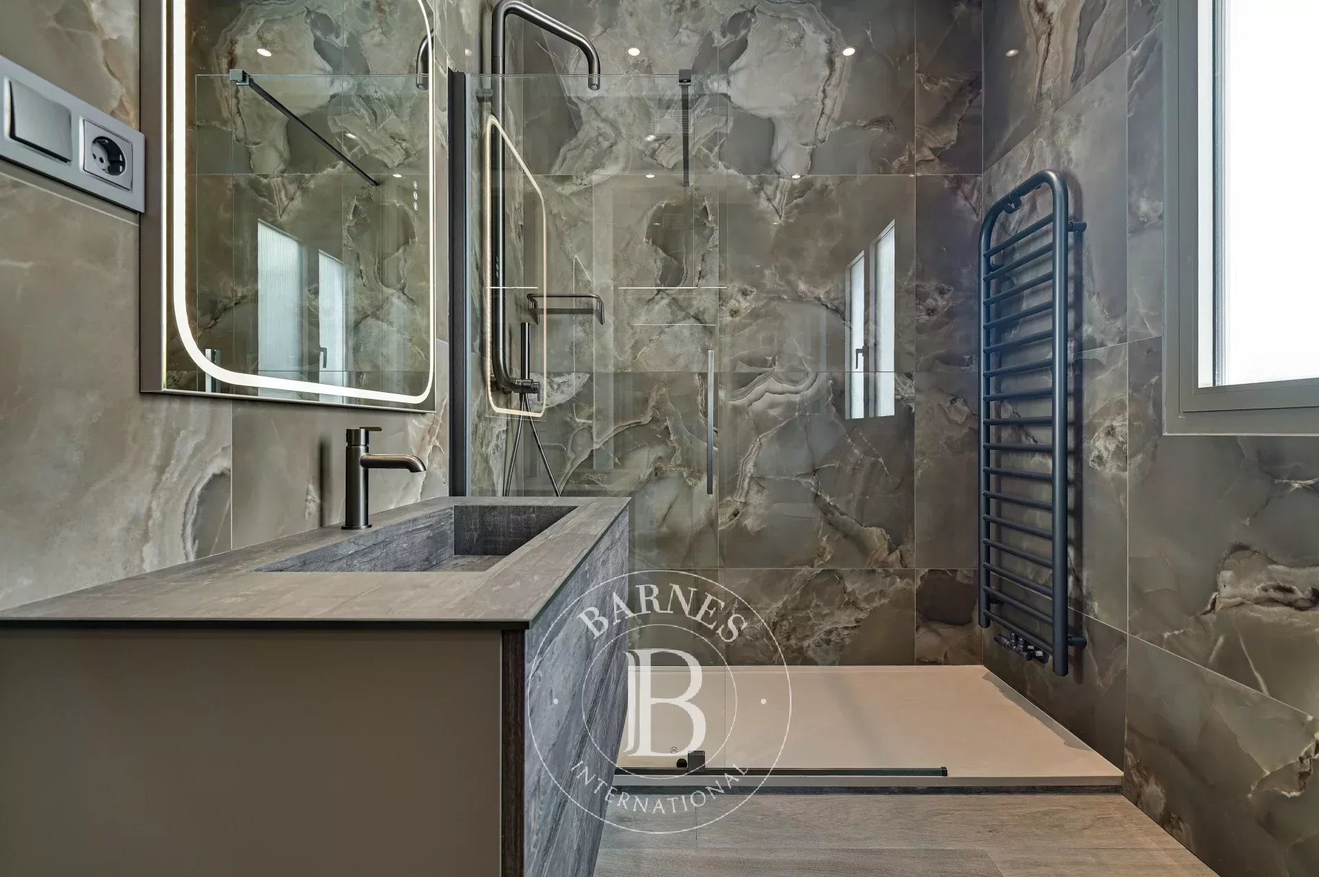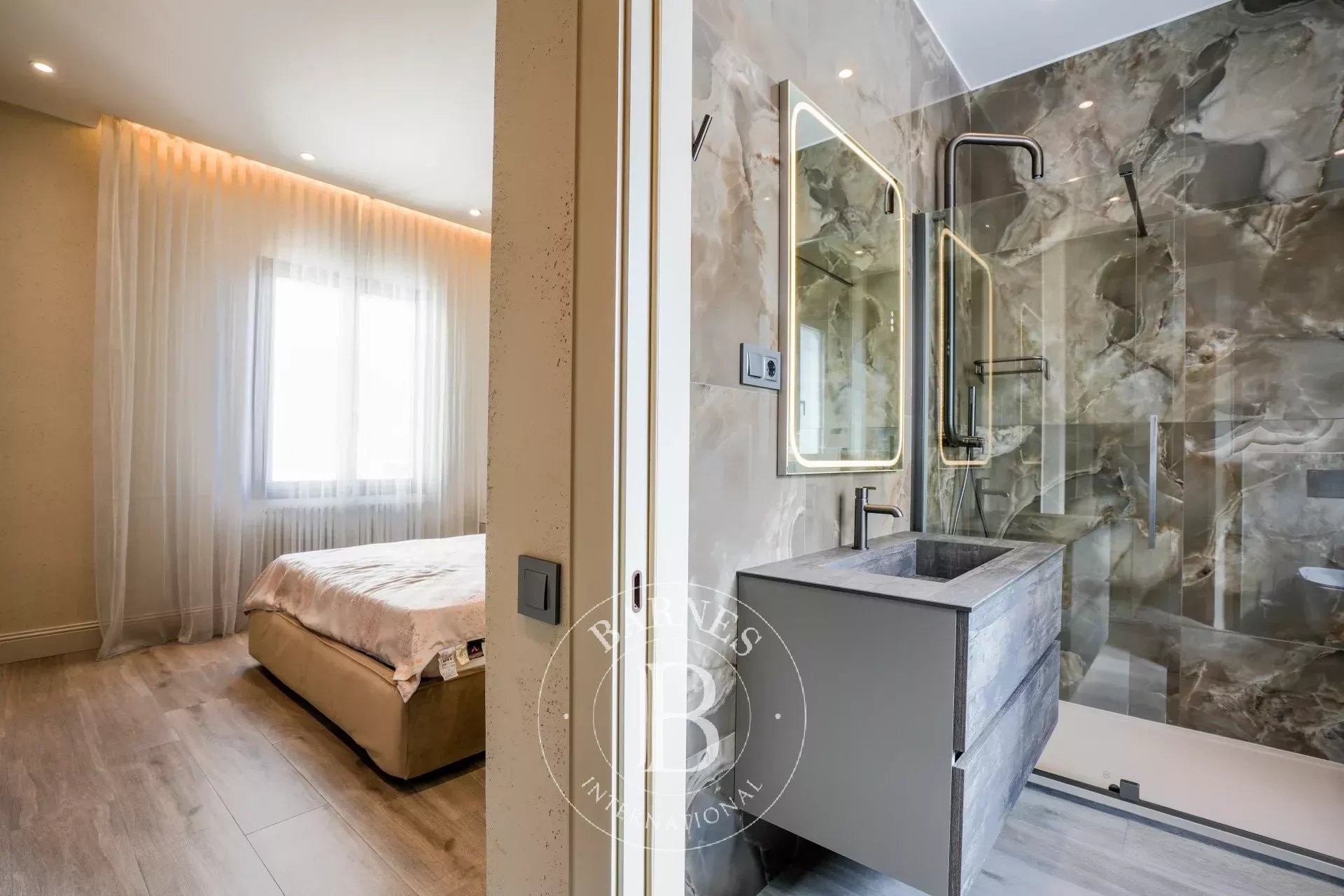 The selection of materials reflects a clear criterion: durability, timelessness, and comfort. Classic-inspired flooring reinterpreted in a contemporary style, microcement wall finishes, high-quality carpentry, custom-made wardrobes, and bathrooms conceived as serene and functional spaces. The residence also features zoned climate control, heat-recovery ventilation, and an advanced insulation system ensuring year-round comfort.