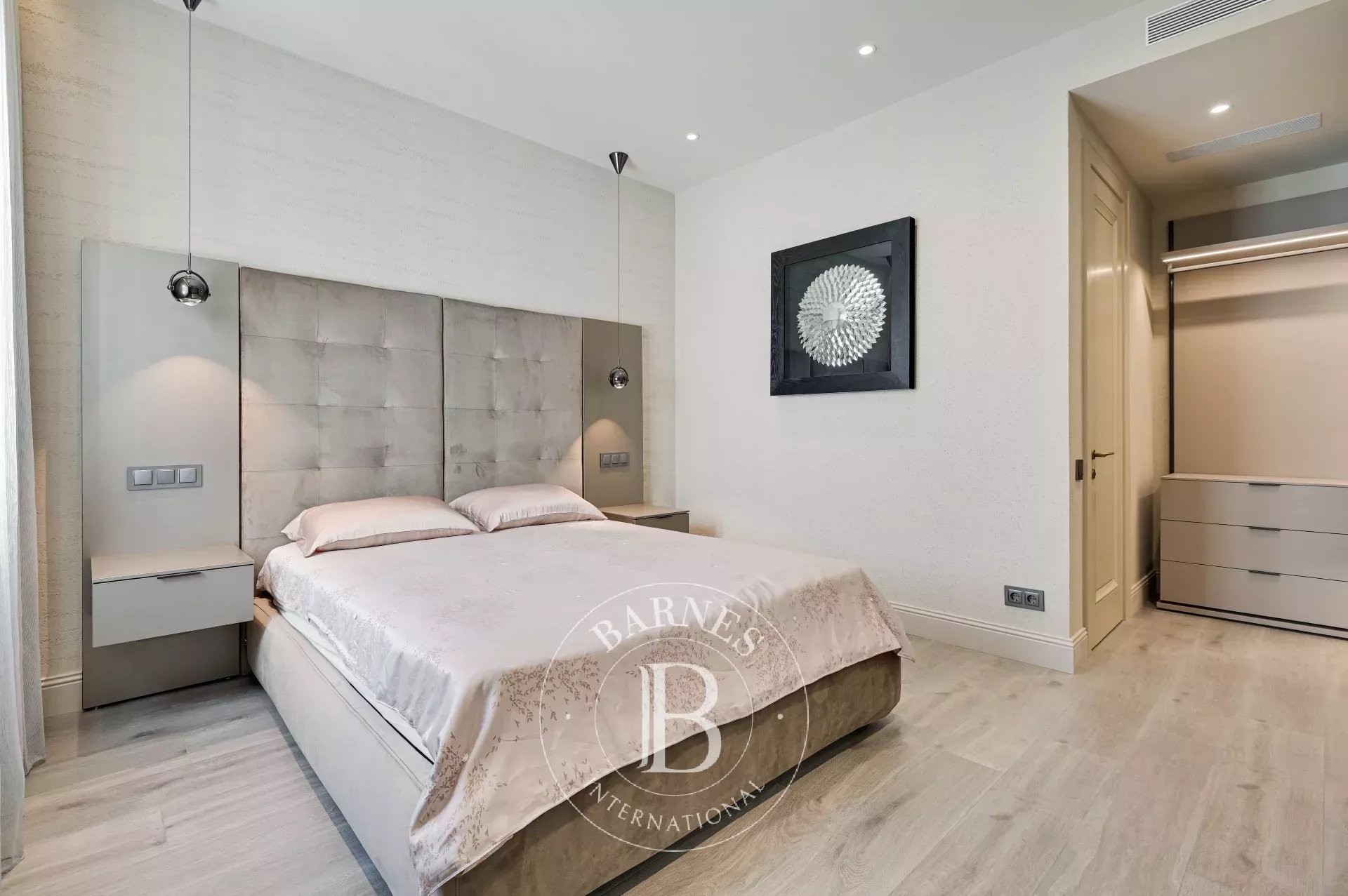 The private area is organized around a spacious master suite with a dressing room and en-suite bathroom, accompanied by three double bedrooms, two additional full bathrooms, and a separate laundry room.