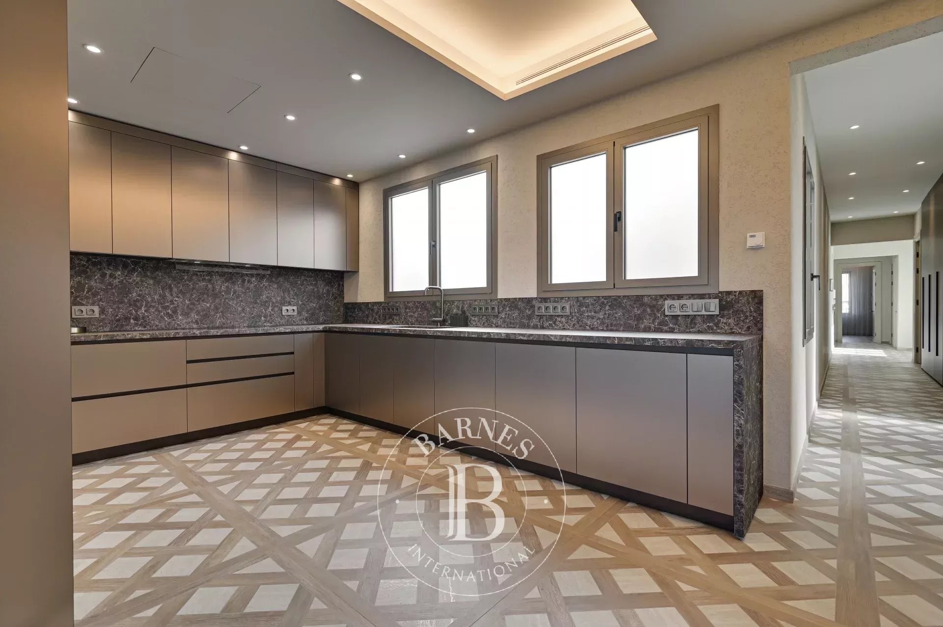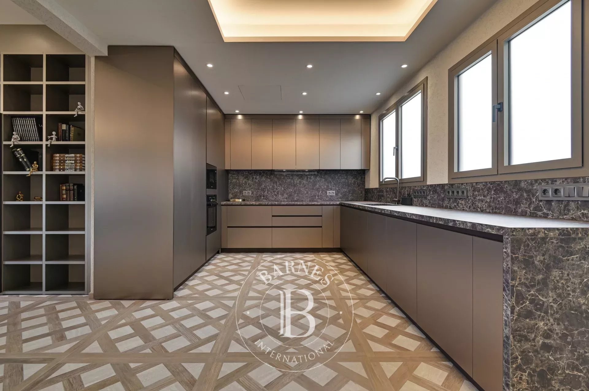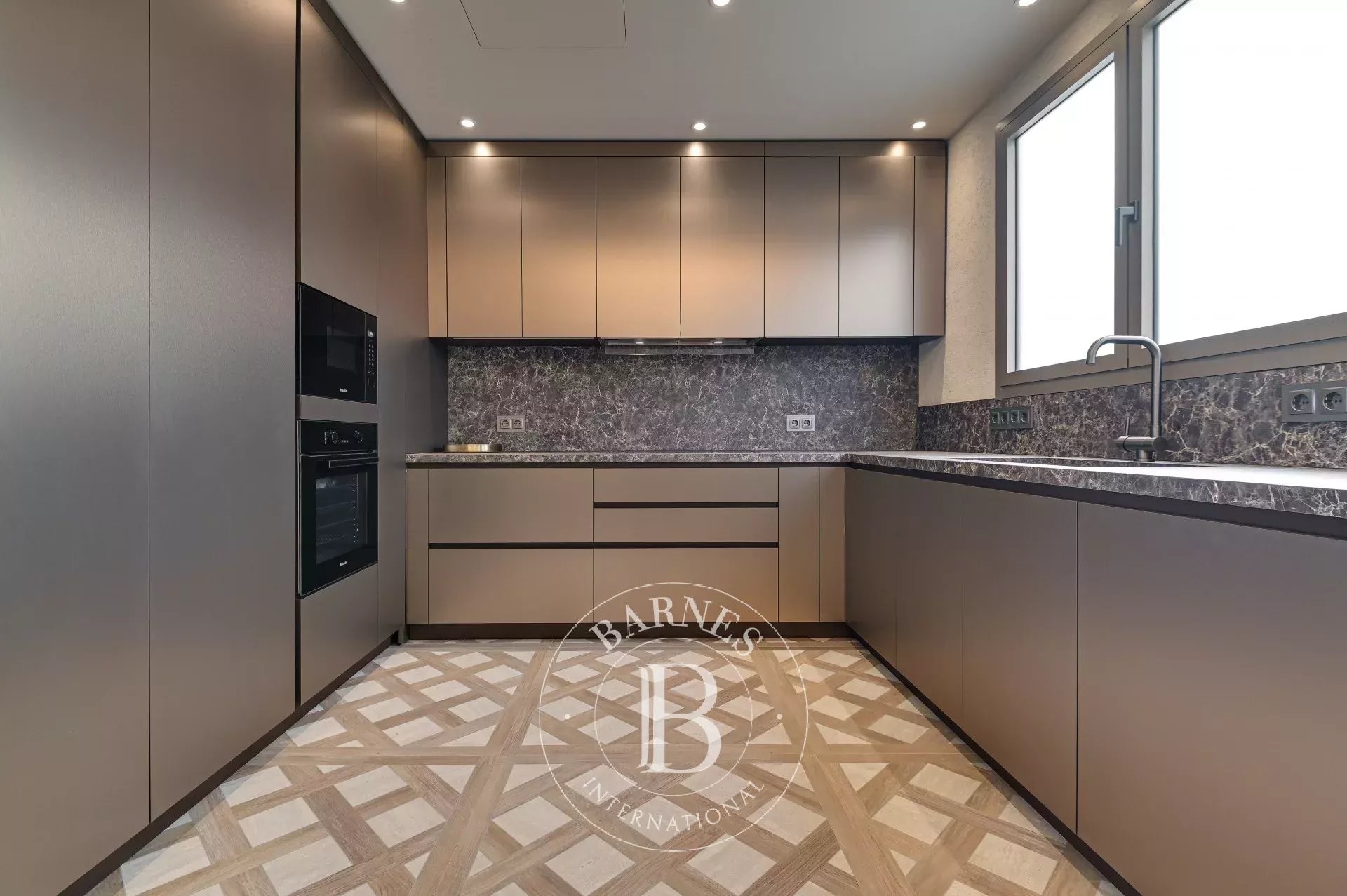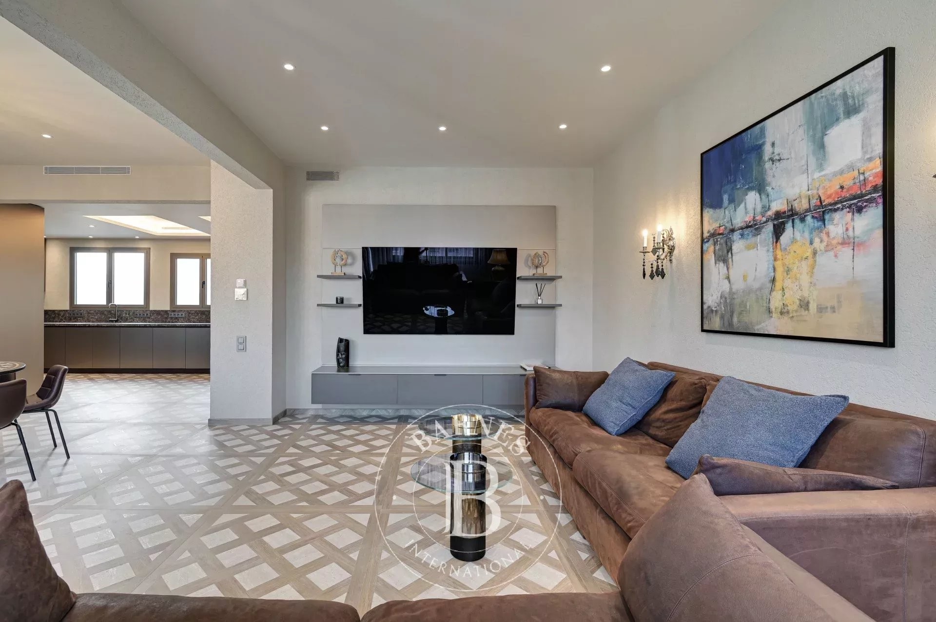 Bathed in natural light, the living-dining room integrates harmoniously with the prestigious TM ITALIA kitchen. Equipped with Miele appliances and high-performance finishes, it combines aesthetics and functionality with absolute precision. The adjacent glazed sun room enhances the sense of space and brightness, creating a warm, refined, and character-filled atmosphere.