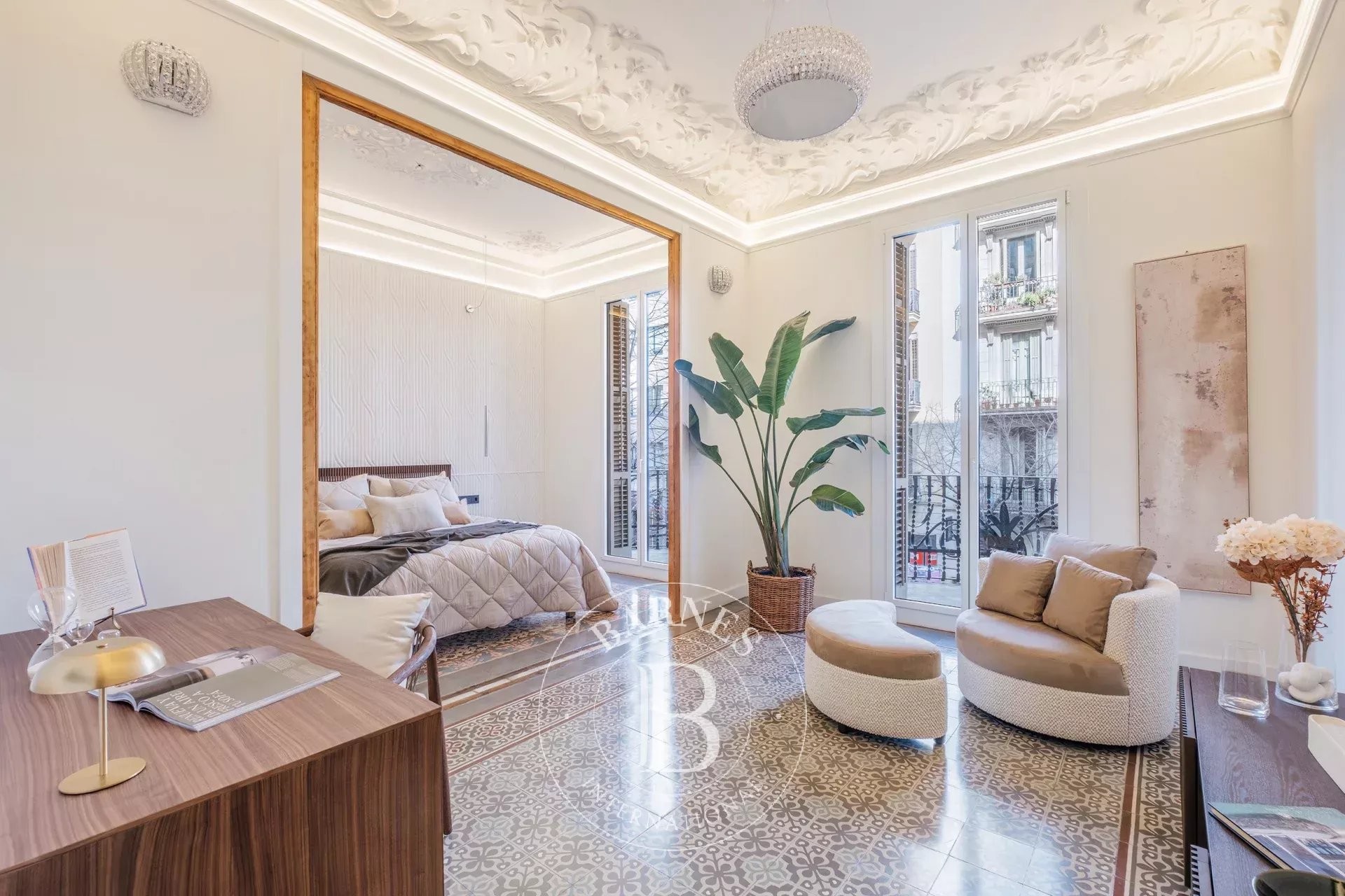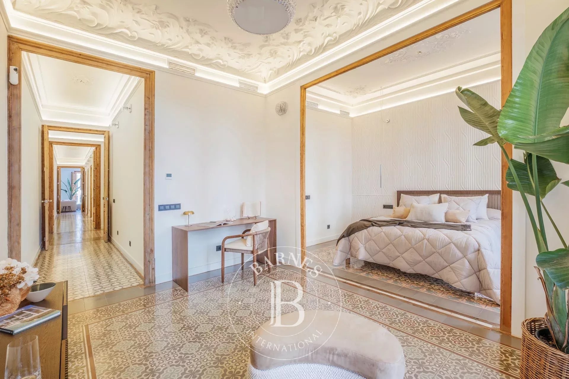 Barnes presents an exquisite residence located on the main floor of a stately 1910 building that impeccably preserves its original features, such as cement tile flooring and high coffered ceilings. Situated in a prime location between Avenida Diagonal, Paseo de Gracia, and Francesc Macià, it represents the very essence of Barcelona's historical character.