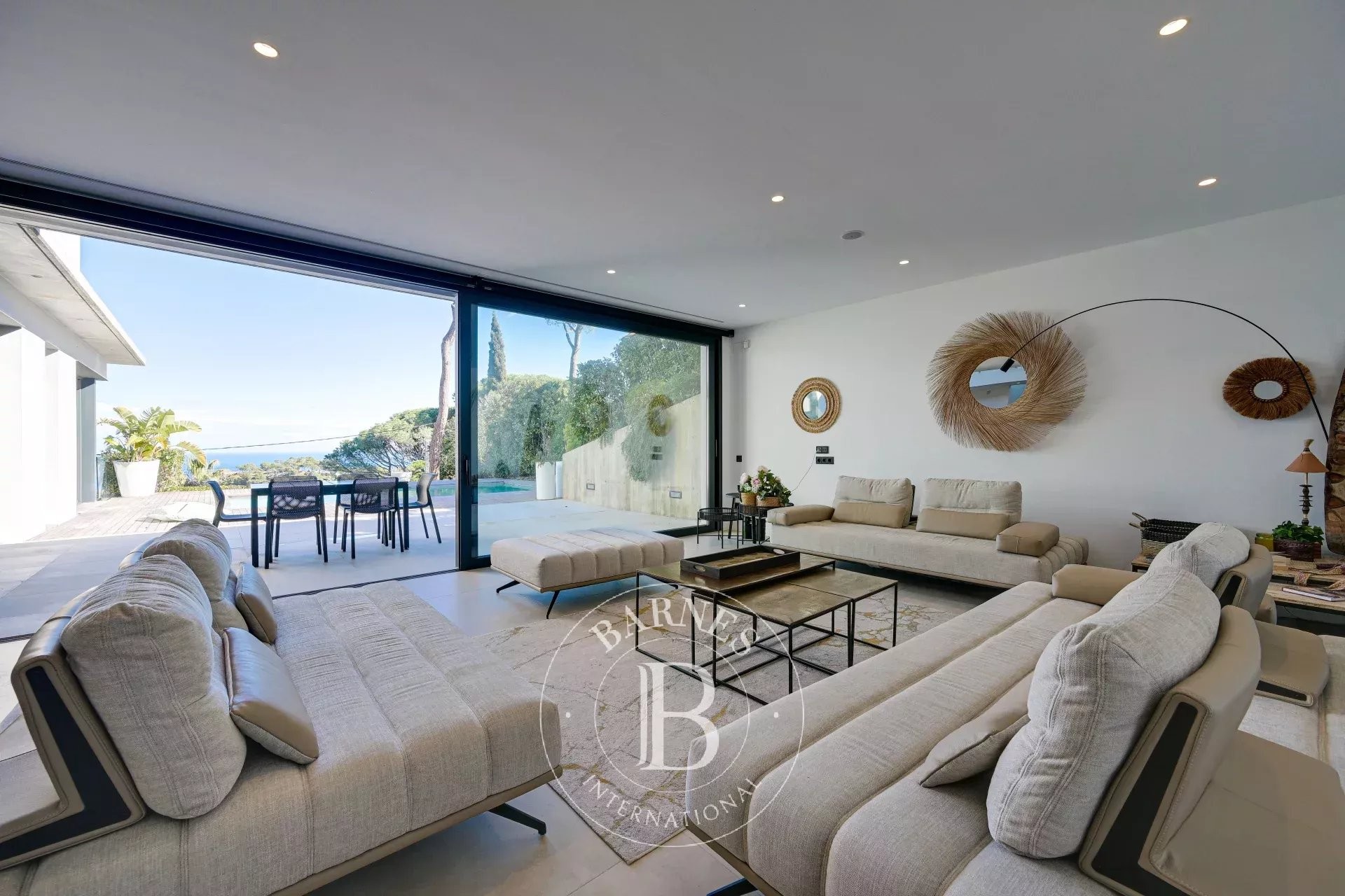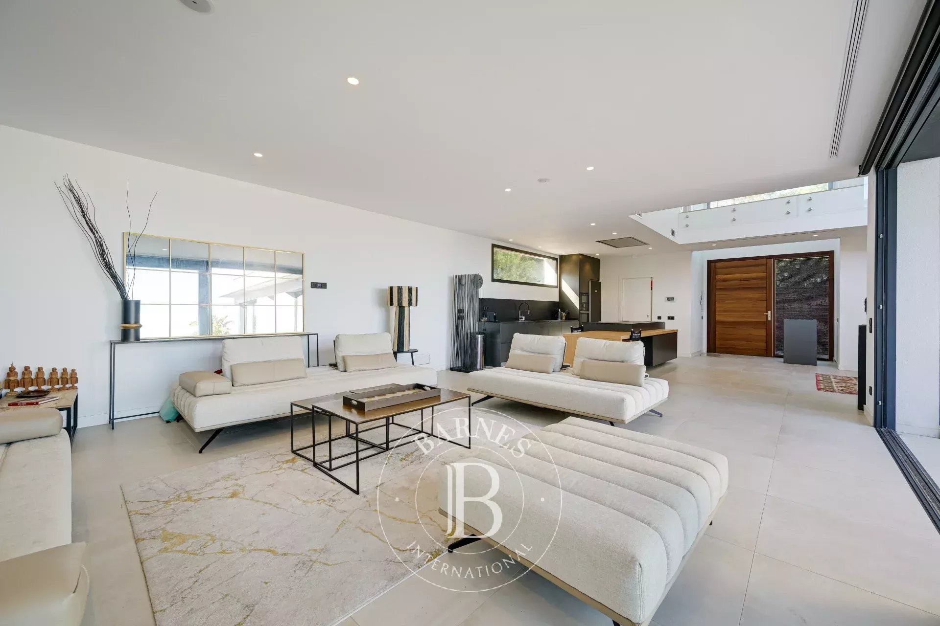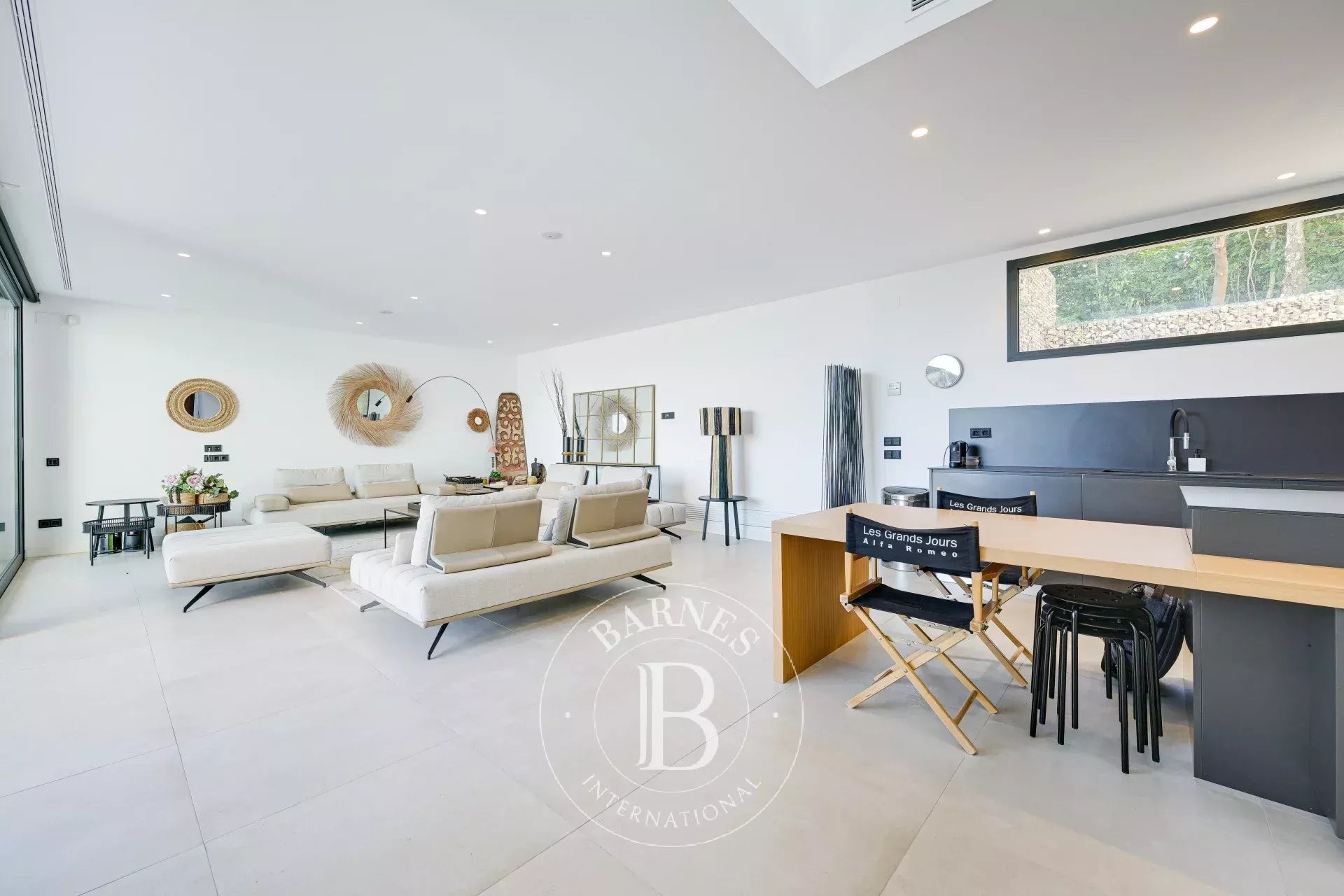 The villa has been designed to maximise natural light and connection with the Mediterranean landscape. Large windows and open spaces allow sea views from the main living areas, creating a seamless transition between interior and outdoor spaces.