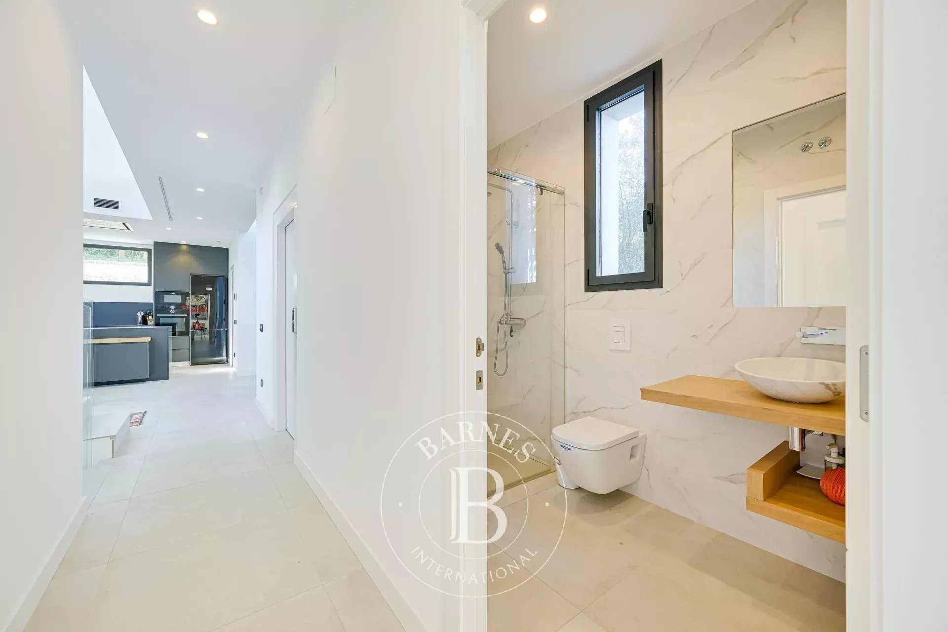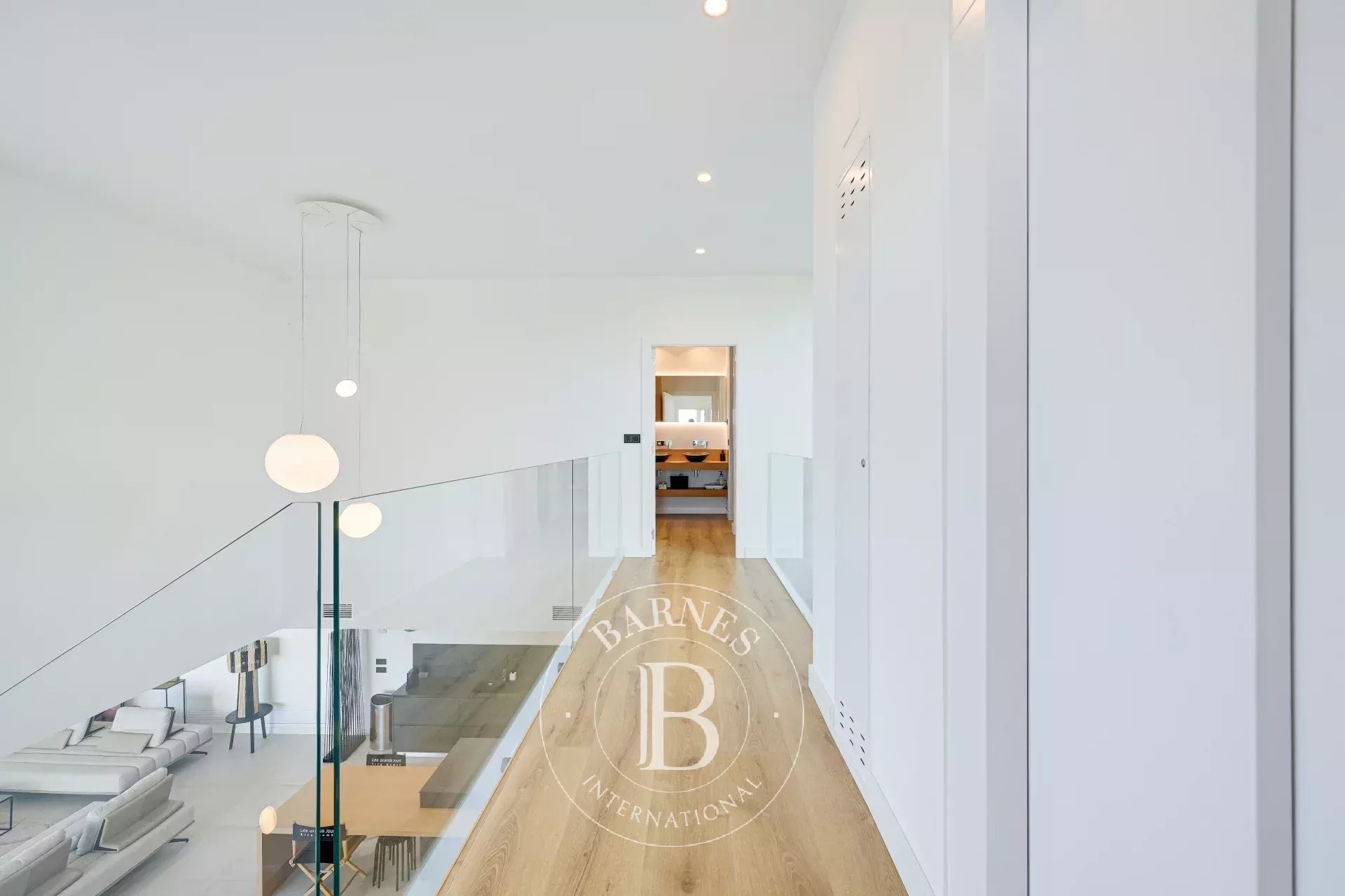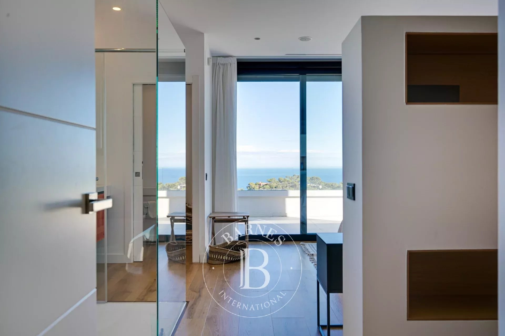 The upper floor is dedicated to the main sleeping area, with two spacious suites featuring dressing rooms, private terraces and privileged views over the Mediterranean. The lower level includes a spacious garage, technical room and a versatile multipurpose room with natural light, ideal as a gym, cinema room or guest space.