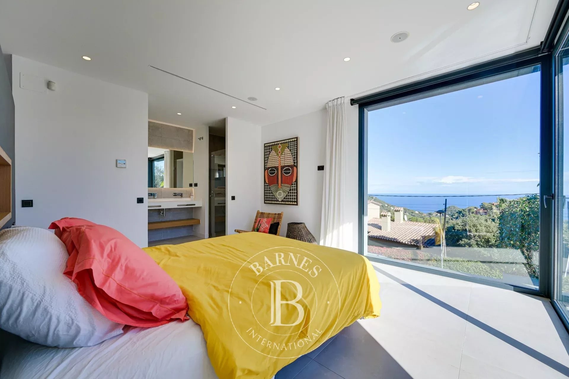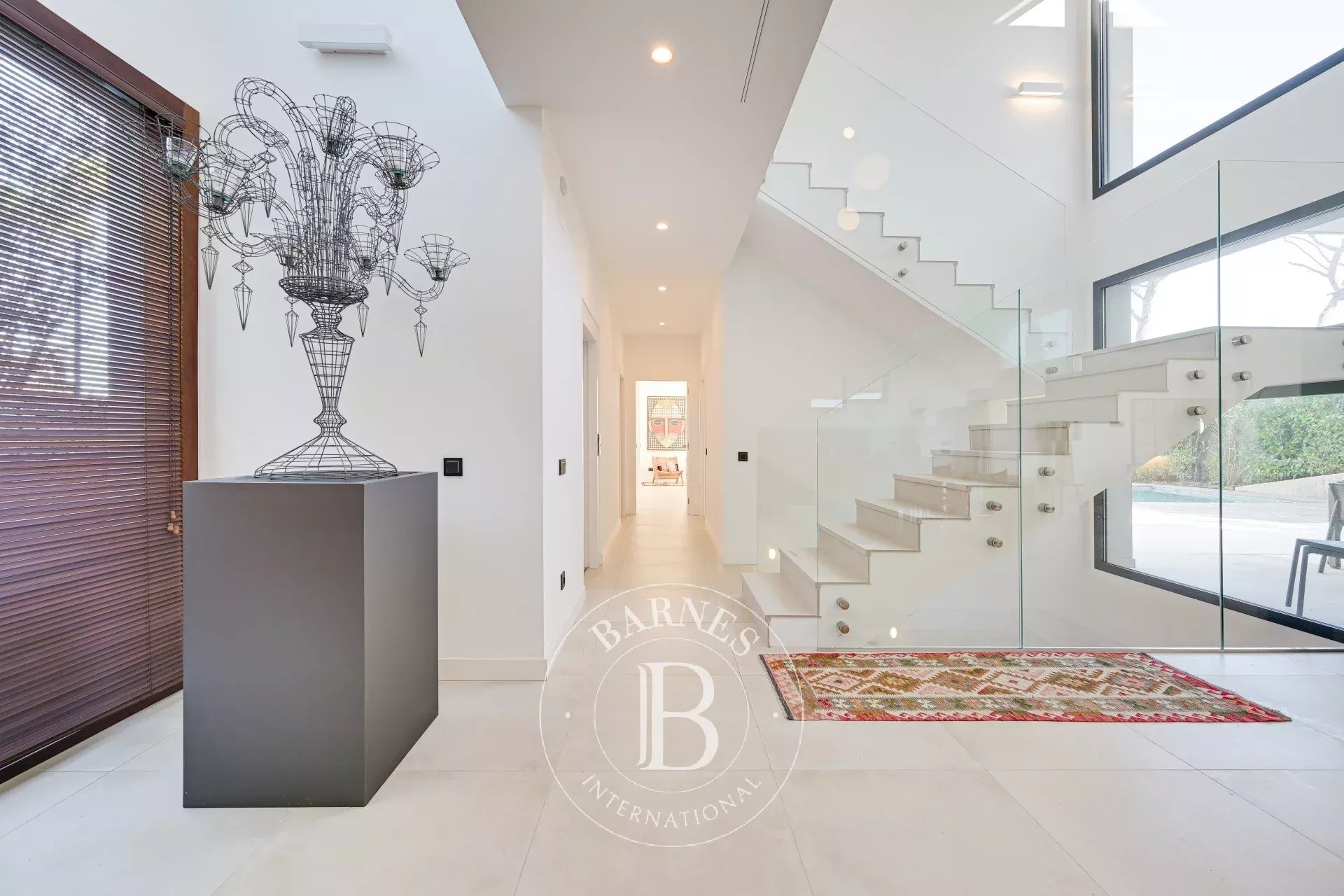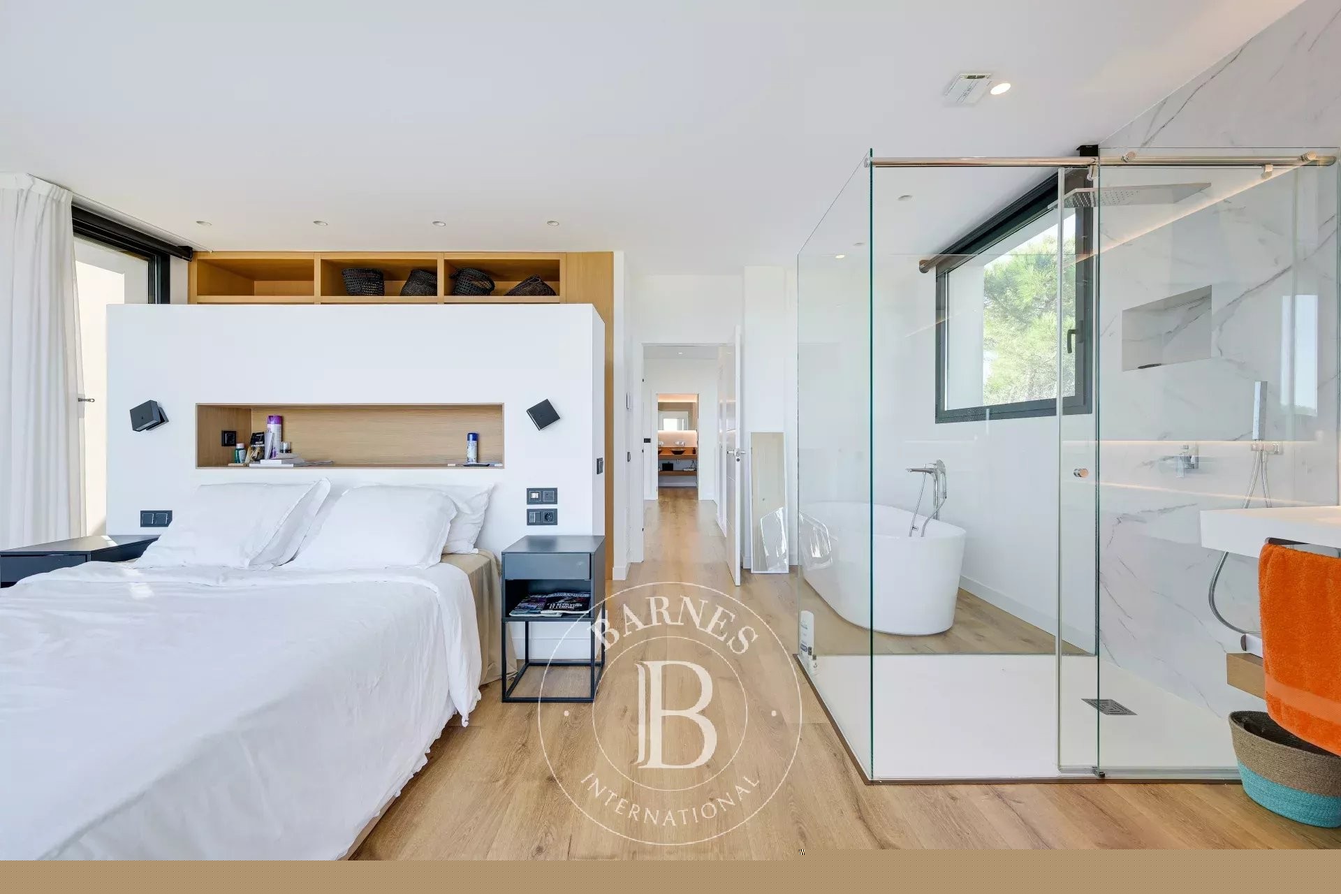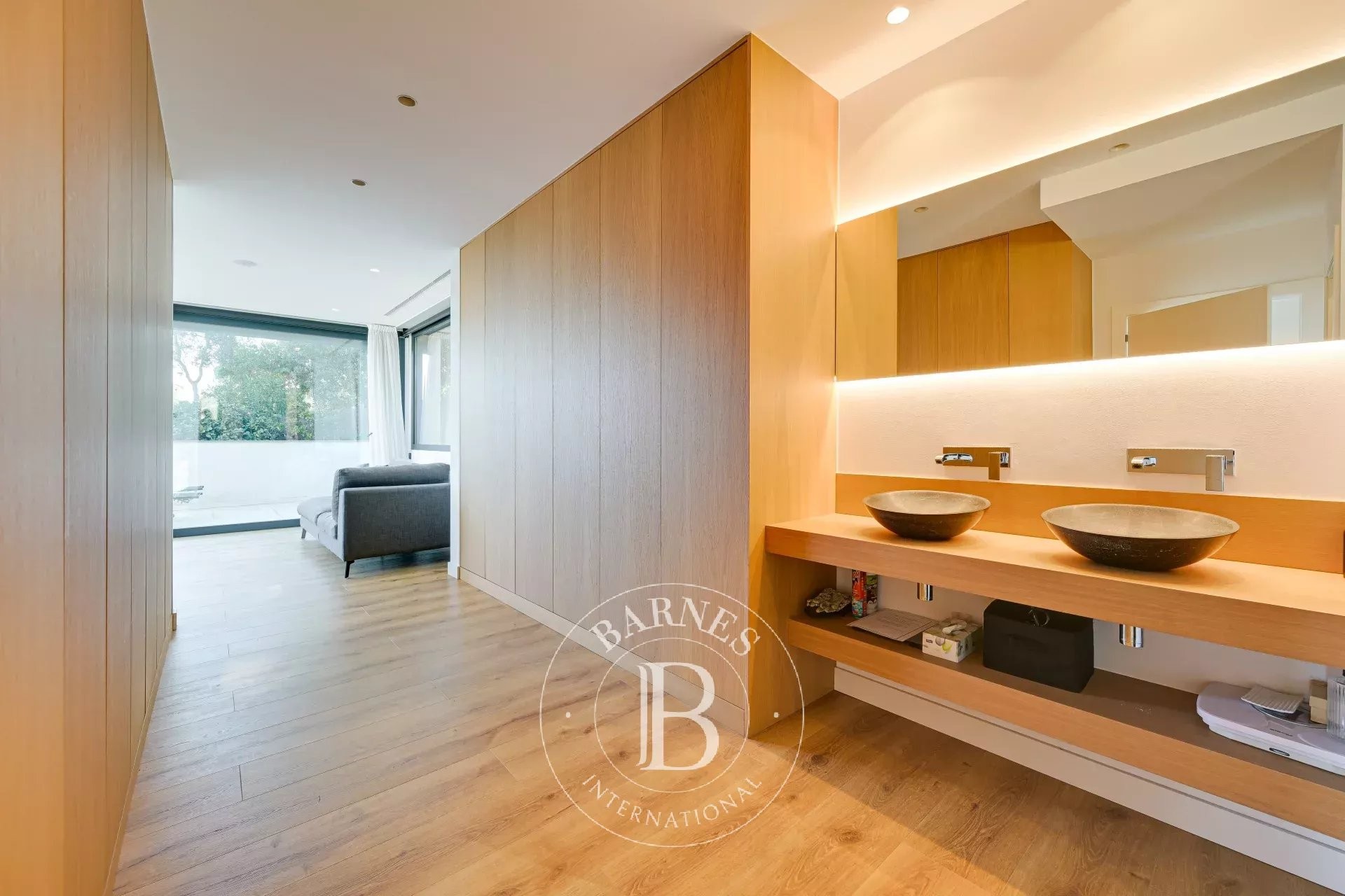 The upper floor is dedicated to the main sleeping area, with two spacious suites featuring dressing rooms, private terraces and privileged views over the Mediterranean. The lower level includes a spacious garage, technical room and a versatile multipurpose room with natural light, ideal as a gym, cinema room or guest space.