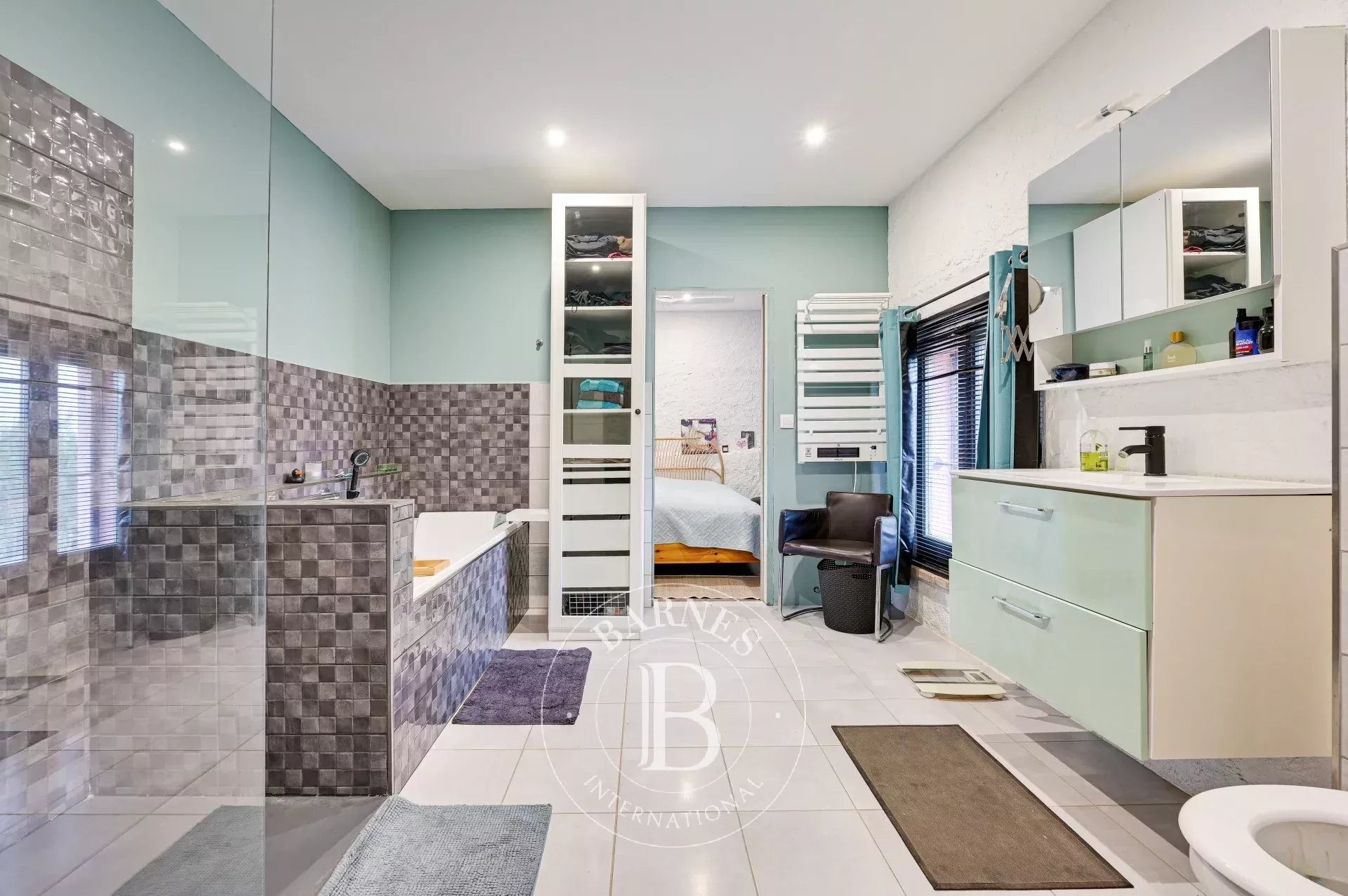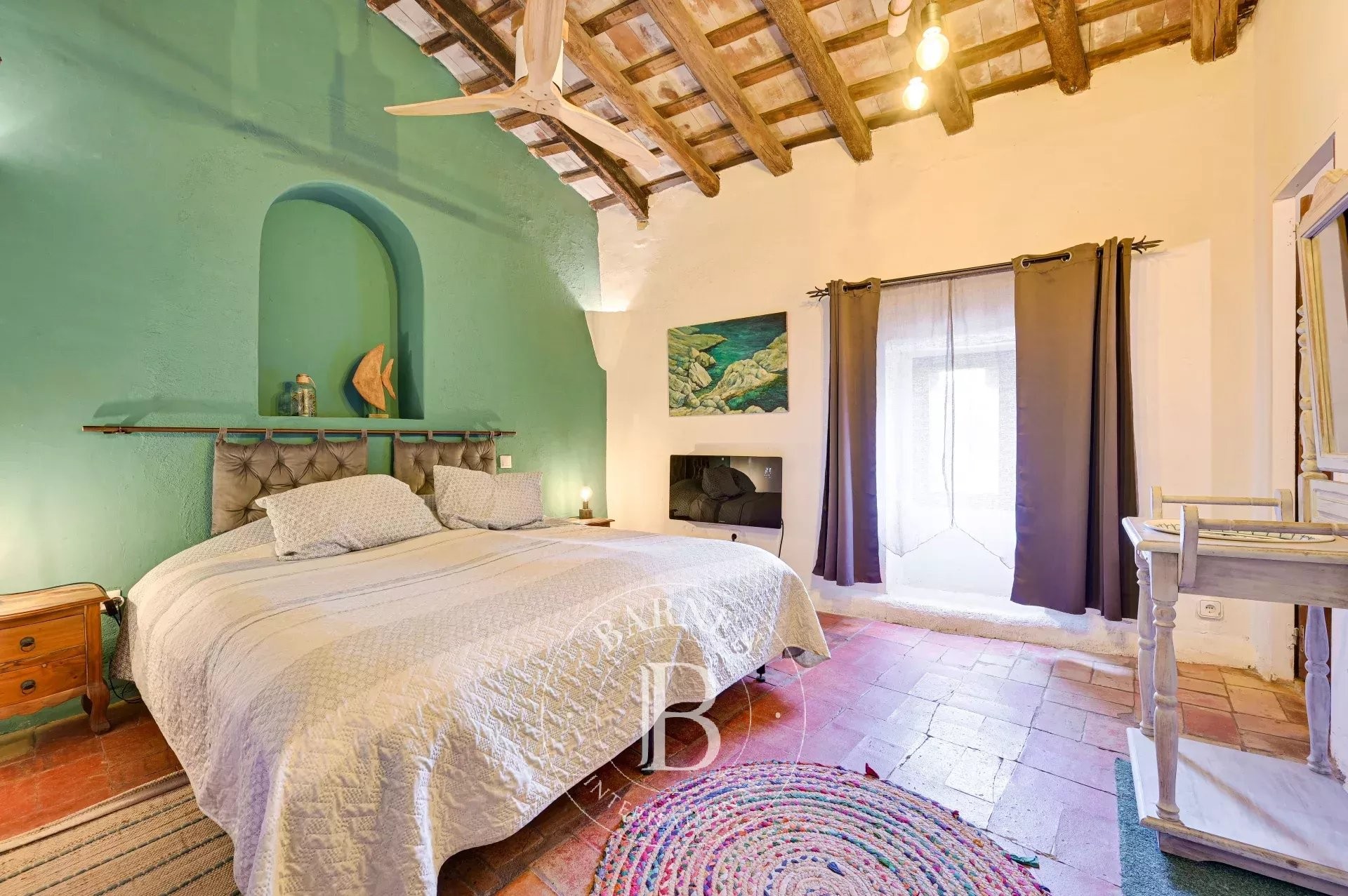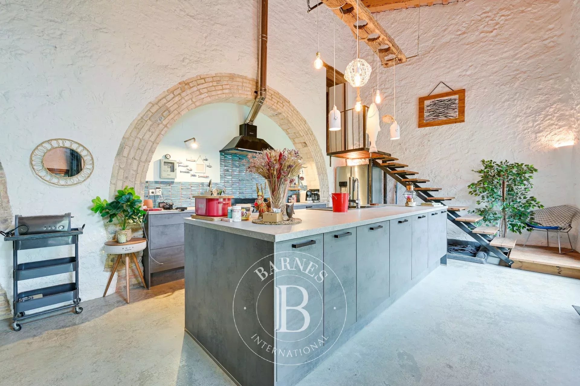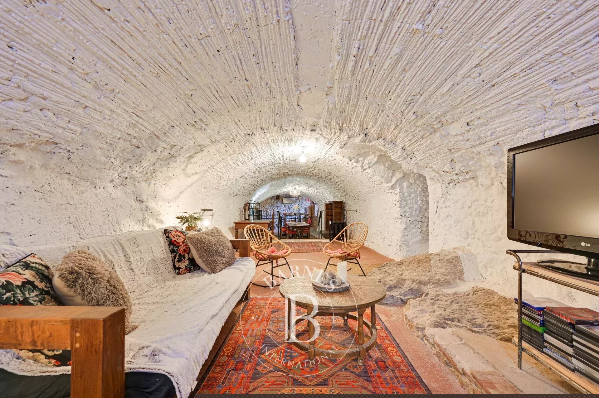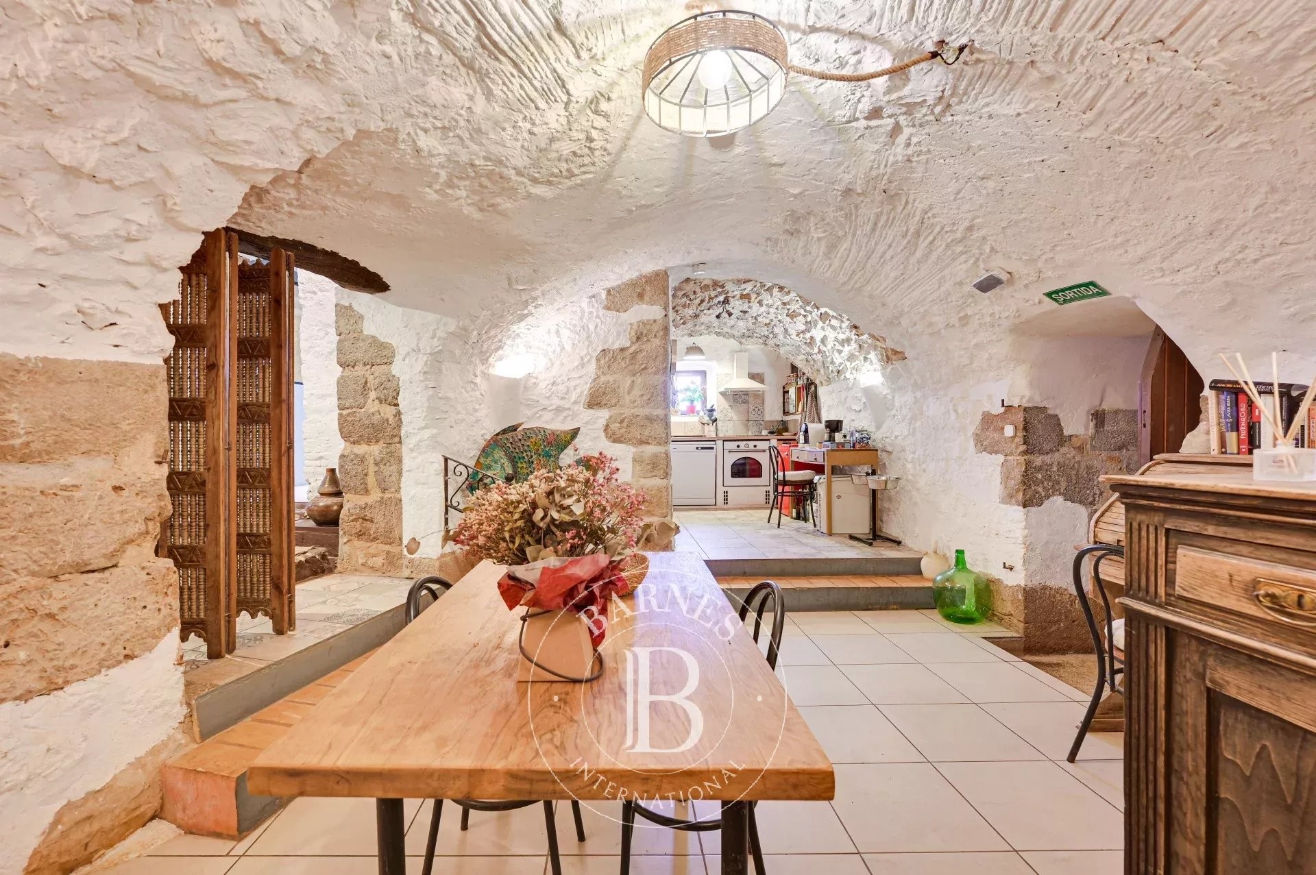 The former barn has been carefully renovated to accommodate a second residence distributed over two floors. It features an open-plan kitchen with central island, a bright living-dining room, a bathroom and guest toilet, two en-suite bedrooms, and a large workshop/garage. Both levels can function independently, offering excellent potential for expansion or complementary uses.