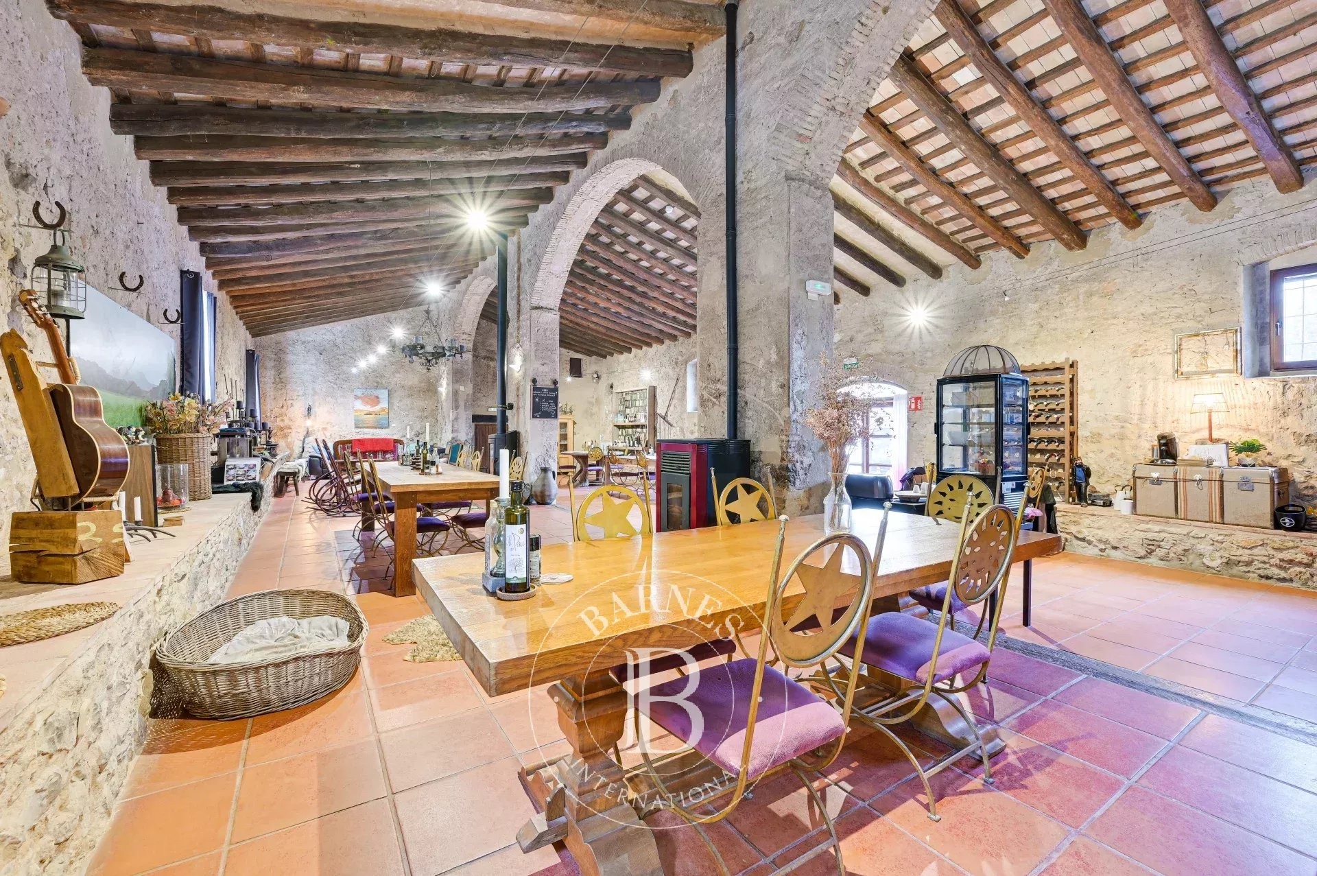 The property comprises two independent buildings. The main building, a traditional masia rich in original charm and generous volumes, is arranged around elegant reception rooms, a spacious kitchen, library, and six en-suite bedrooms, one of which is adapted for reduced mobility. It also includes a fully equipped independent apartment, providing flexibility for guests or staff. Its layout and scale make it perfectly suited as an exclusive private residence or to continue operating as a boutique hospitality project.