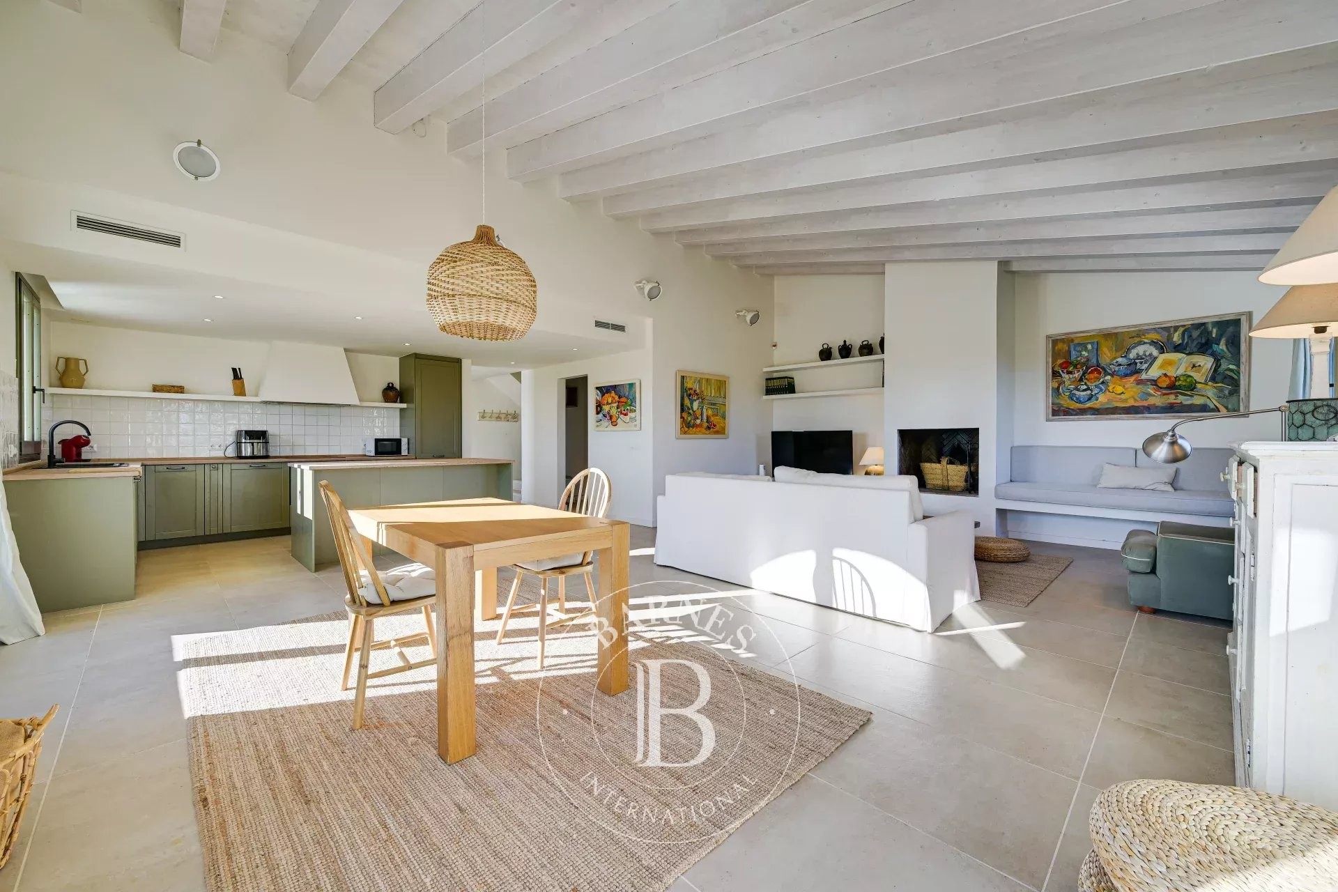 It also includes a living room with fireplace, efficient climate control, and quality finishes, ready to move into without any renovation.