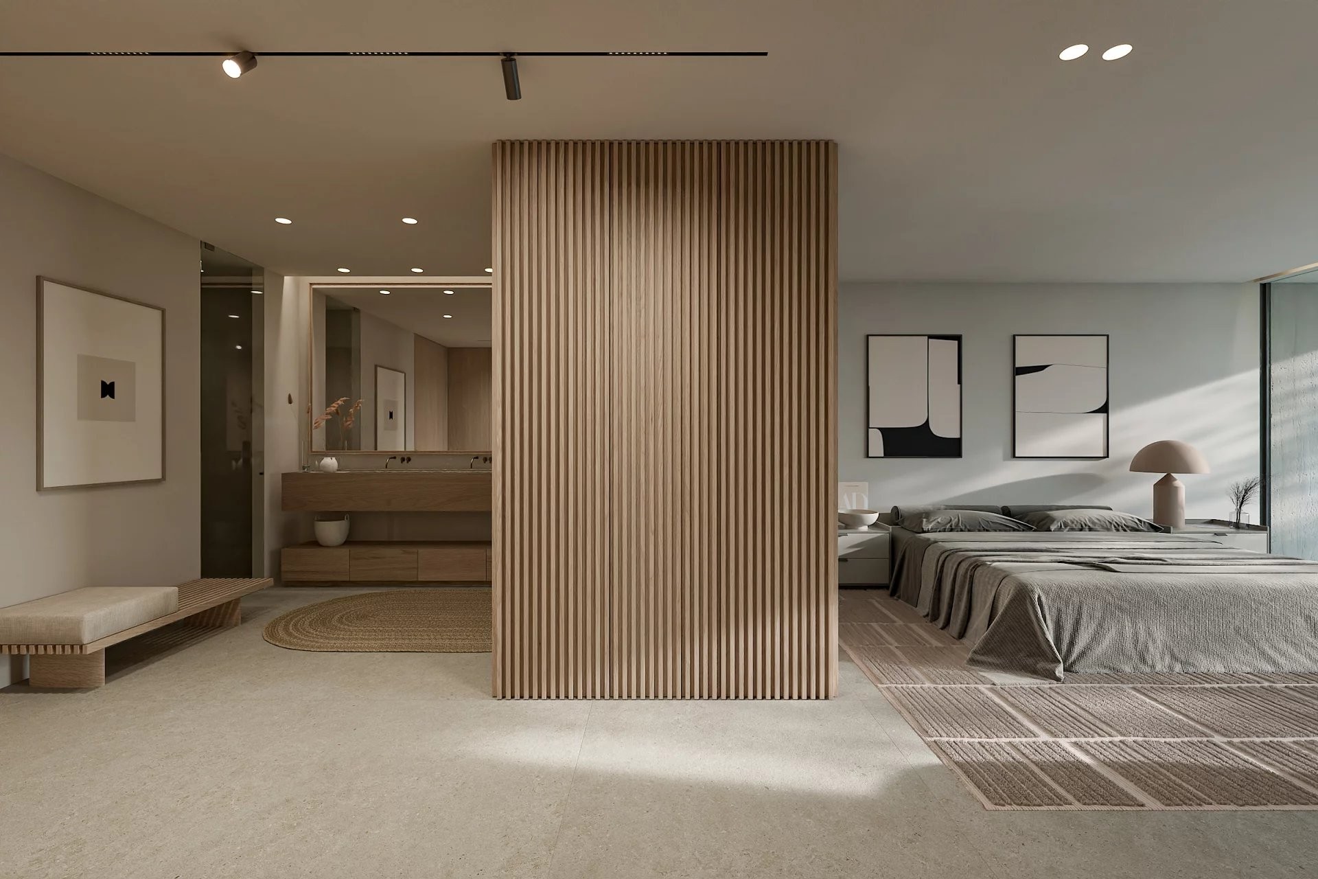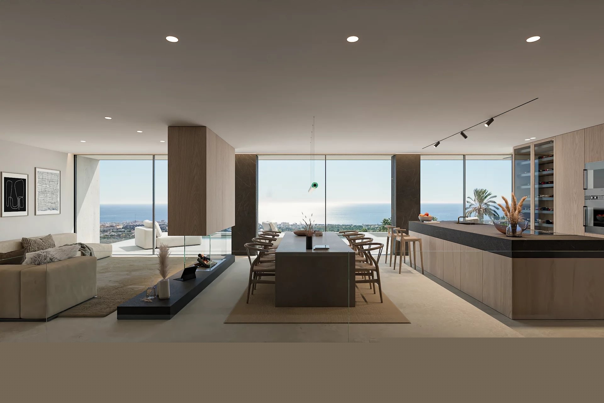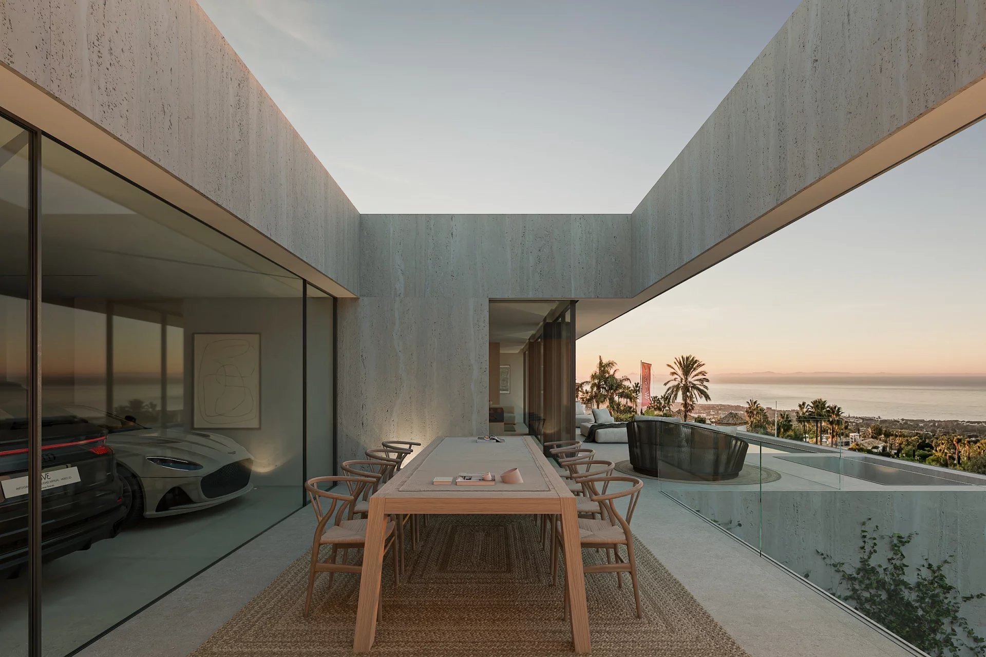 The villa has four spacious bedrooms and five bathrooms, all with top-quality finishes, providing functionality and well-being for both everyday living and entertaining guests. The interior spaces open onto the outside through large windows, allowing a fluid connection with the garden and maximizing the entry of natural light.