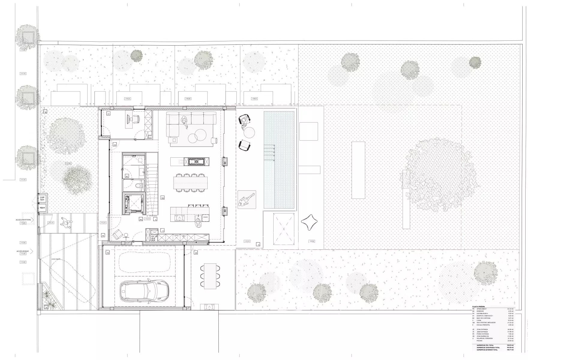 The property is spread over three floors and has a built area of 479 m², of which 379 m² is usable space, set on a generous plot of 879 m². Its balanced volumes and modern architectural lines define a sophisticated home, where each space has been designed to offer comfort, privacy, and a high quality of life.