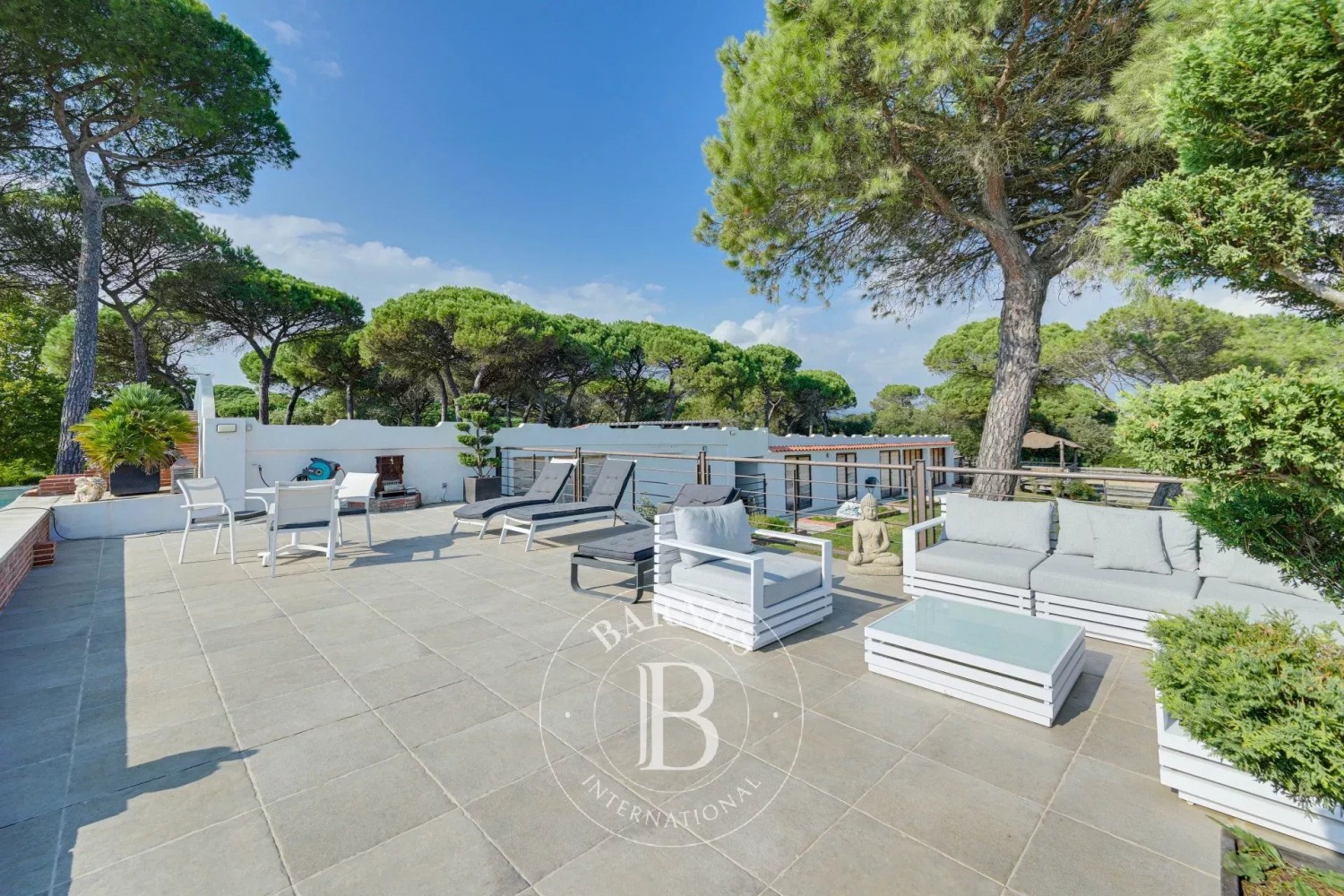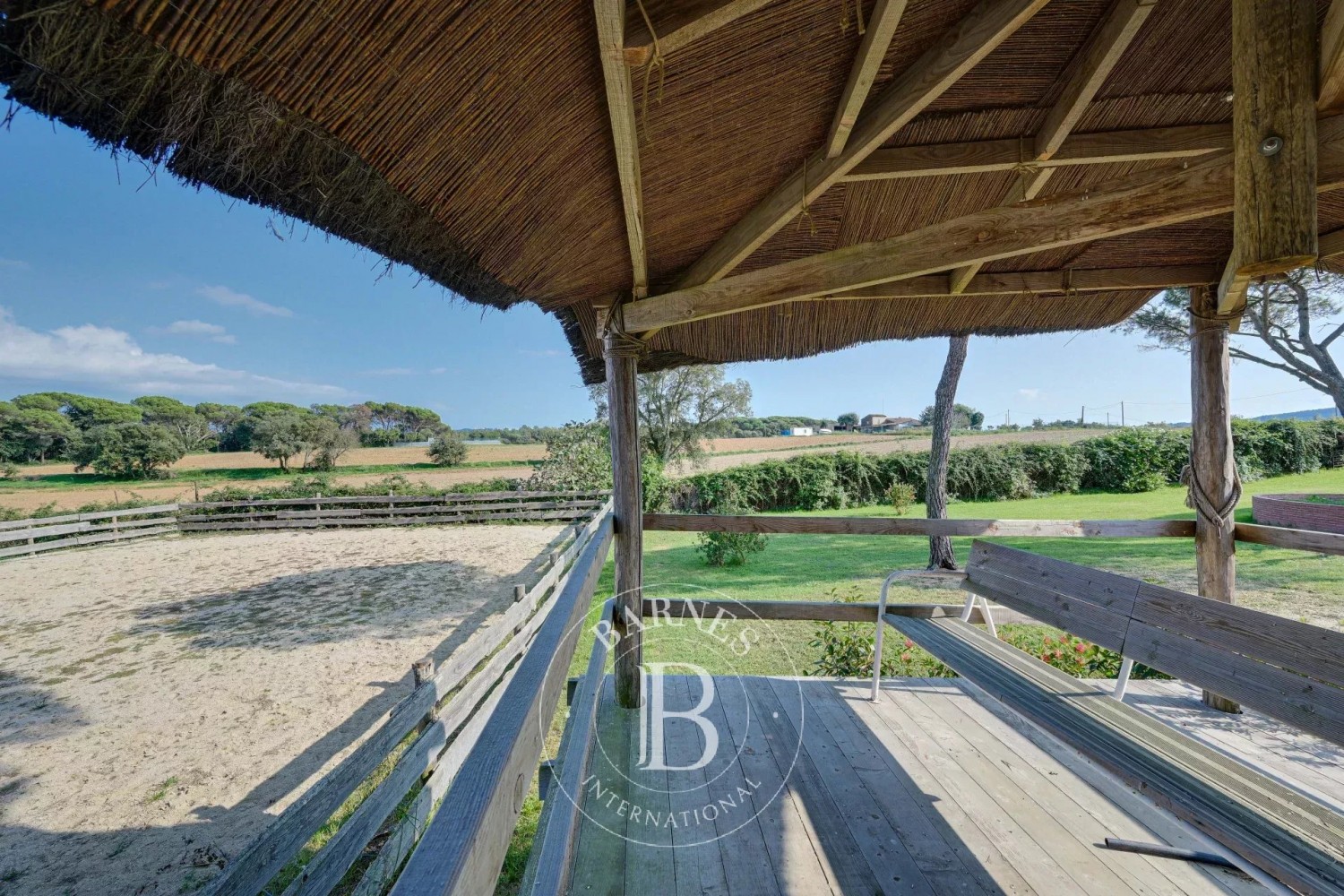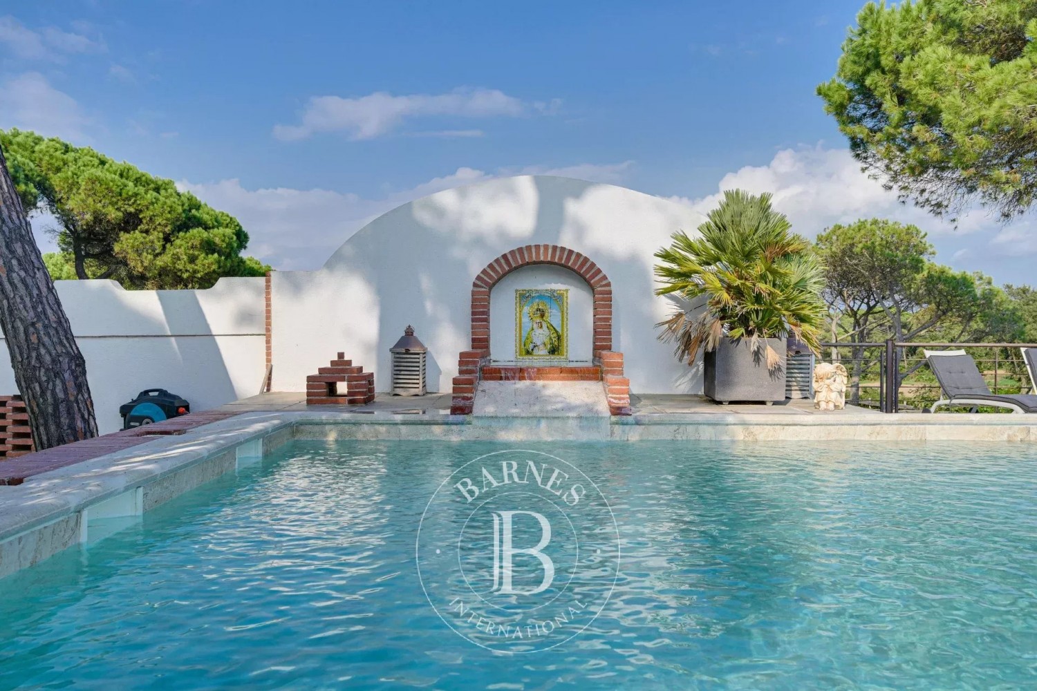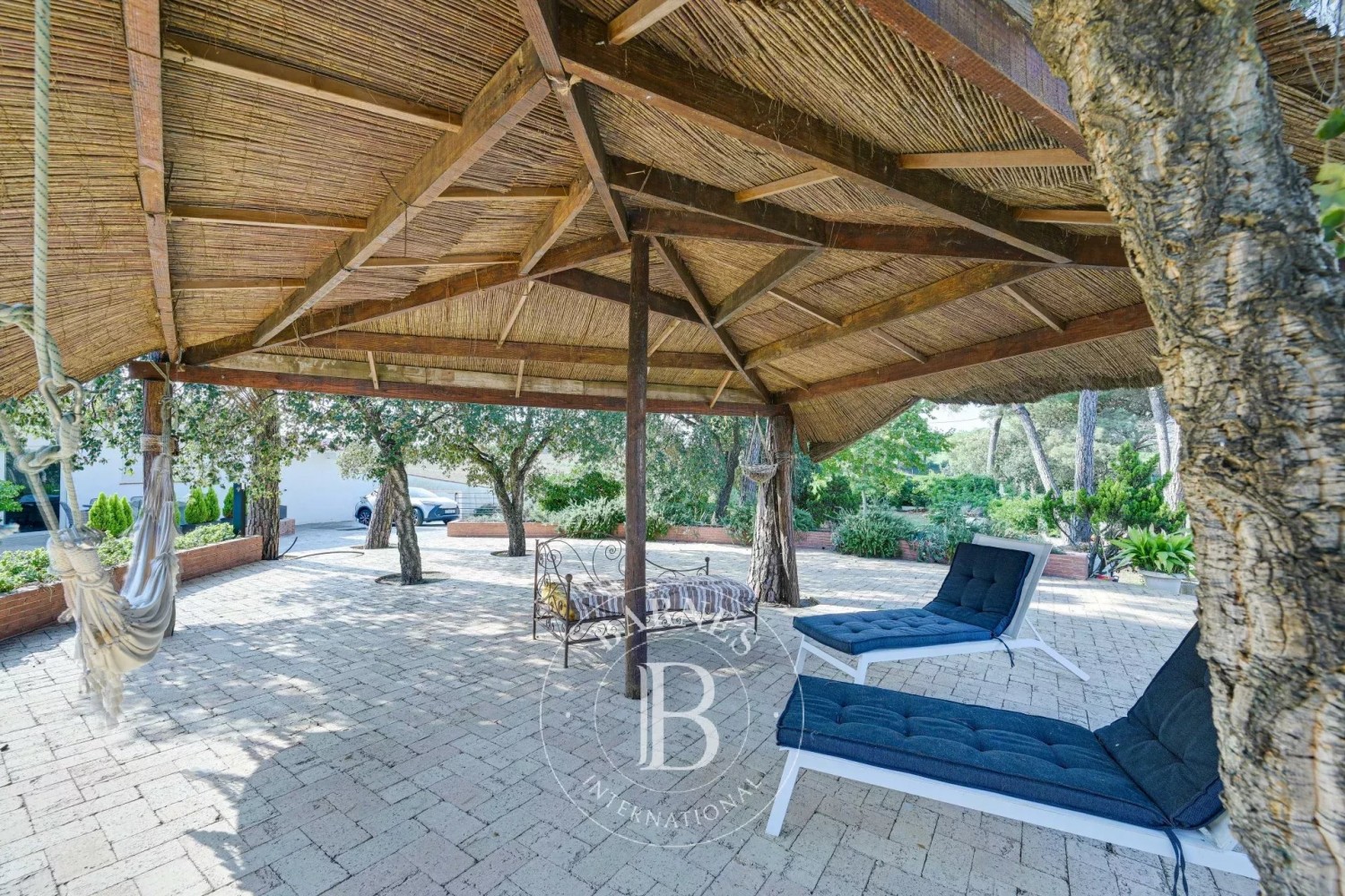 Traditional swimming pool (11 × 5 m), landscaped gardens, pine forest, fountains, terraces, and two chill-out paillotes — ideal for relaxation or private events.