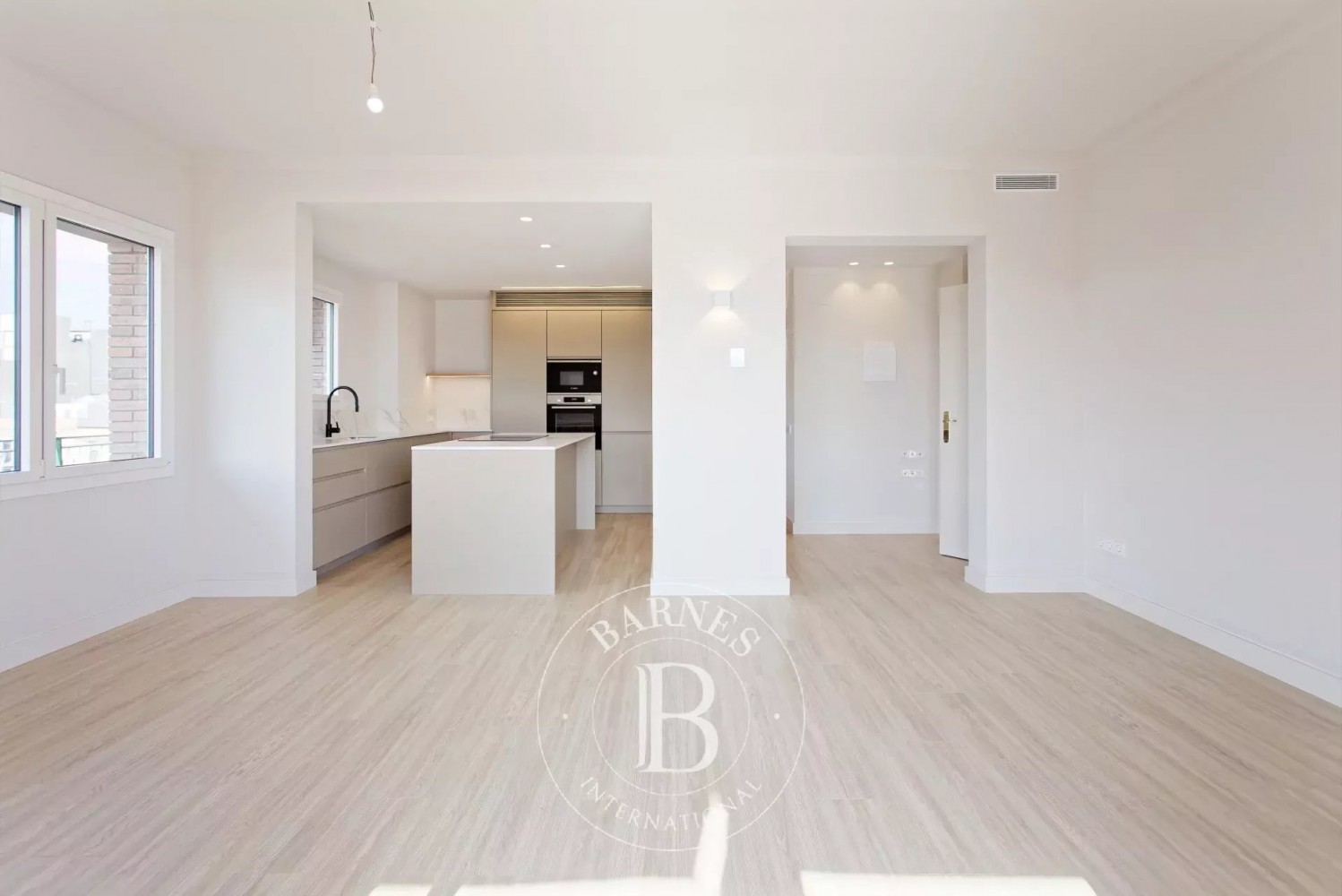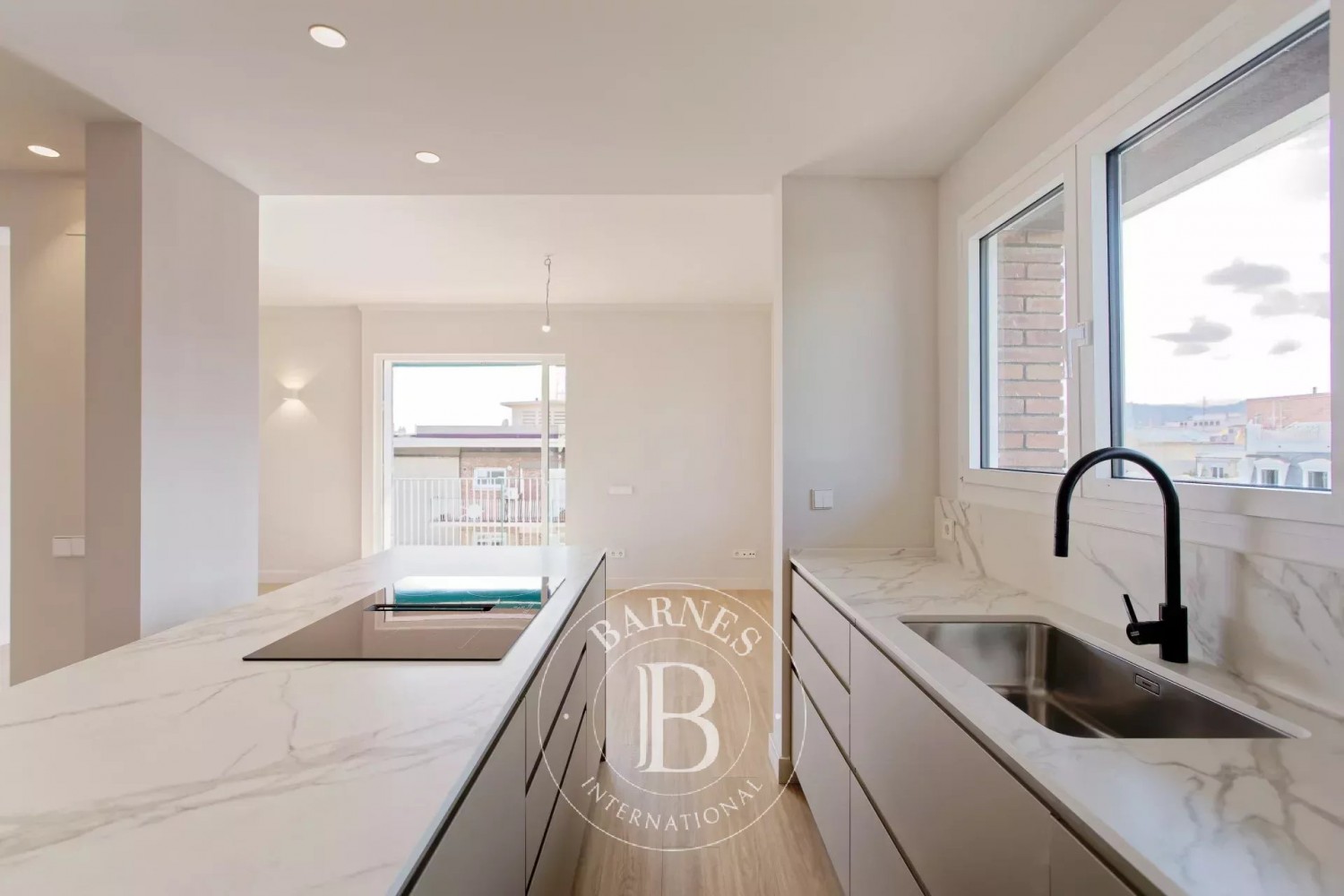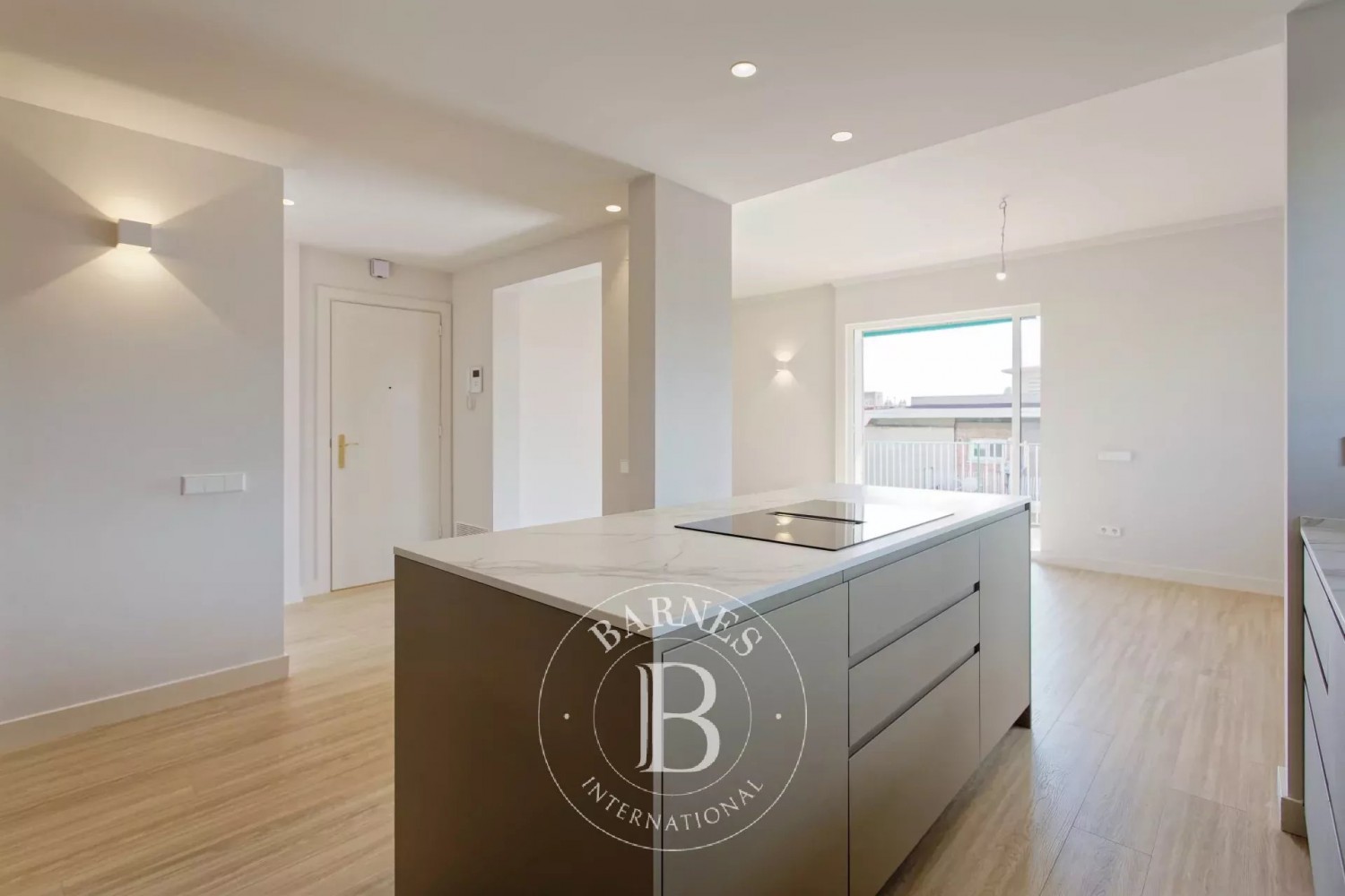 Gracias a su altura y orientación exterior a tres vientos, el piso disfruta de una luz natural excepcional durante todo el día. Al acceder, nos recibe un amplio espacio abierto que combina el salón-comedor con una cocina de diseño contemporáneo, equipada con una gran isla central. Desde esta zona se accede a una terraza de más de 22 m², con vistas despejadas a la ciudad, ideal para relajarse o disfrutar de reuniones al aire libre.