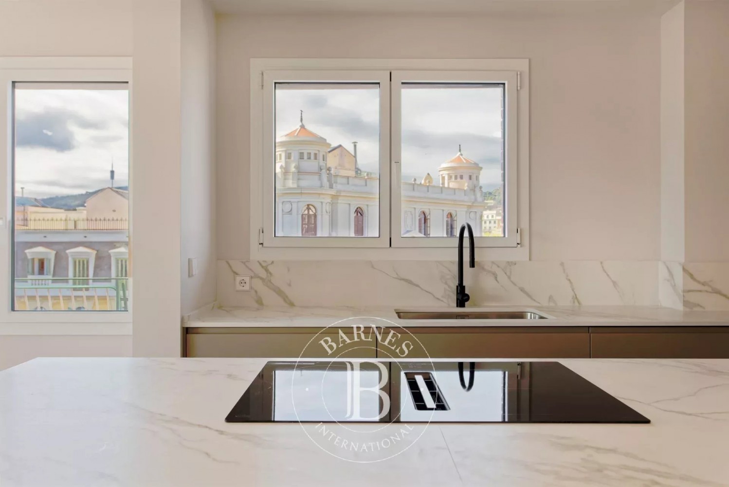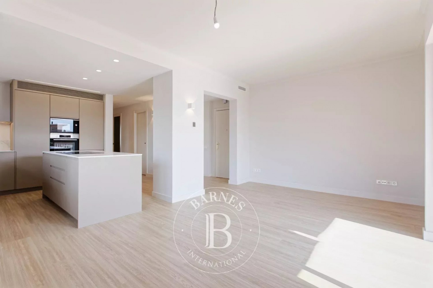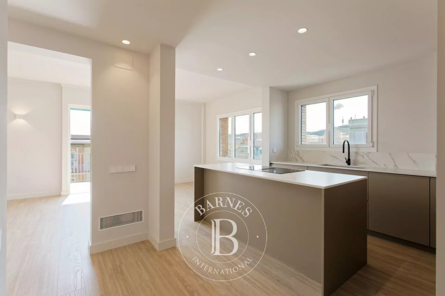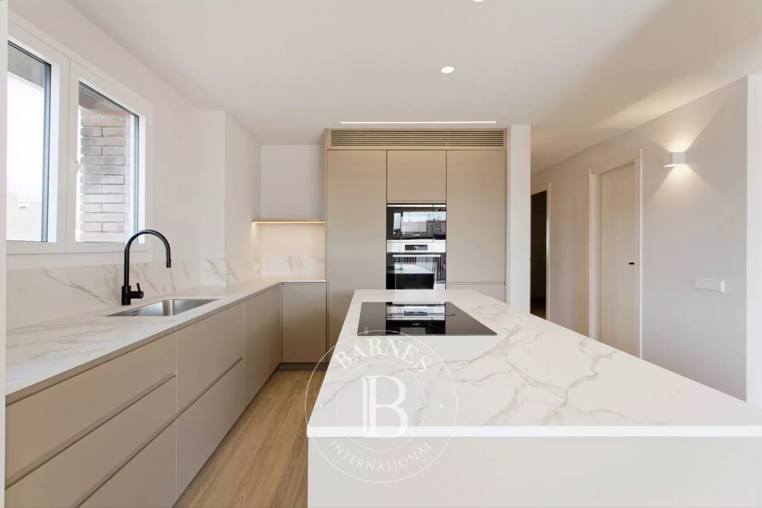 Gracias a su altura y orientación exterior a tres vientos, el piso disfruta de una luz natural excepcional durante todo el día. Al acceder, nos recibe un amplio espacio abierto que combina el salón-comedor con una cocina de diseño contemporáneo, equipada con una gran isla central. Desde esta zona se accede a una terraza de más de 22 m², con vistas despejadas a la ciudad, ideal para relajarse o disfrutar de reuniones al aire libre.
