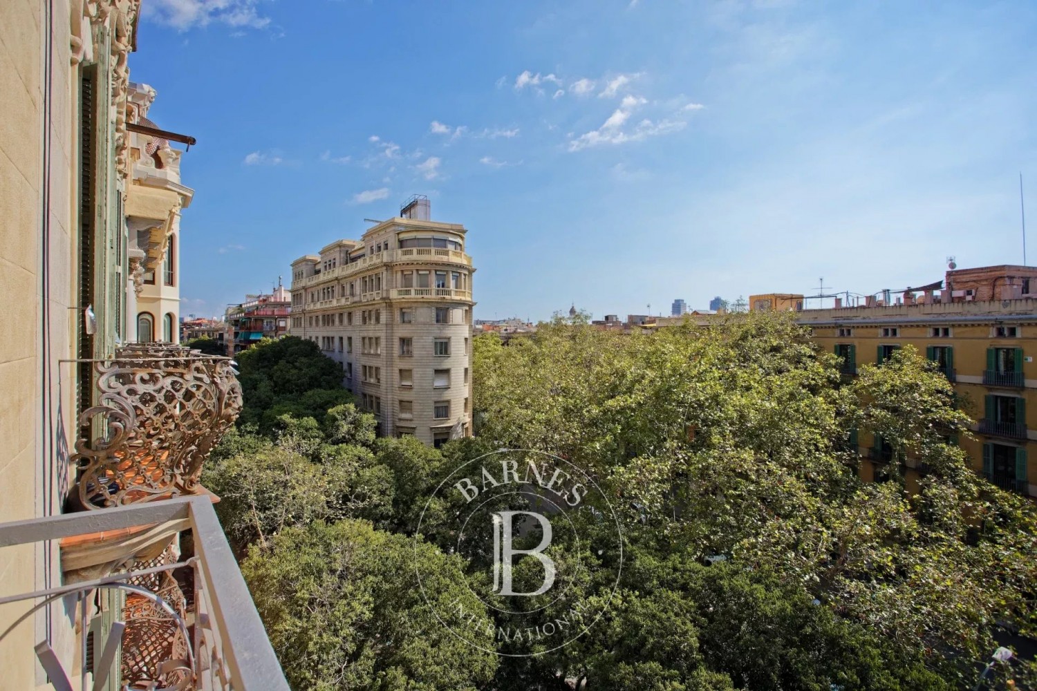 La amplia zona de día se inunda de luz natural gracias a los grandes ventanales que enmarcan las vistas despejadas a una de las avenidas más emblemáticas de Barcelona. El salón y el comedor se integran de forma armoniosa, con detalles en madera natural, iluminación de diseño y una decoración elegante que aporta carácter con sutileza. La cocina abierta, con isla central, combina funcionalidad y elegancia, equipada con electrodomésticos de última generación y acabados impecables en blanco y mármol.