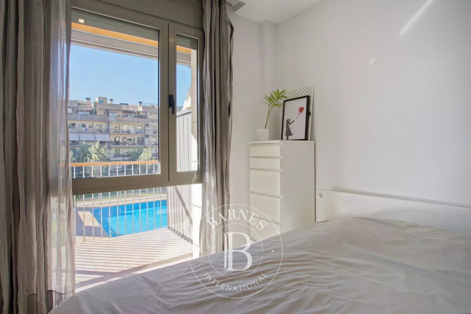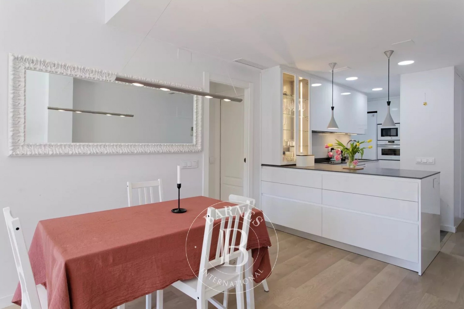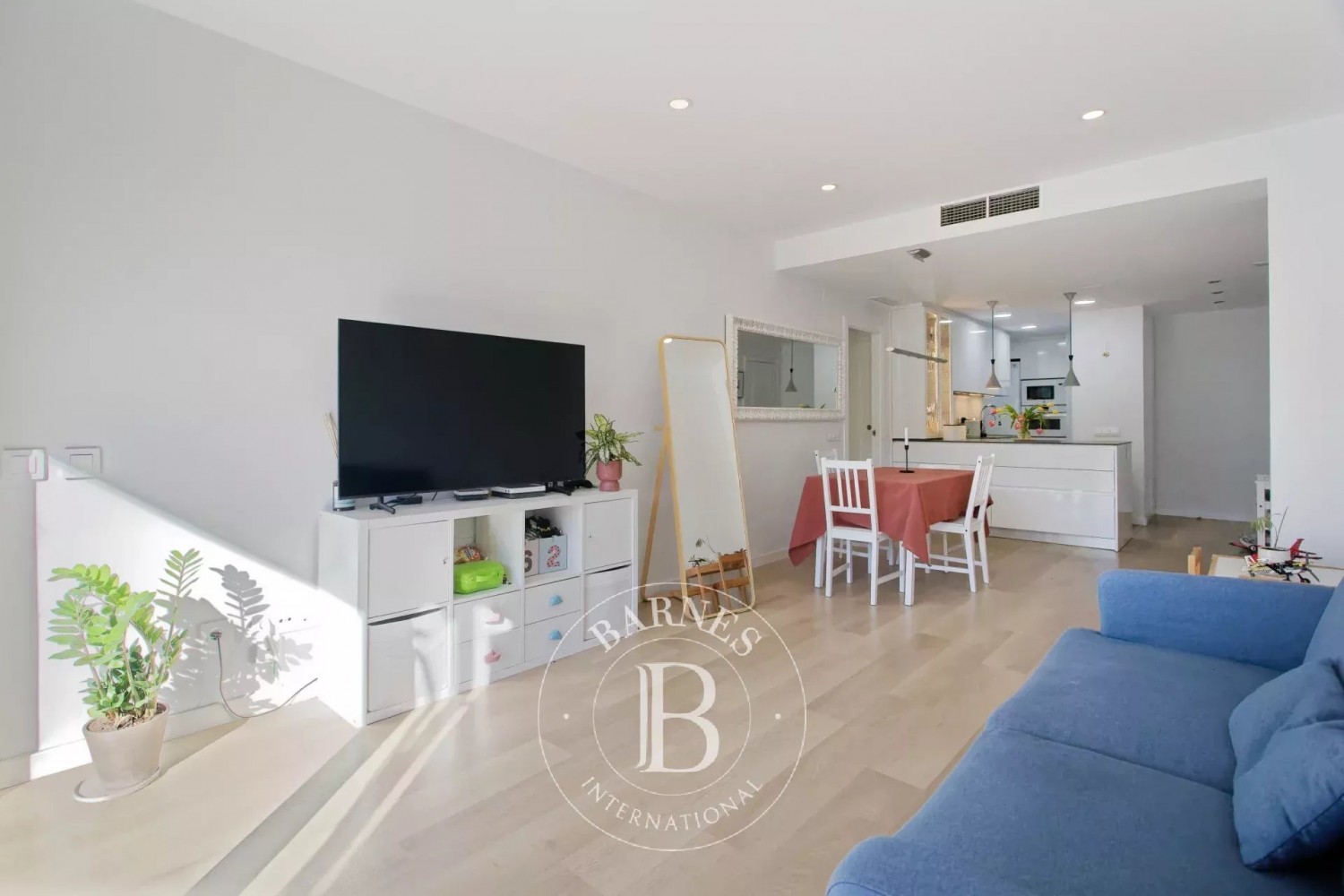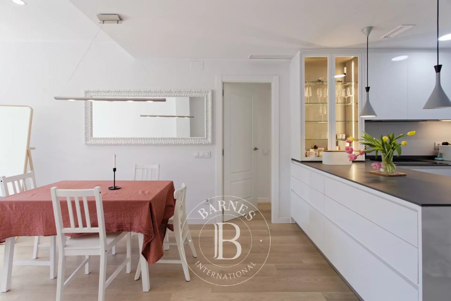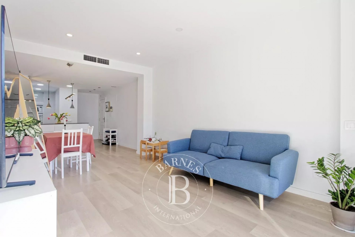 Al entrar en el apartamento, se abre un amplio salón-comedor bañado por luz natural gracias a su orientación sur. Los grandes ventanales de suelo a techo conectan directamente con la amplia terraza, ofreciendo agradables vistas a la Rambla y creando una fluida sensación de continuidad interior-exterior, ideal como extensión del salón para el día a día.