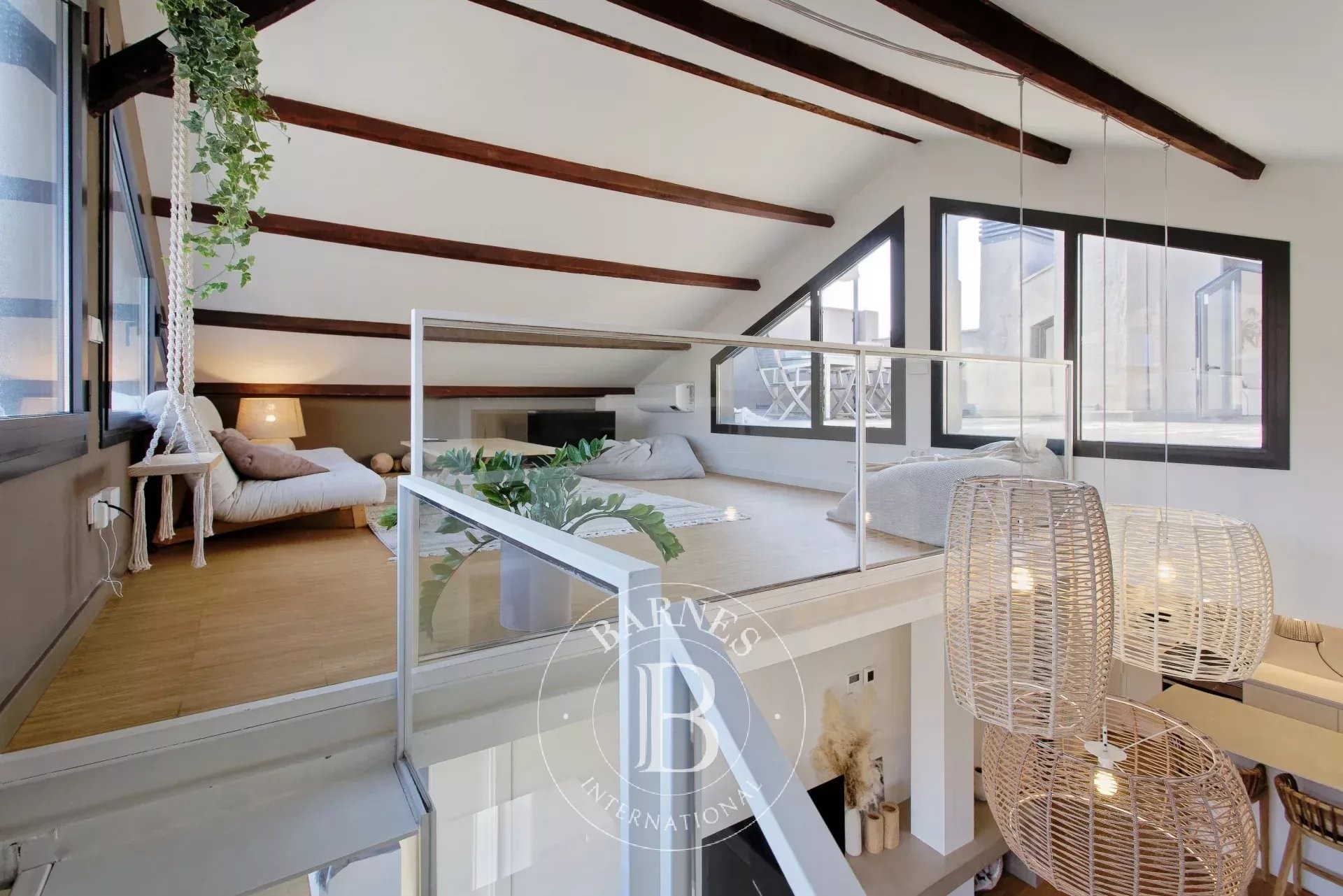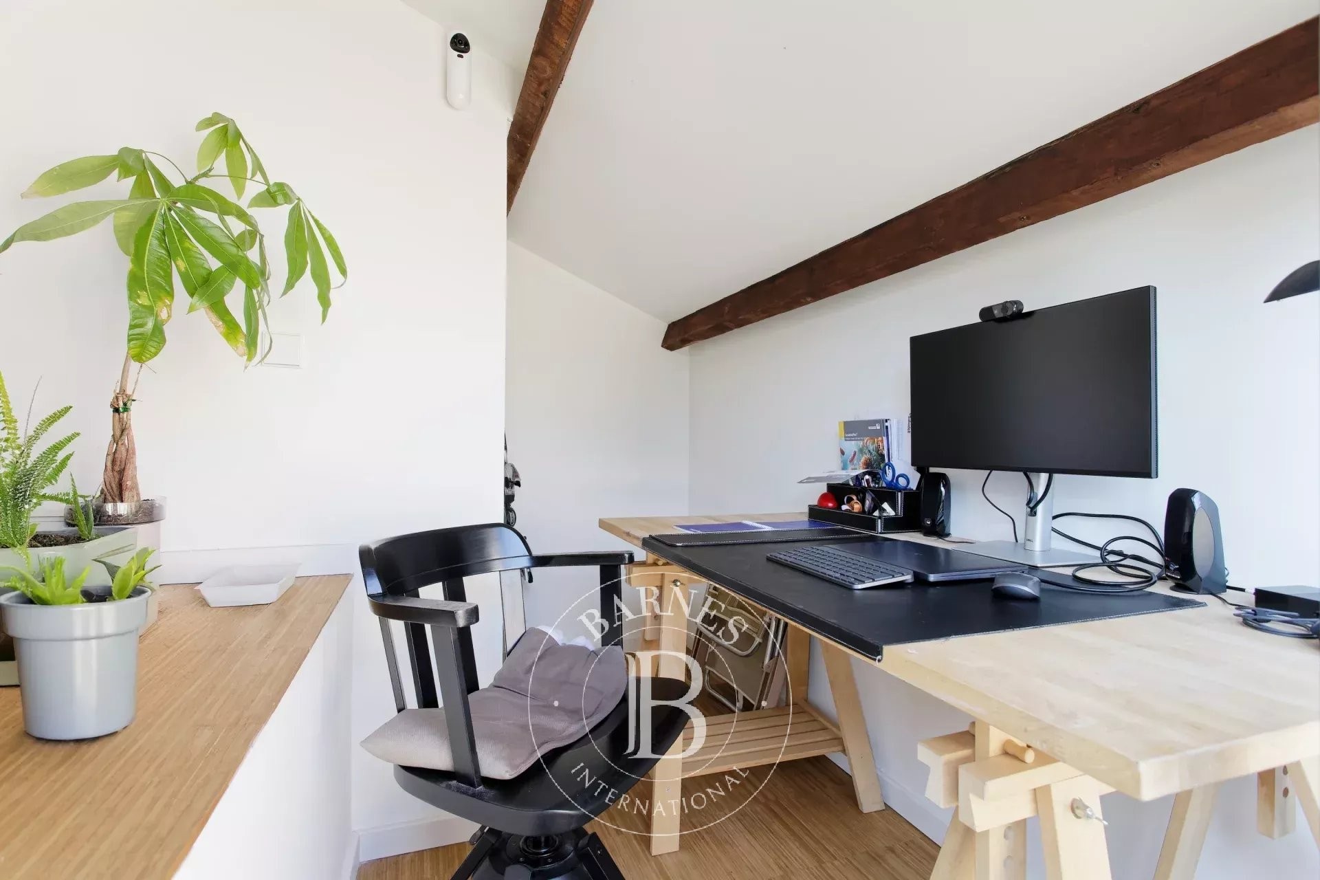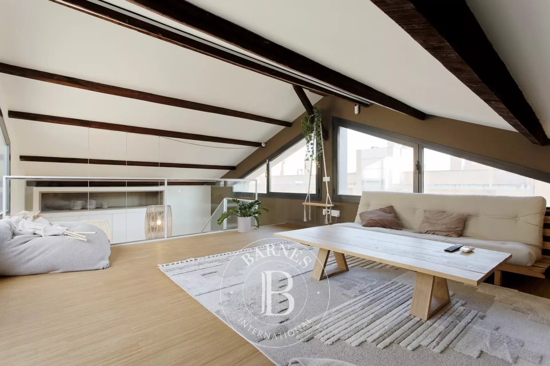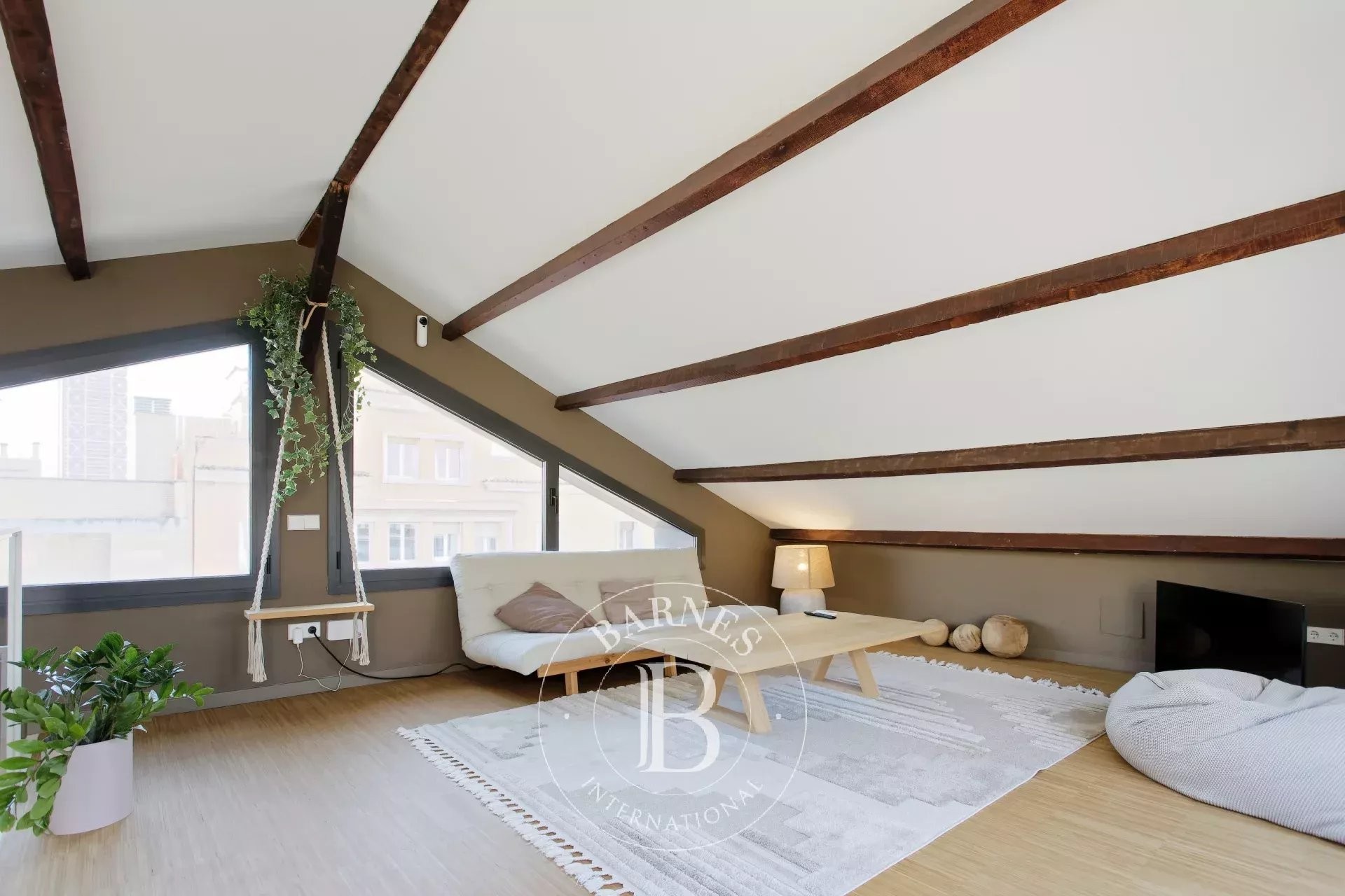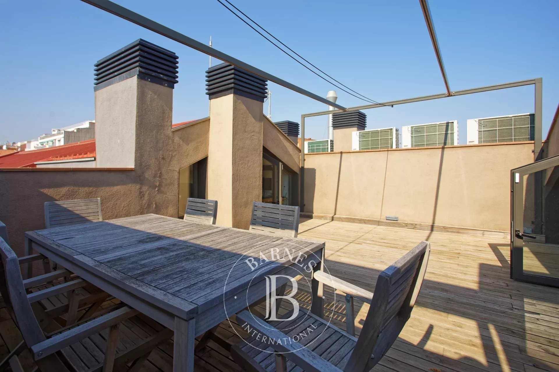 En la planta superior, un espacio tipo ático de 27 m² ofrece múltiples posibilidades — despacho, dormitorio de invitados o zona de ocio — y da acceso a una espléndida terraza privada de 25 m². Este auténtico refugio urbano, una rareza en Barcelona, garantiza una privacidad total en pleno centro de la ciudad. Un despacho independiente aporta aún más versatilidad, perfecto para teletrabajar o para necesidades profesionales.
