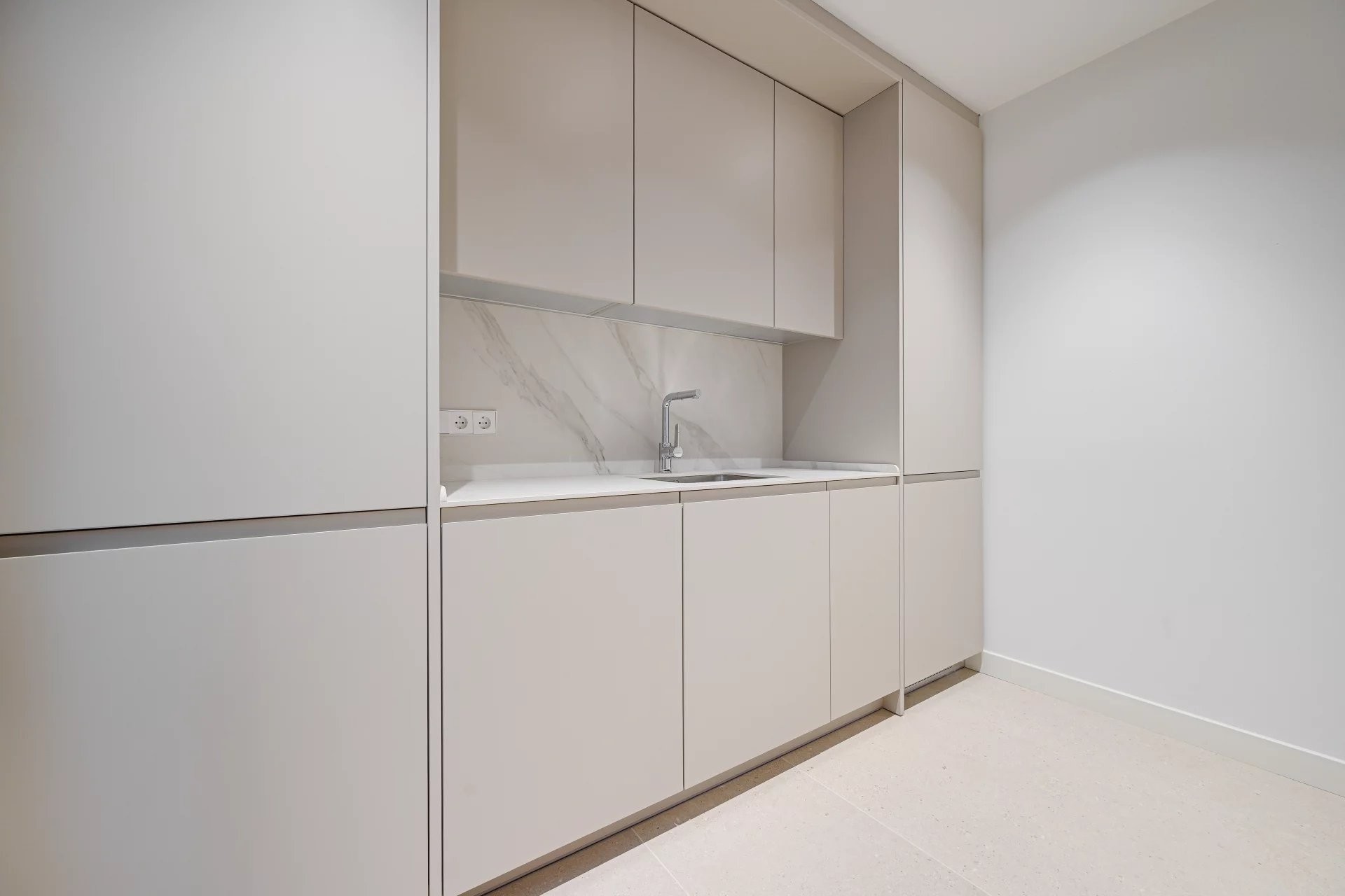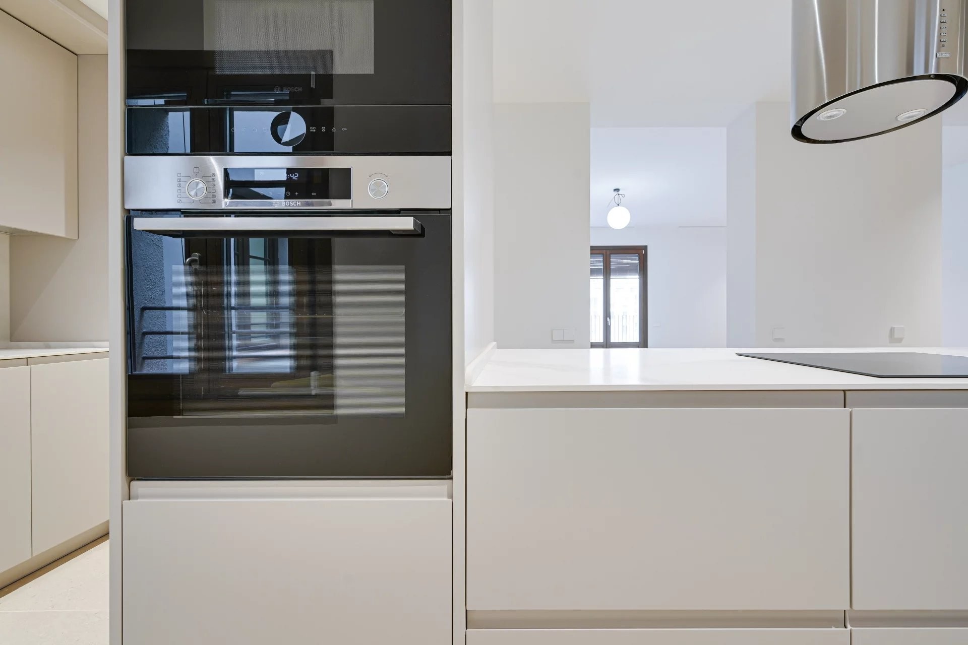 La vivienda ha sido concebida con una cuidada selección de materiales de alta calidad y un diseño sobrio y atemporal. El espacio principal se articula en torno a una zona de estar luminosa y equilibrada, donde el salón y el comedor conviven con una cocina abierta equipada con electrodomésticos de alta gama, creando un ambiente fluido y elegante.
