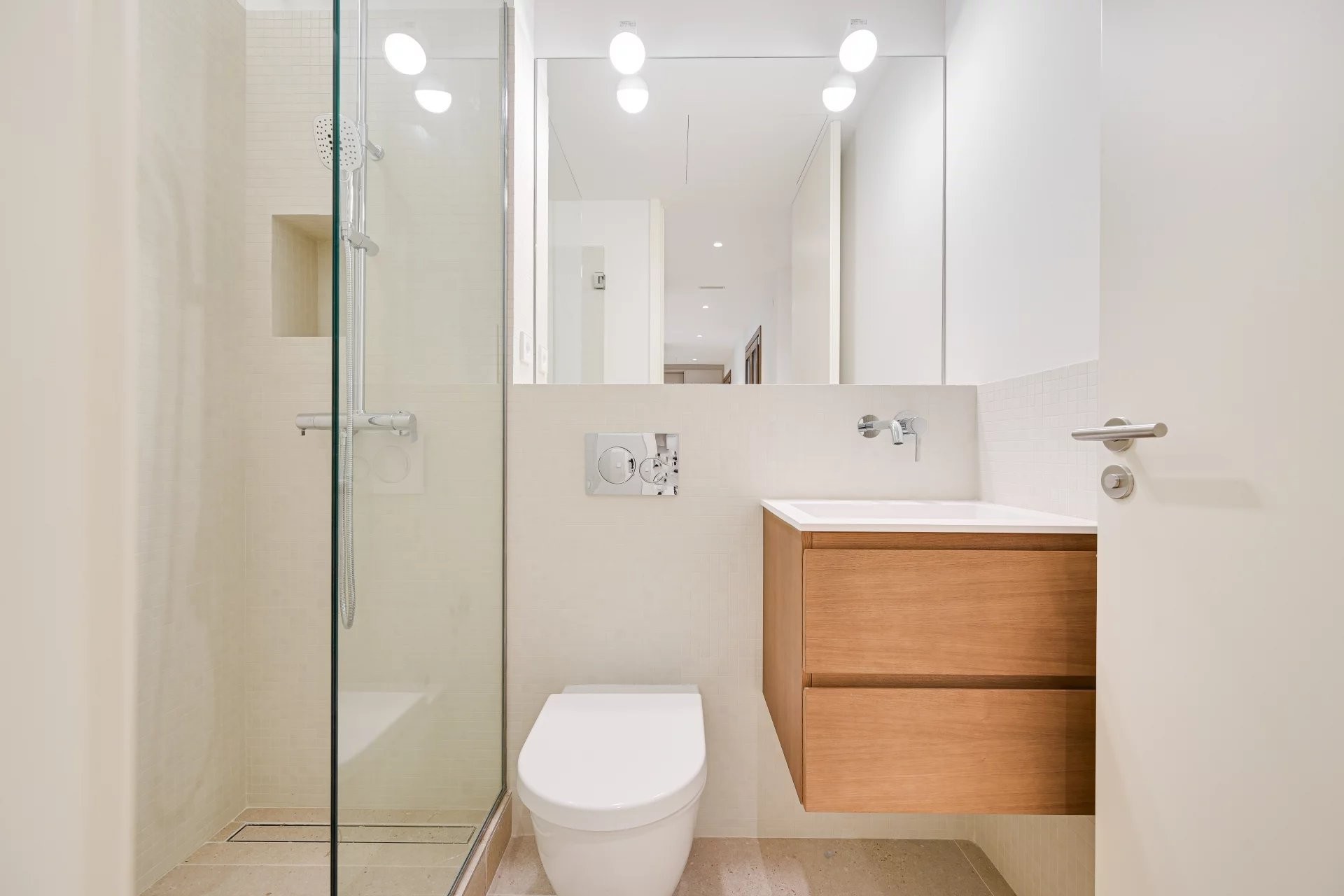 La zona de noche ofrece dos dormitorios dobles, uno de ellos en suite, además de un segundo baño completo. Cada espacio ha sido diseñado para transmitir serenidad y bienestar, con una distribución funcional y armoniosa.