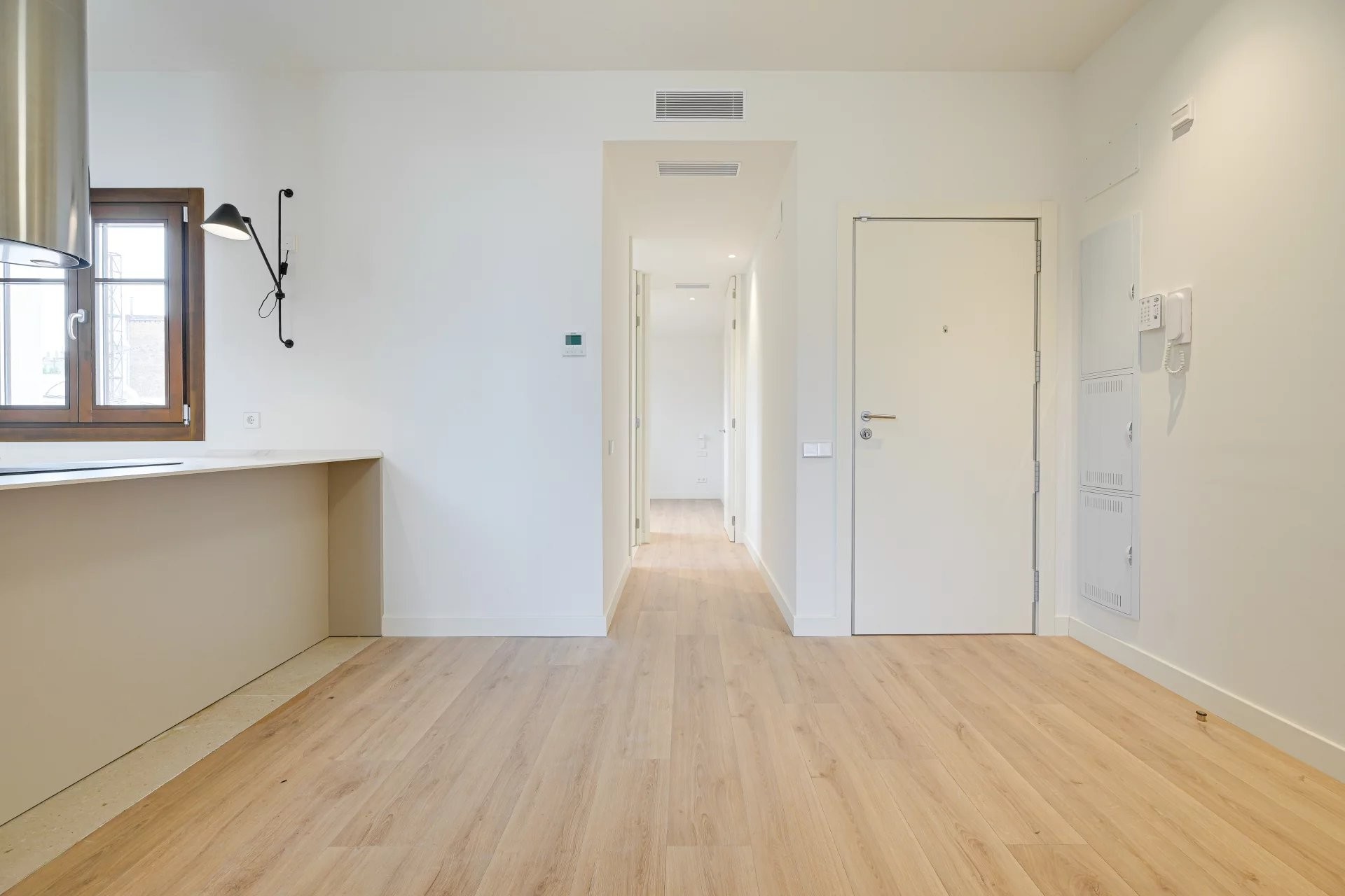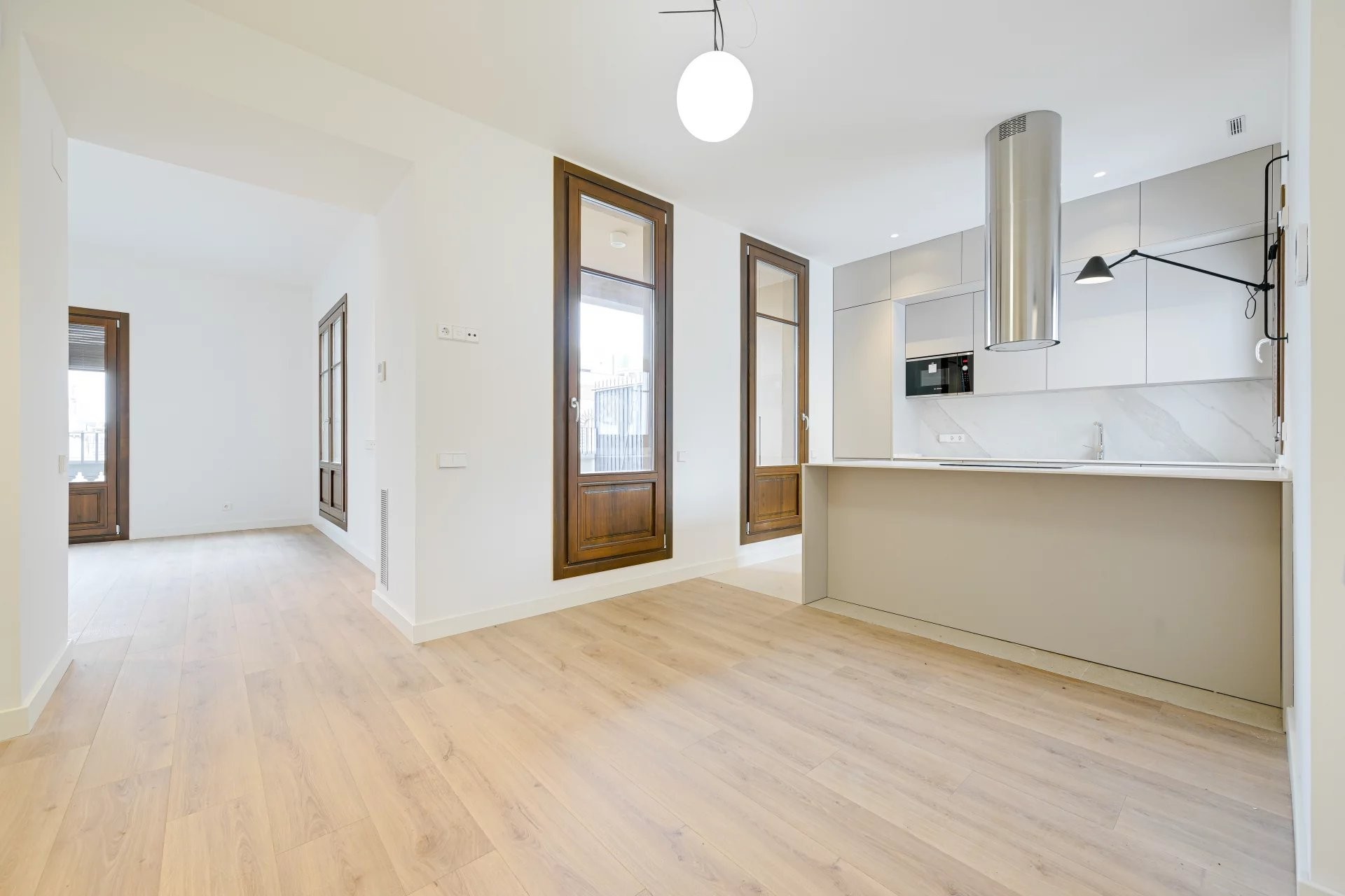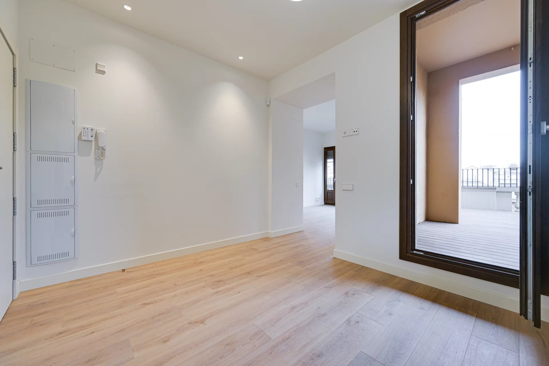 Una pieza residencial singular, ideal para quienes buscan un hogar urbano con una gran terraza privada, luz natural y una cuidada estética contemporánea, en una de las áreas más demandadas de Barcelona.