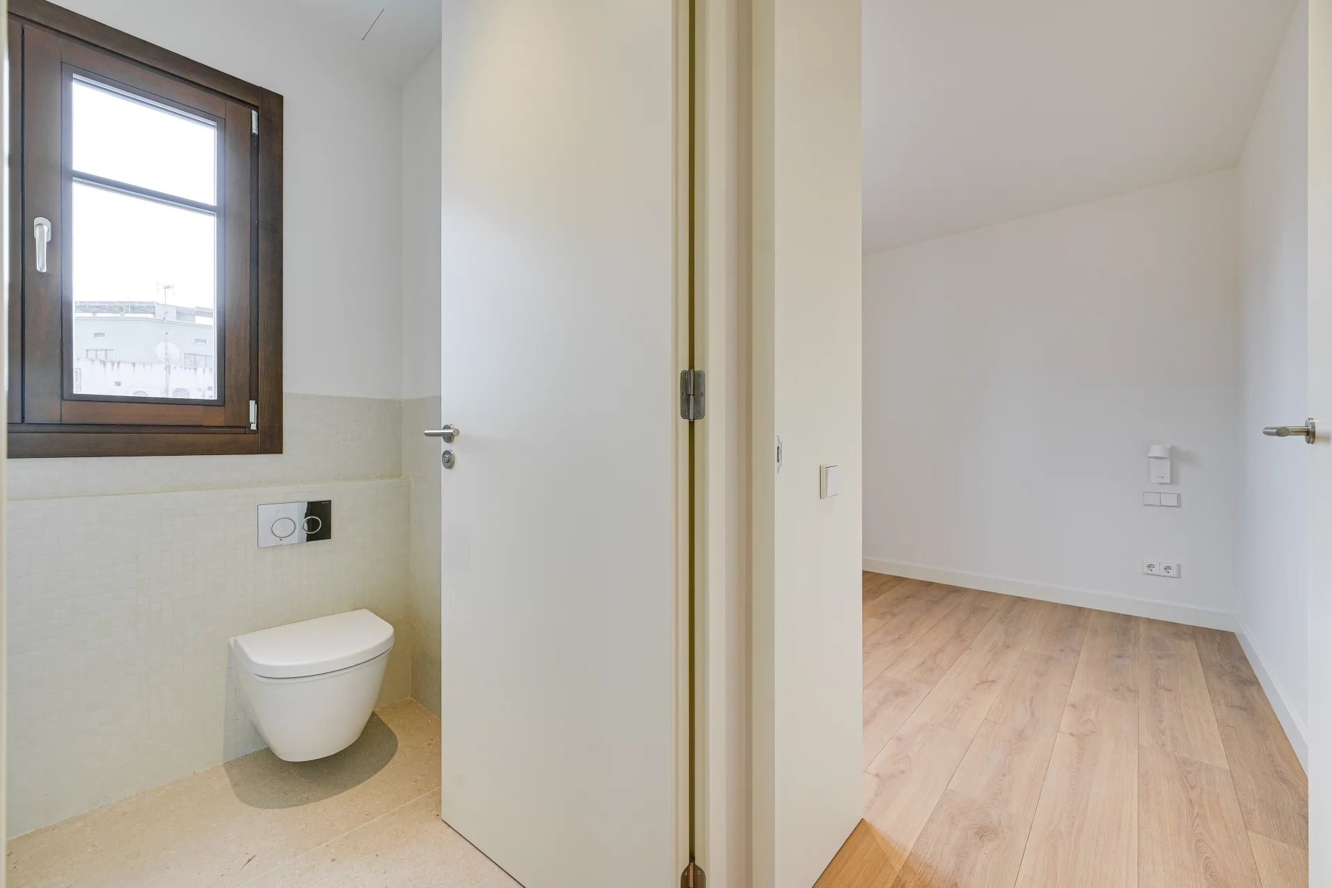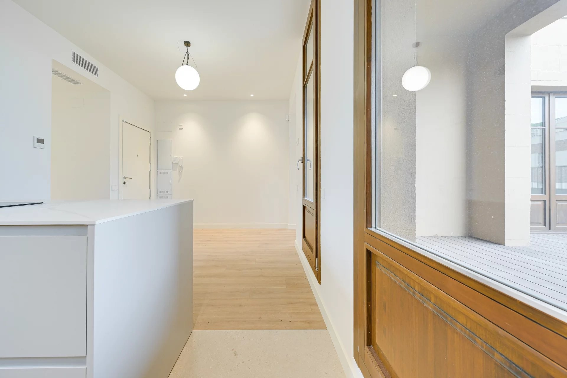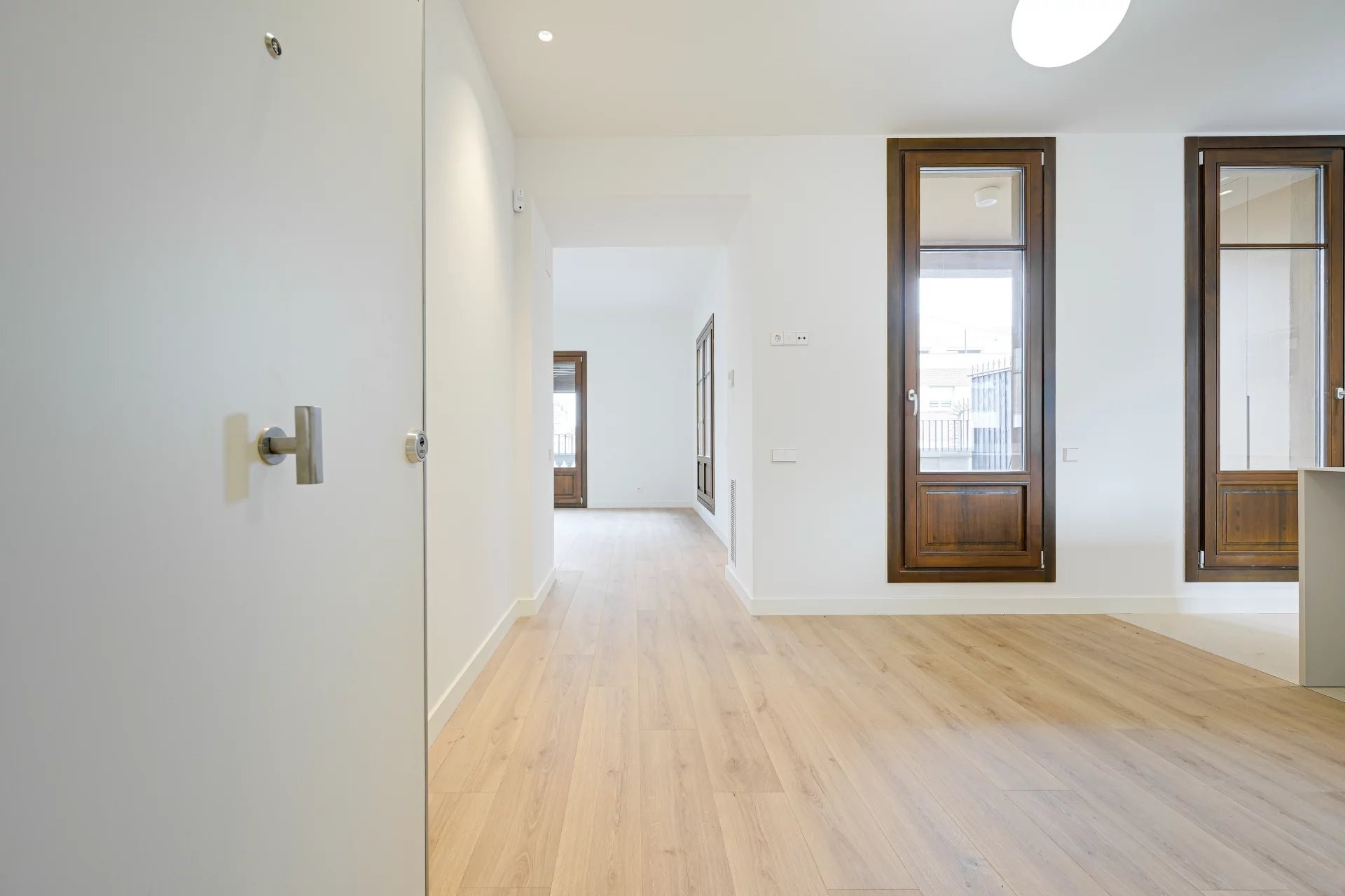 Una pieza residencial singular, ideal para quienes buscan un hogar urbano con una gran terraza privada, luz natural y una cuidada estética contemporánea, en una de las áreas más demandadas de Barcelona.