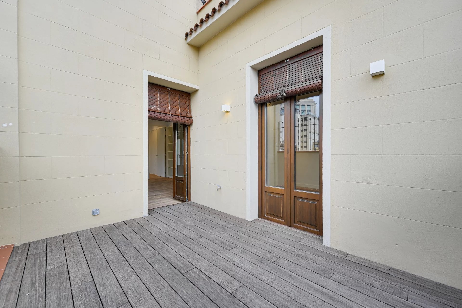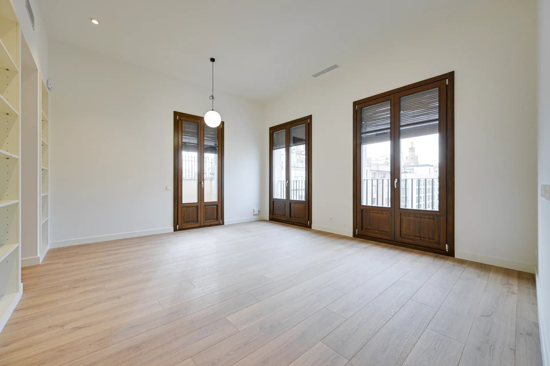 Ubicado en una elegante finca regia, este sofisticado sobreático se presenta como una residencia pensada para quienes valoran la tranquilidad, la privacidad y la luz natural, en pleno centro de Barcelona. Su orientación a un patio de manzana característico del Eixample garantiza un ambiente sereno y silencioso, difícil de encontrar en esta ubicación.