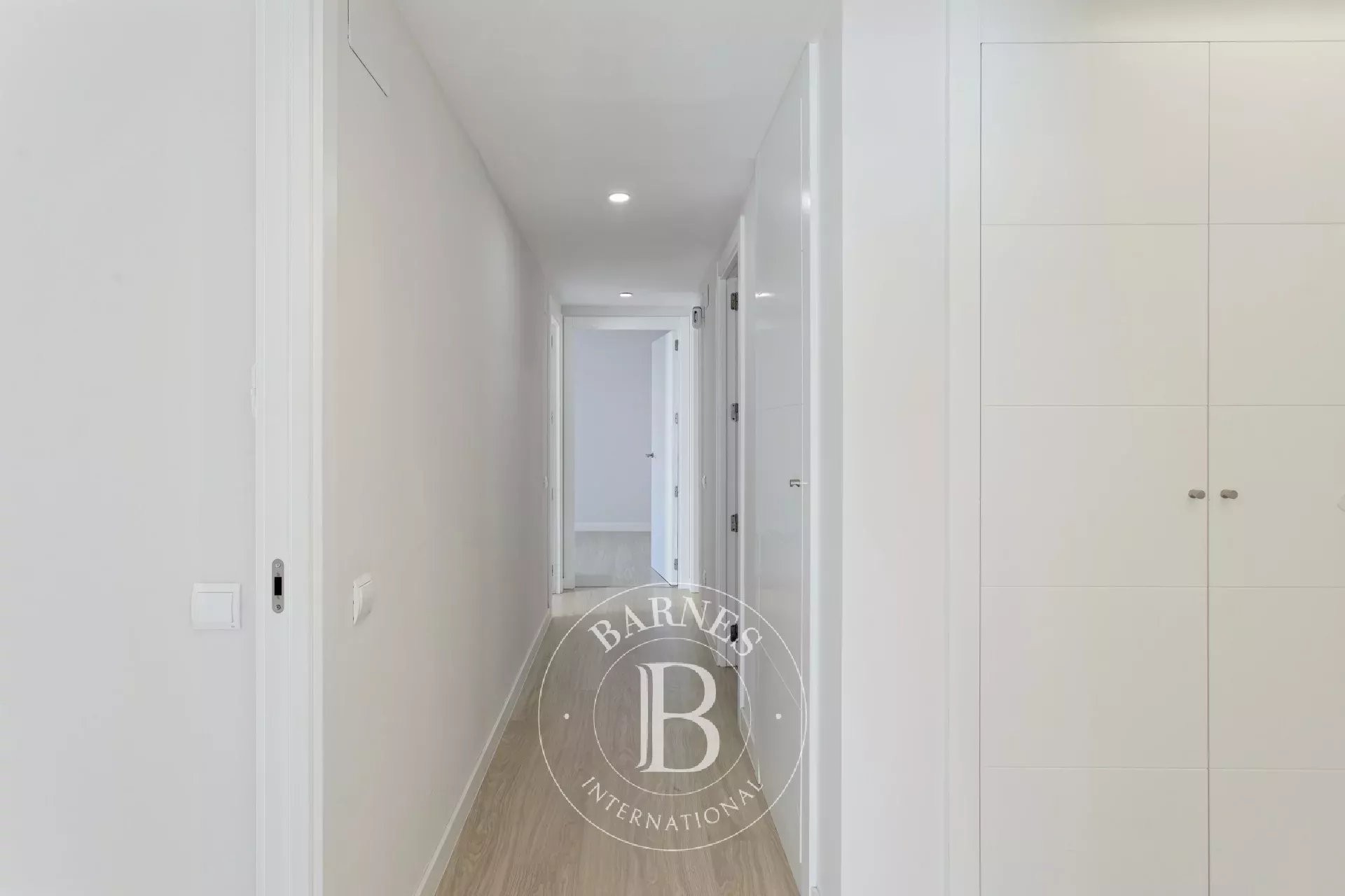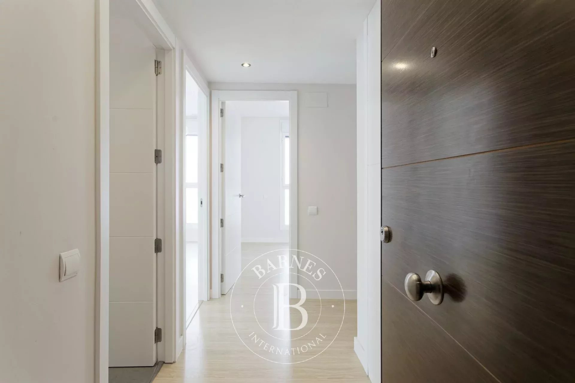 La vivienda dispone de una distribución funcional y equilibrada, diferenciando claramente la zona de día y la zona de descanso. Un amplio recibidor da acceso al área nocturna, compuesta por tres dormitorios, incluyendo una suite principal con baño privado, un segundo baño completo independiente y un espacioso vestidor.
