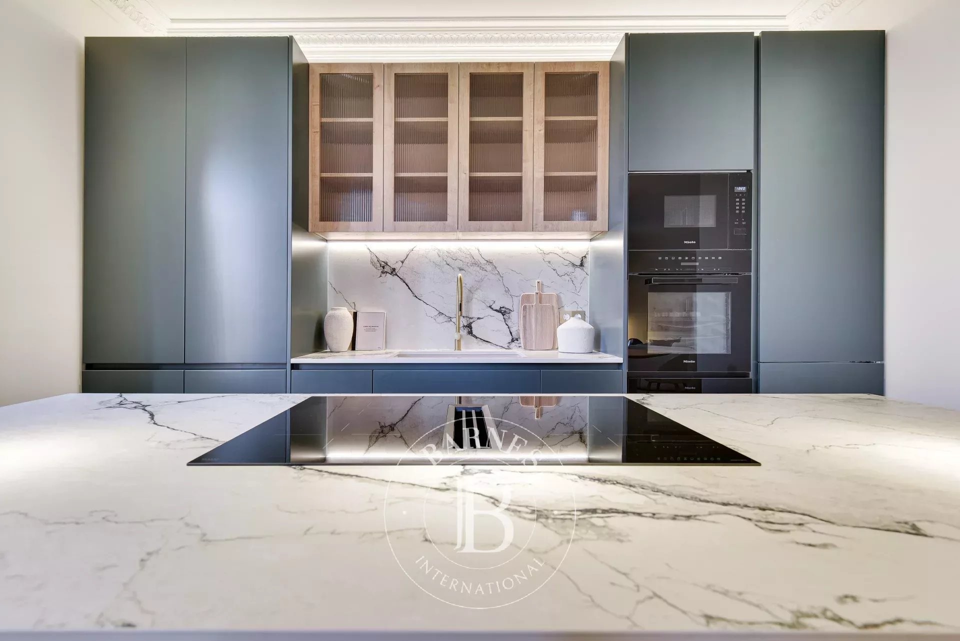 La zona de día se articula en un espacio fluido donde salón, comedor y cocina conviven con naturalidad. La cocina, concebida como una pieza central, destaca por su diseño depurado, su isla protagonista y su equipamiento de alta gama.