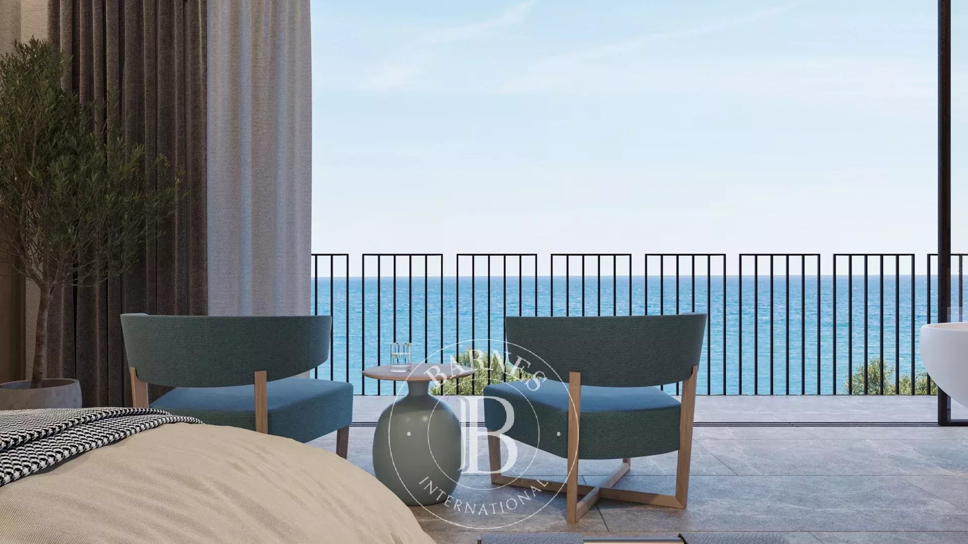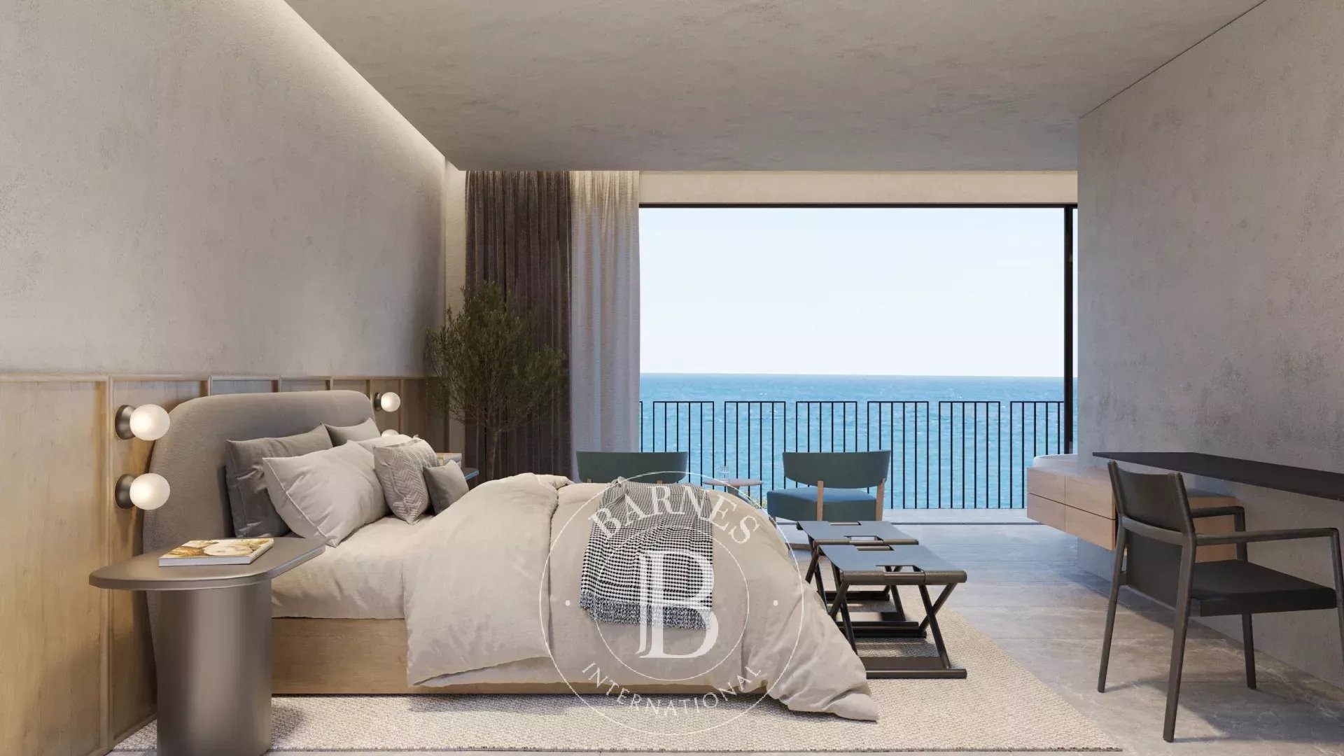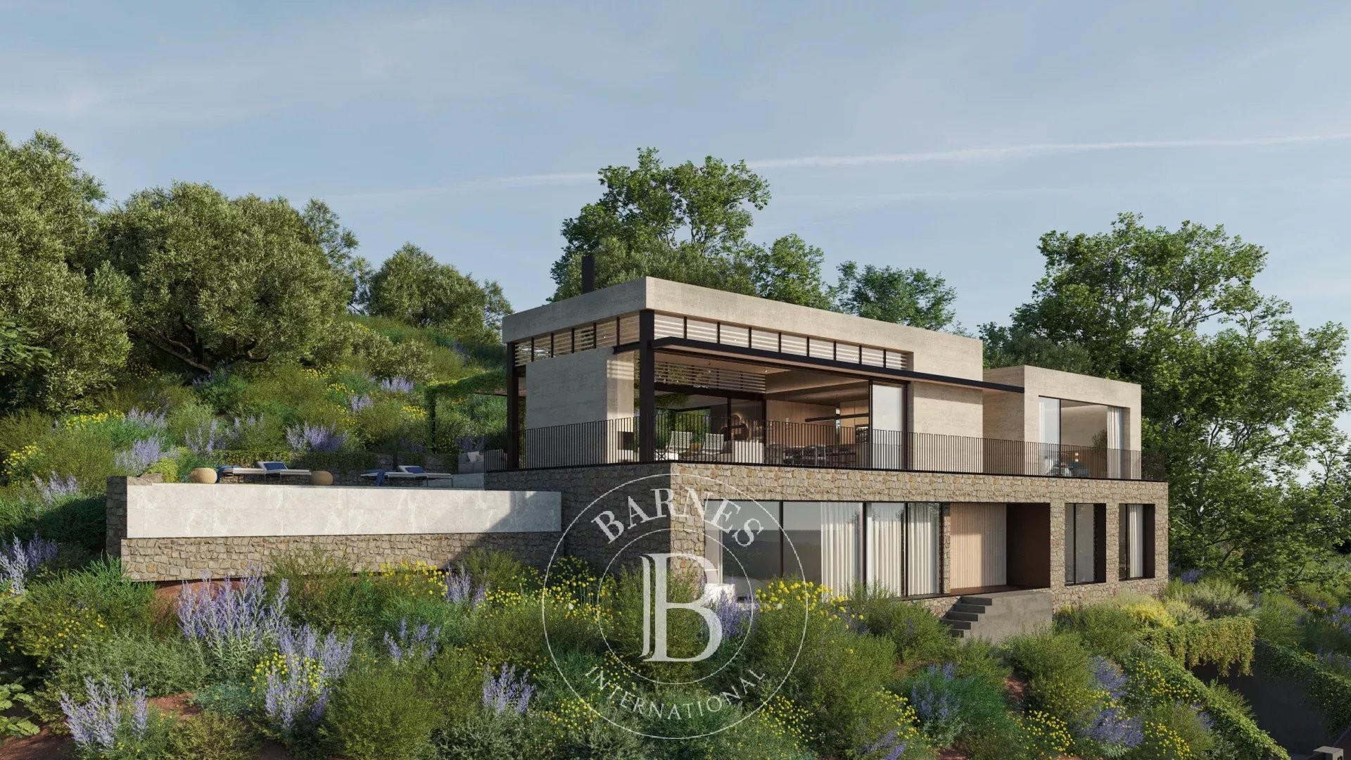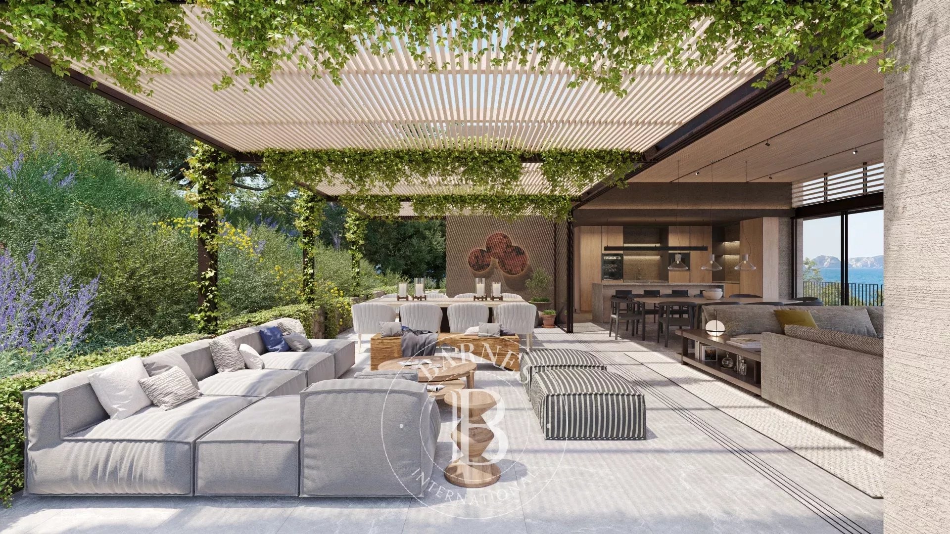La primera planta alberga cuatro dormitorios dobles en suite con vestidor, todos con vistas al mar, además de una sala familiar. La planta superior acoge la zona de día con un amplio salón-comedor y cocina abierta, grandes ventanales que conectan con la terraza y el jardín, piscina infinita y zona chill-out con fire pit. En este nivel se encuentra también la segunda master suite, con terraza privada y máxima privacidad.