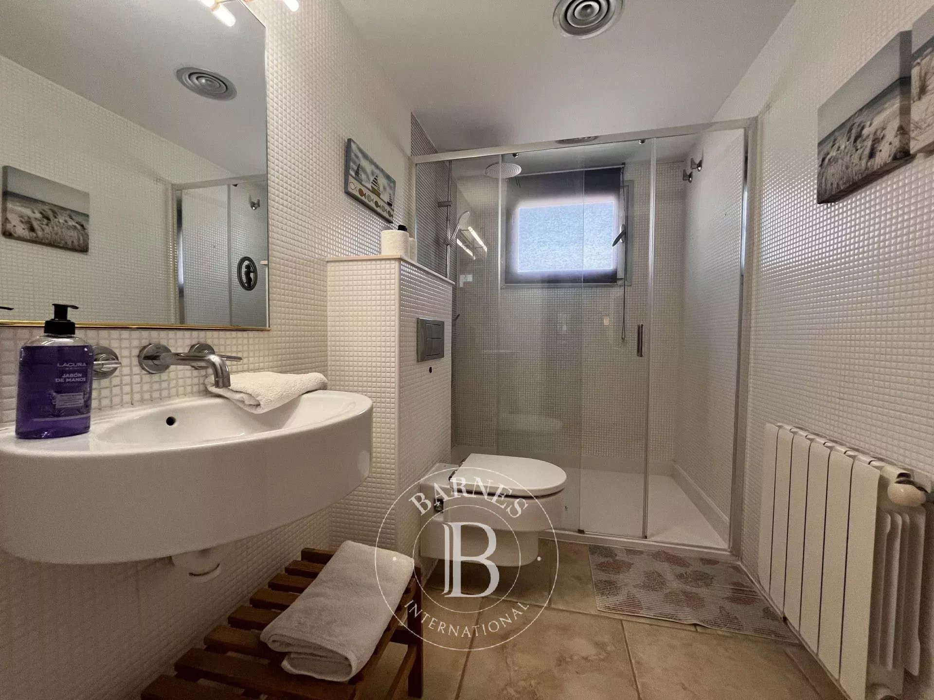 La distribución interior comprende cinco dormitorios dobles, además de una sala polivalente adicional que puede destinarse a dormitorio extra, despacho o zona de ocio. La cocina, totalmente equipada con electrodomésticos de alta gama, se integra armoniosamente con las zonas de estar, creando un ambiente amplio, luminoso y acogedor.