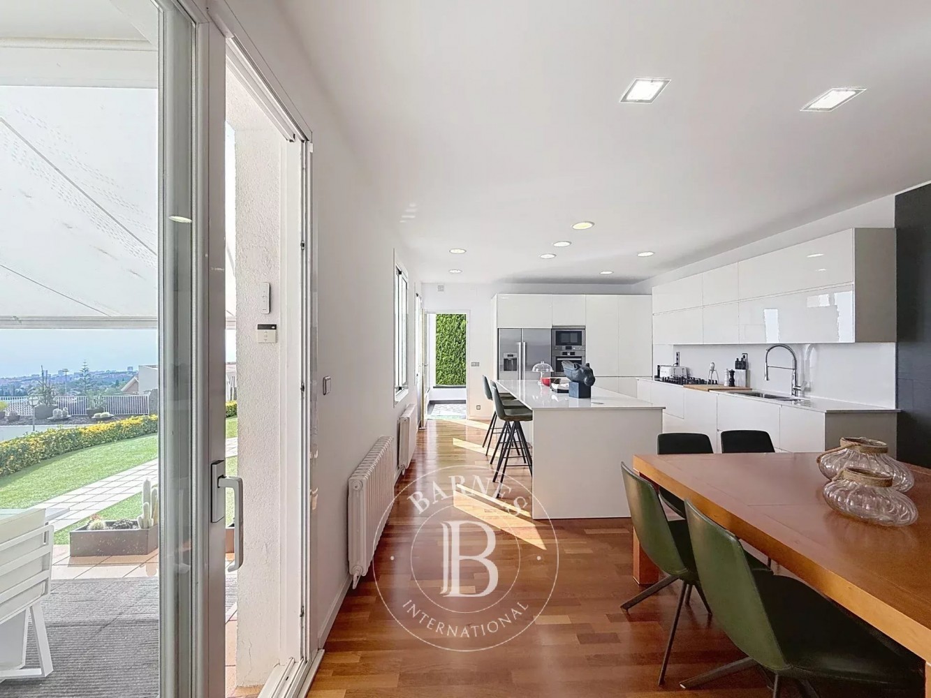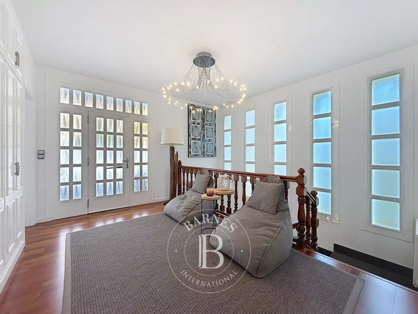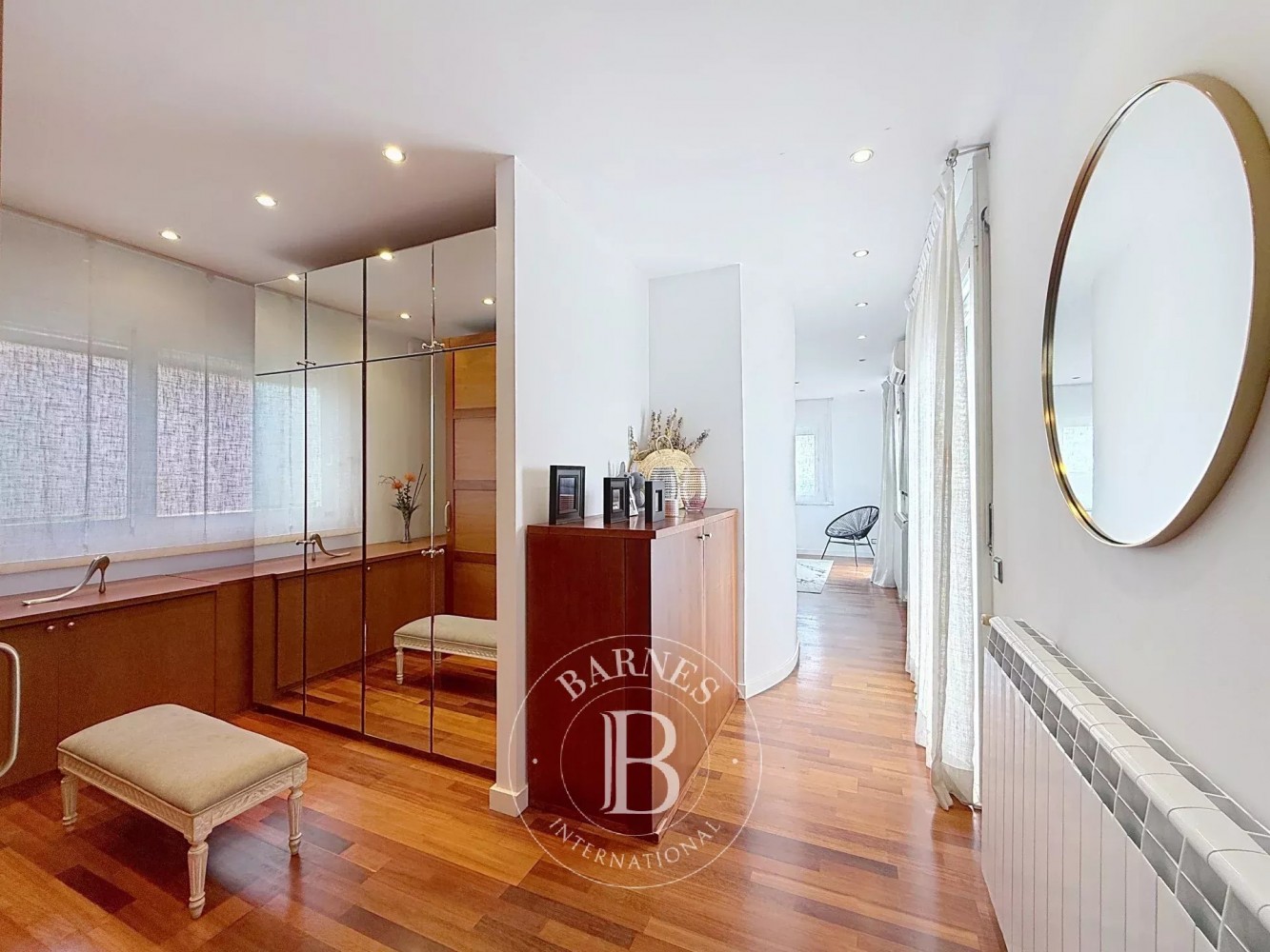 El exterior es uno de sus grandes atractivos: un jardín generoso, perfectamente cuidado, con piscina privada y varias terrazas diseñadas para disfrutar de la vida al aire libre, ya sea en familia o con amigos.