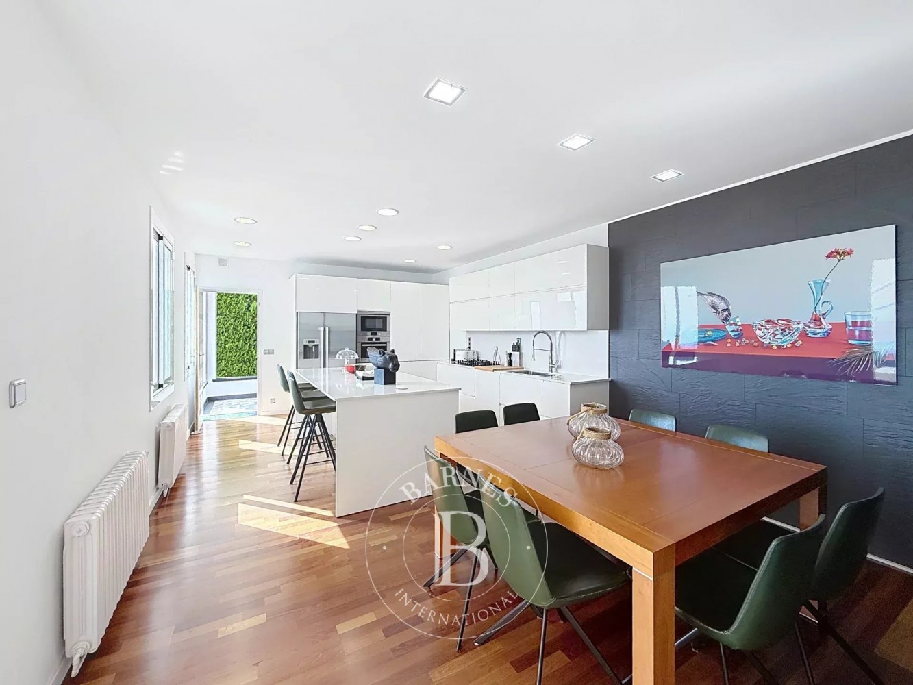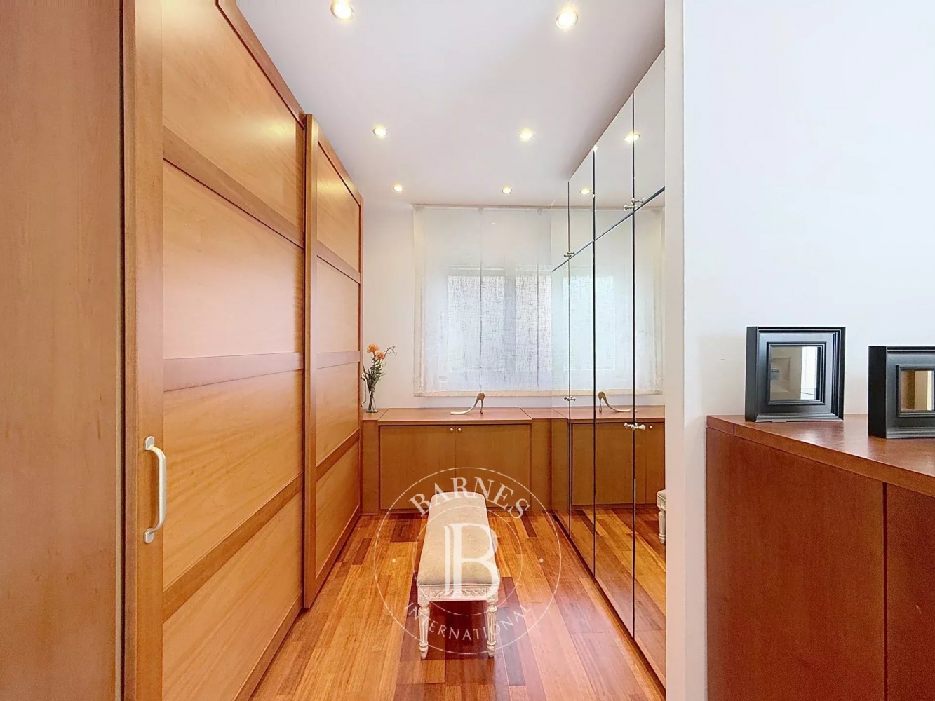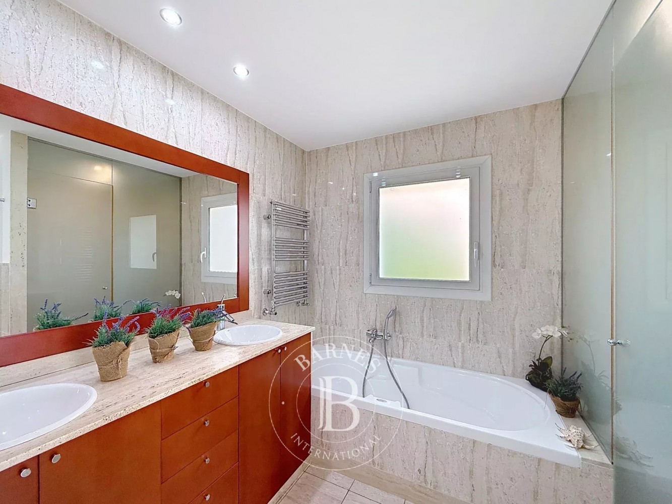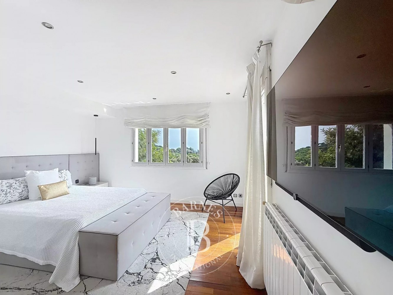 El exterior es uno de sus grandes atractivos: un jardín generoso, perfectamente cuidado, con piscina privada y varias terrazas diseñadas para disfrutar de la vida al aire libre, ya sea en familia o con amigos.