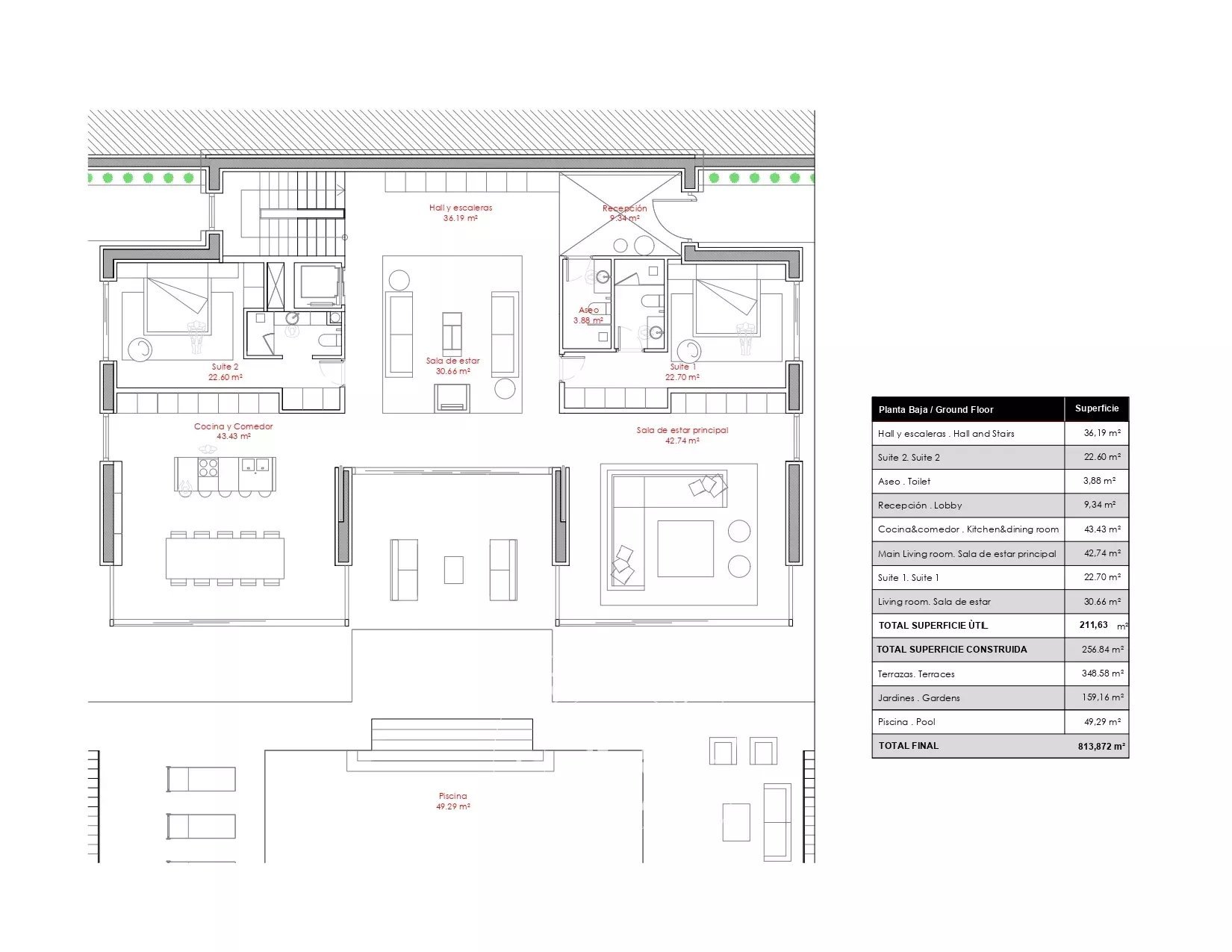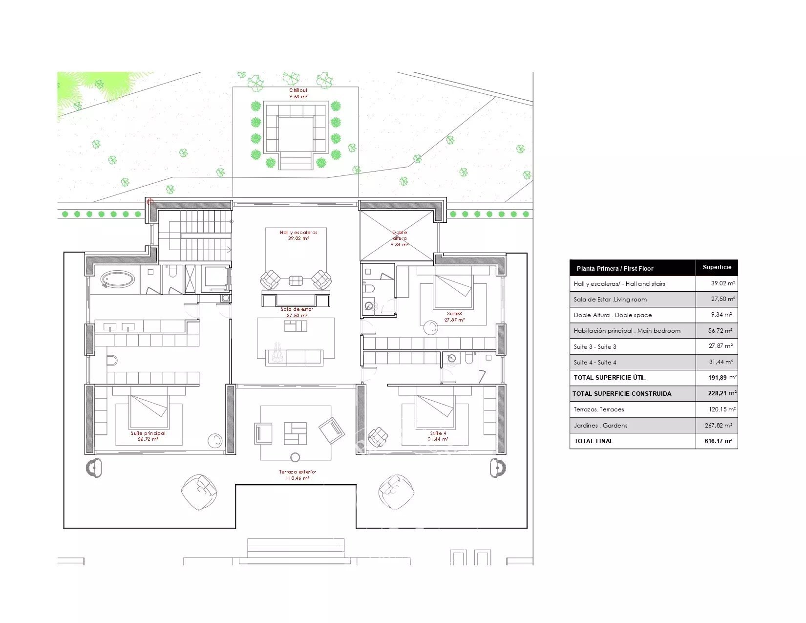 La vivienda contará con 6 amplios dormitorios y 6 baños, diseñados con un estilo contemporáneo y materiales de la más alta calidad. Los espacios abiertos y luminosos se integran armoniosamente con el entorno, creando una sensación de libertad y bienestar en cada estancia.