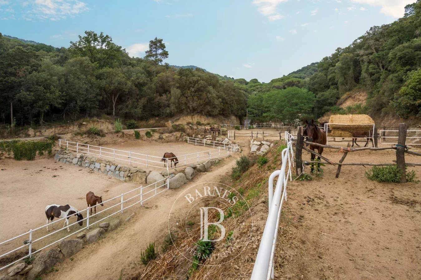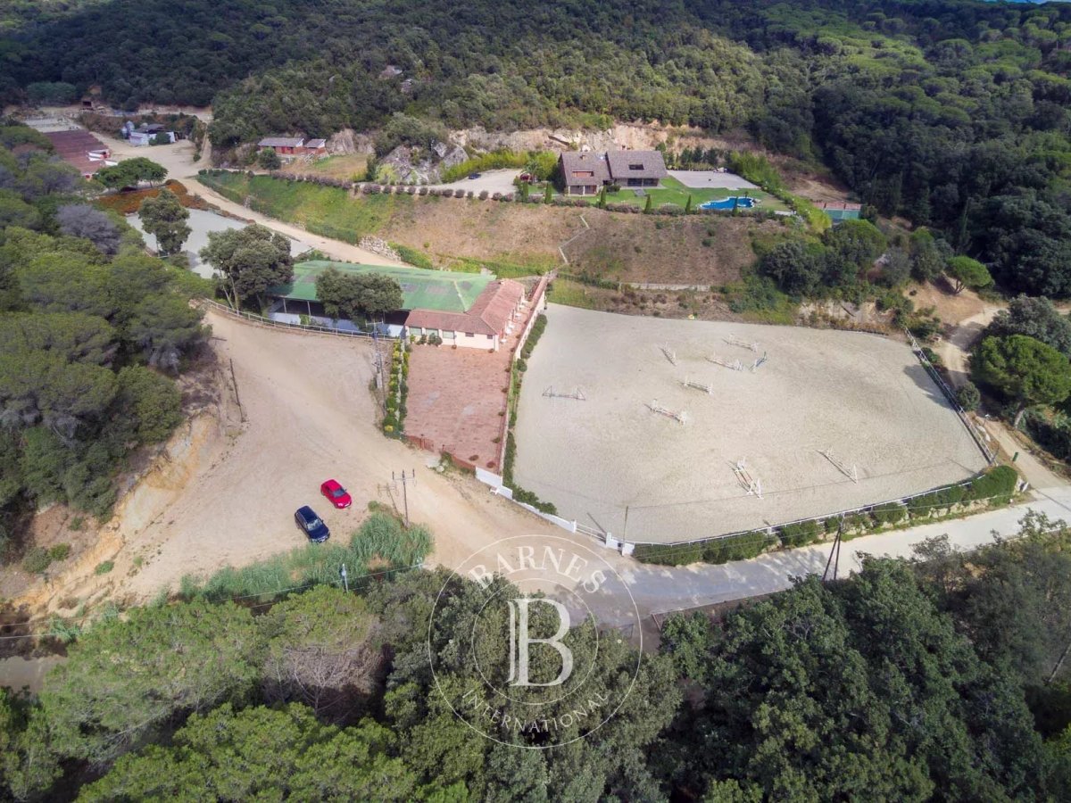 BARNES Maresme presenta una magnífica oportunidad de inversión: una impresionante finca ecuestre en pleno funcionamiento con una extensión de 13 hectáreas de terreno privado. Esta propiedad cuenta con 150 establos individuales y una amplia casa principal de 7 dormitorios con piscina exterior. Ubicada en el encantador entorno natural del interior del Maresme, ofrece vistas panorámicas a las montañas y parciales al mar.